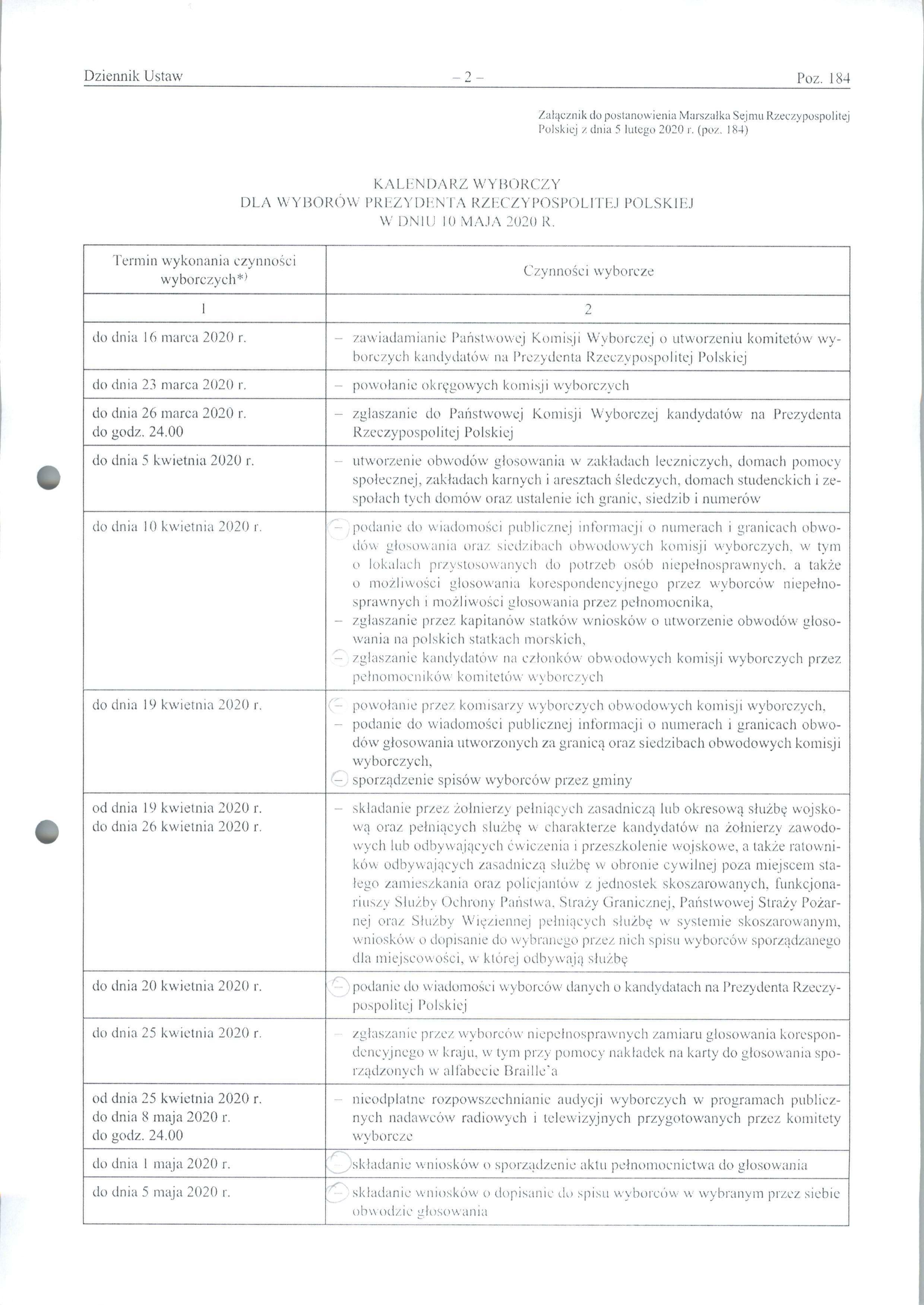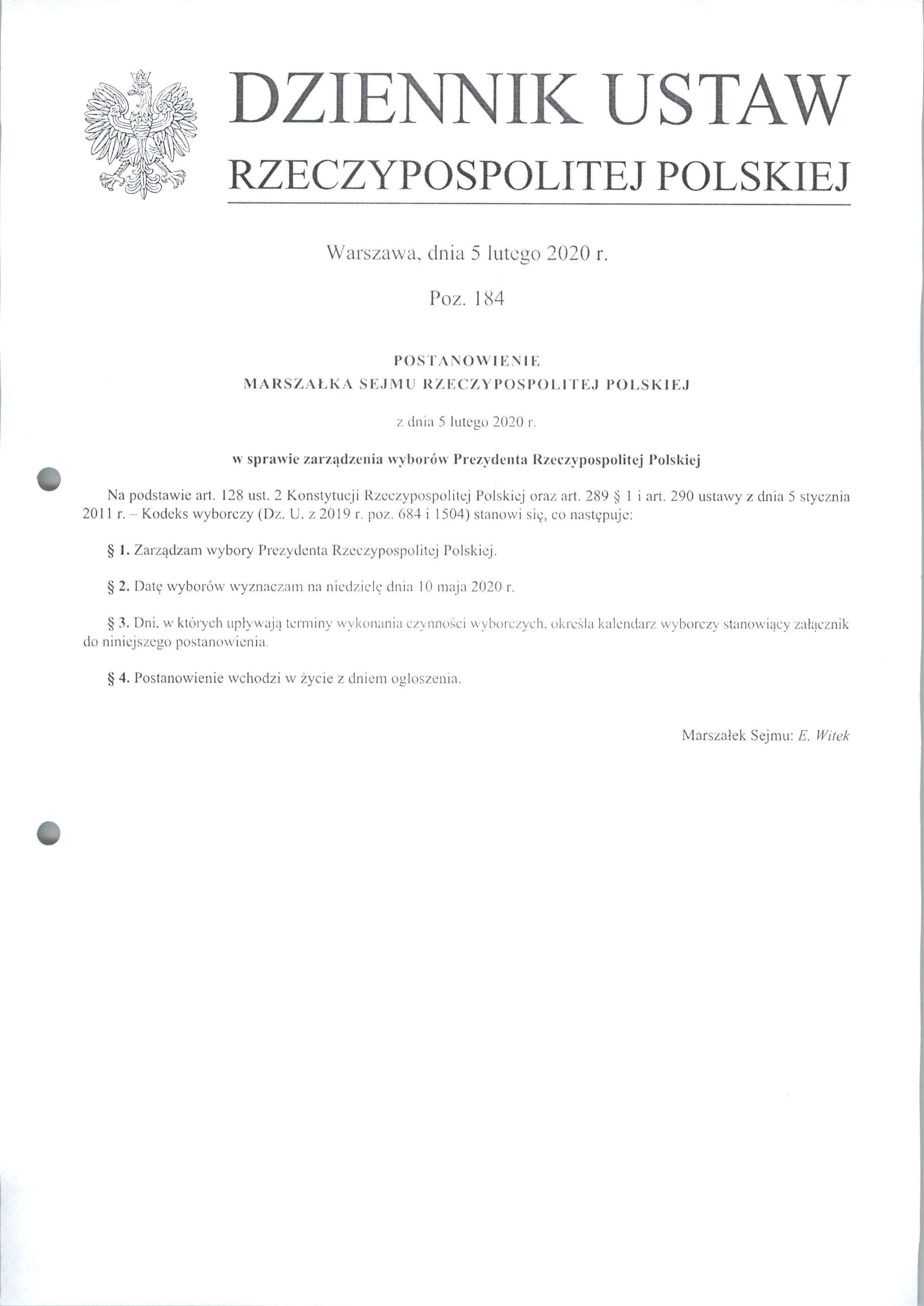Postanowienie Marszałka Sejmu Rzeczypospolitej Polskiej z dnia 5 lutego 2020 r.