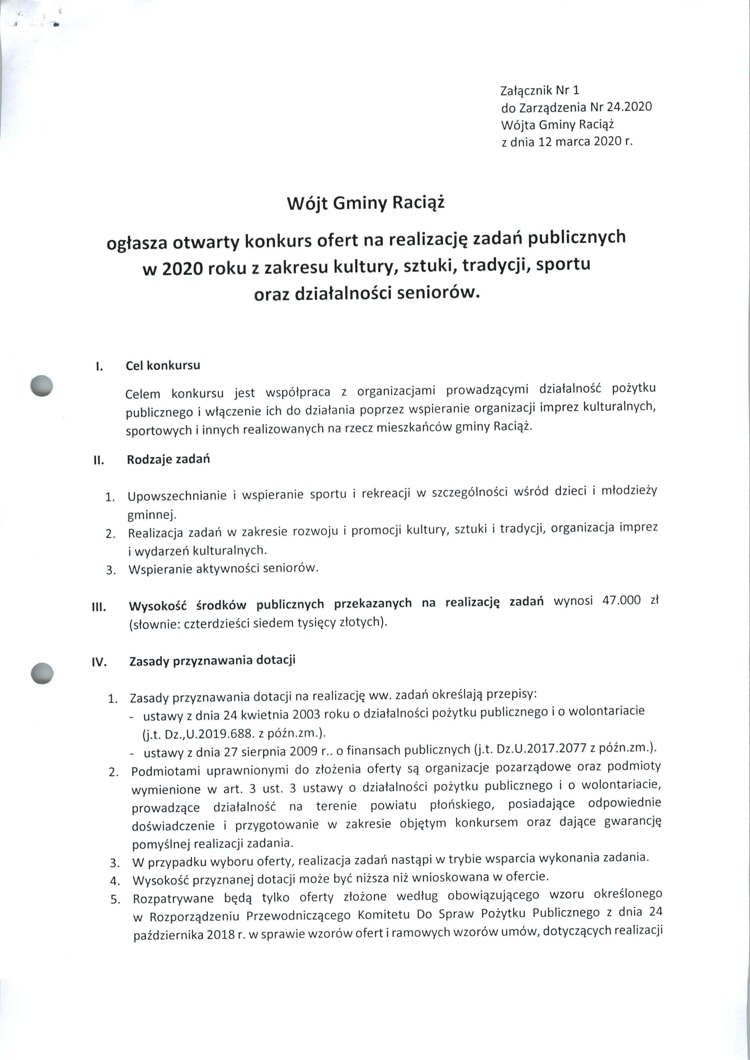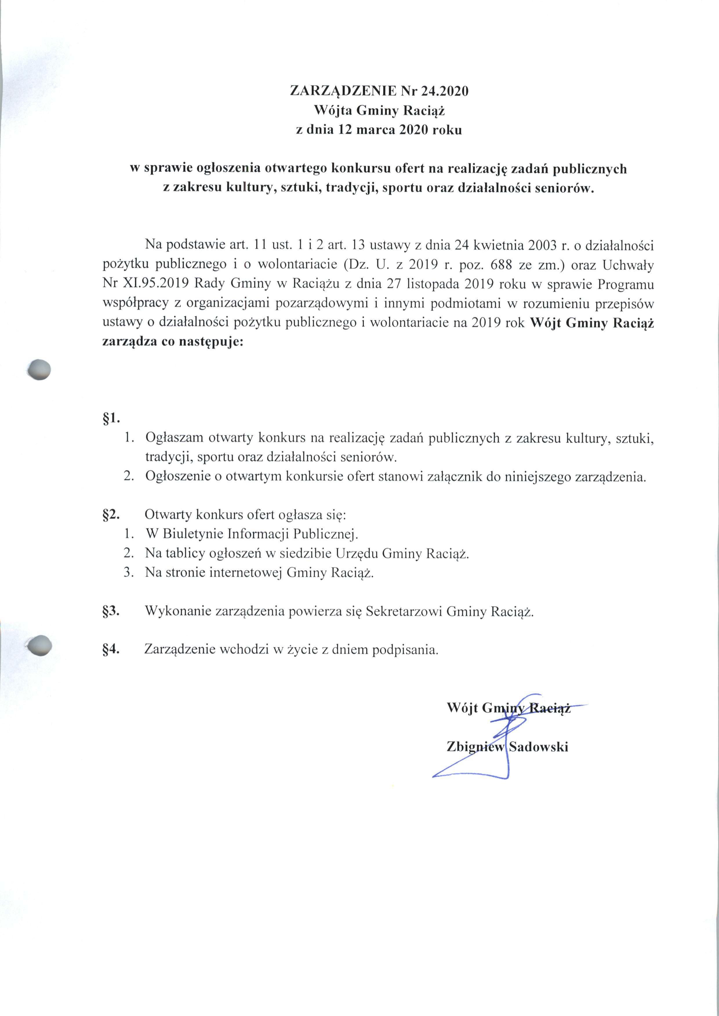 Zarządzenie Nr 24.2020 Wójta Gminy Raciąż z dnia 12 marca 2020 roku