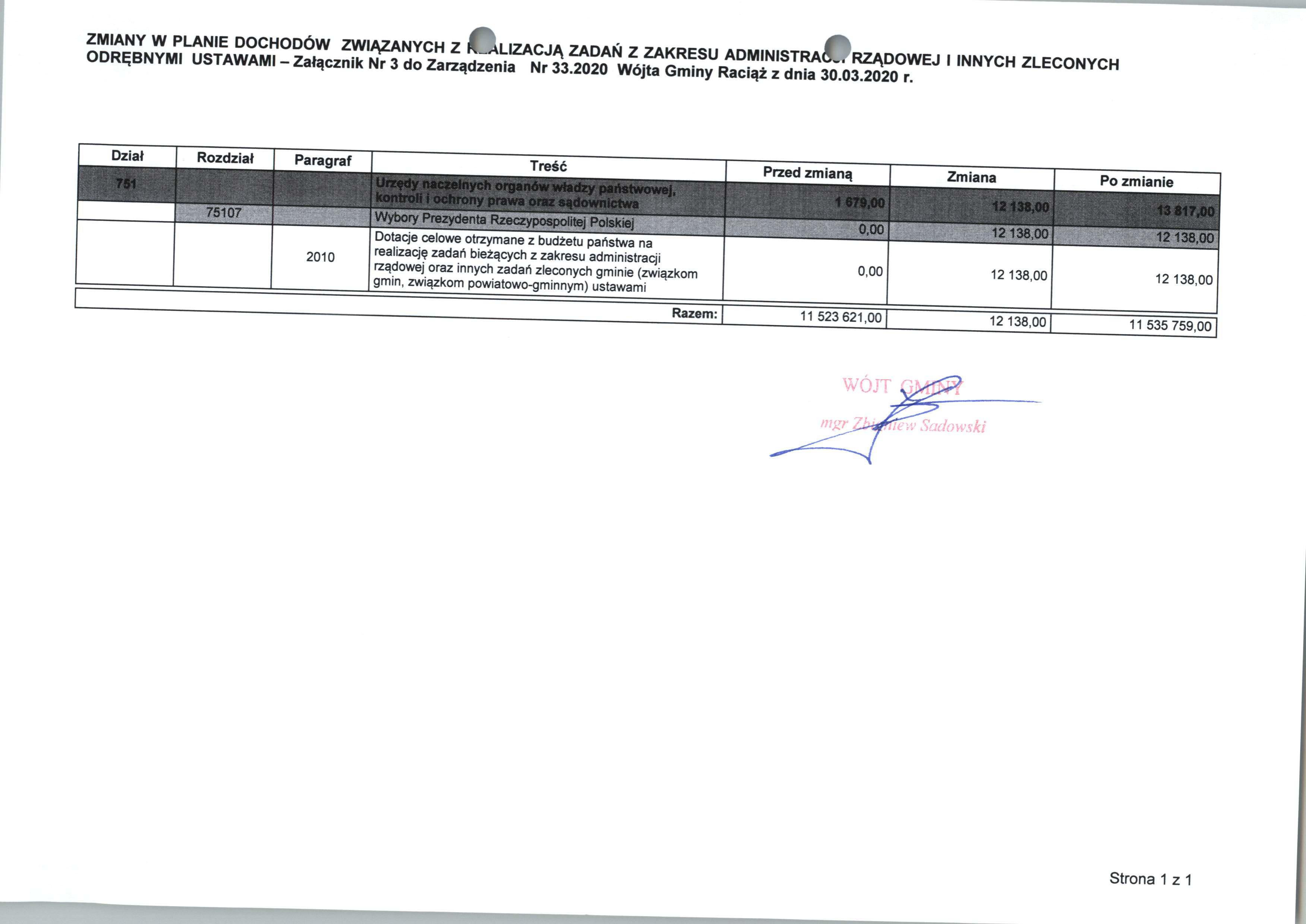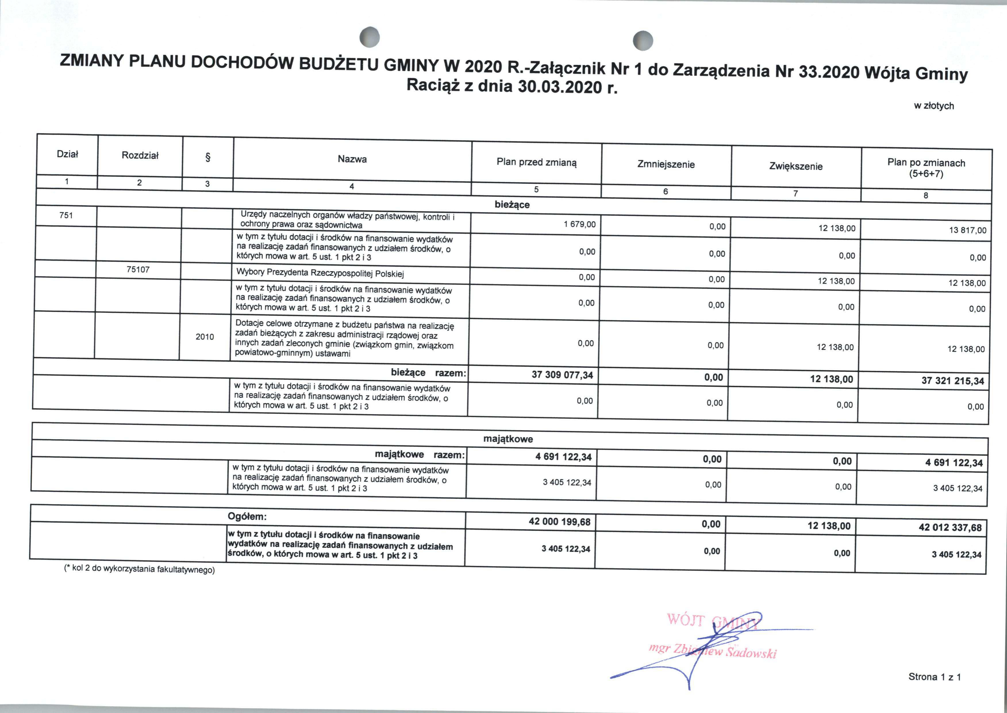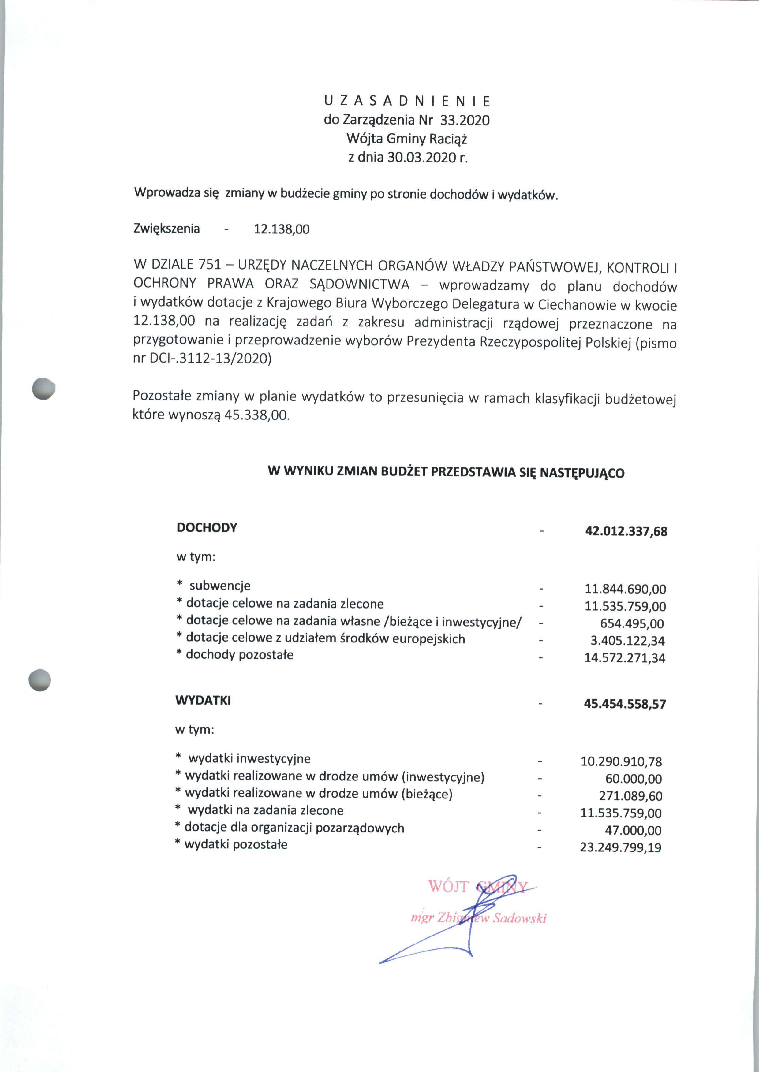 Zarządzenie Nr 33.2020 Wójta Gminy Raciąż z dnia 30 marca 2020 roku