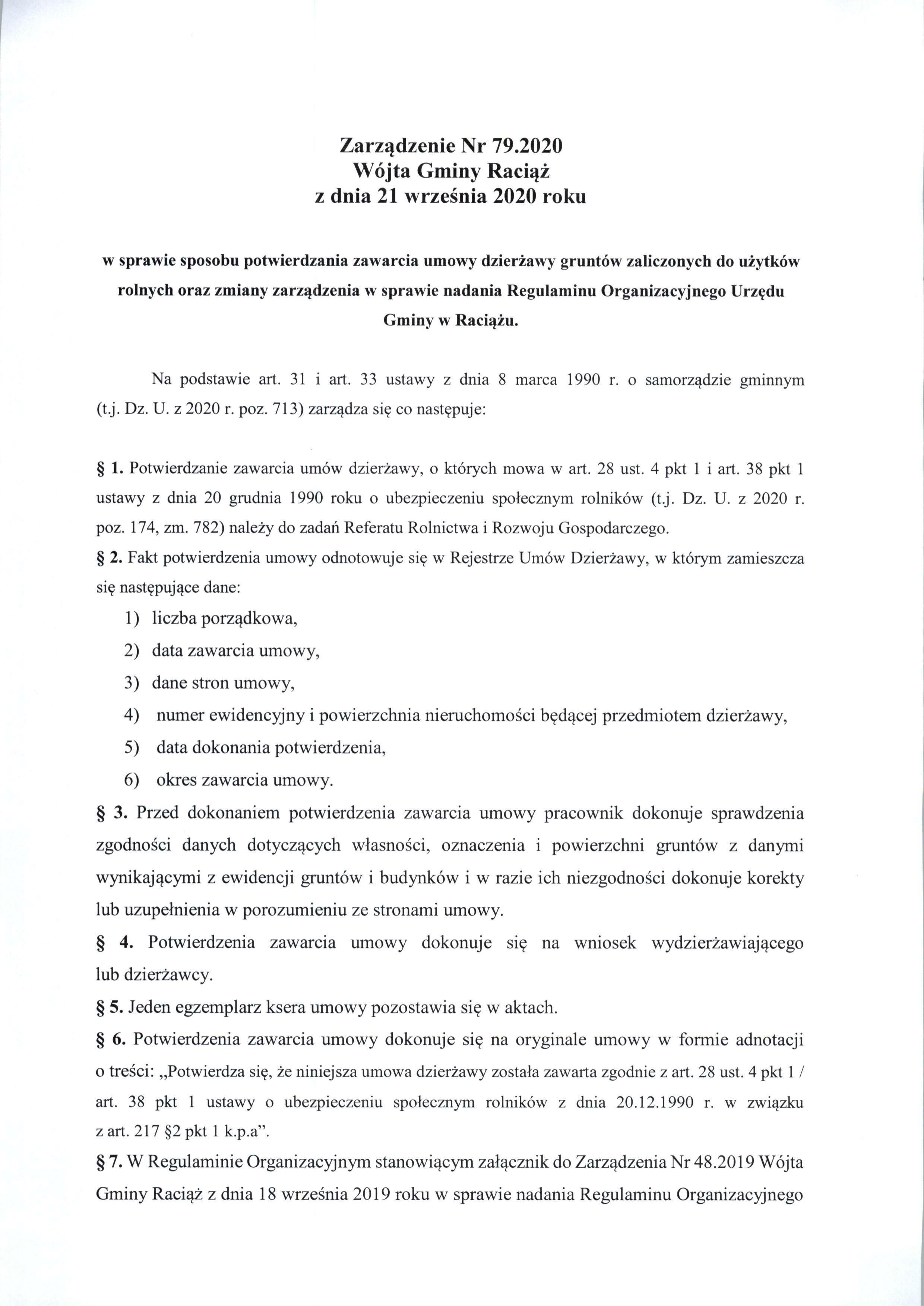 Zarządzenie Nr 79.2020 Wójta Gminy Raciąż z dnia 21 września 2020 roku