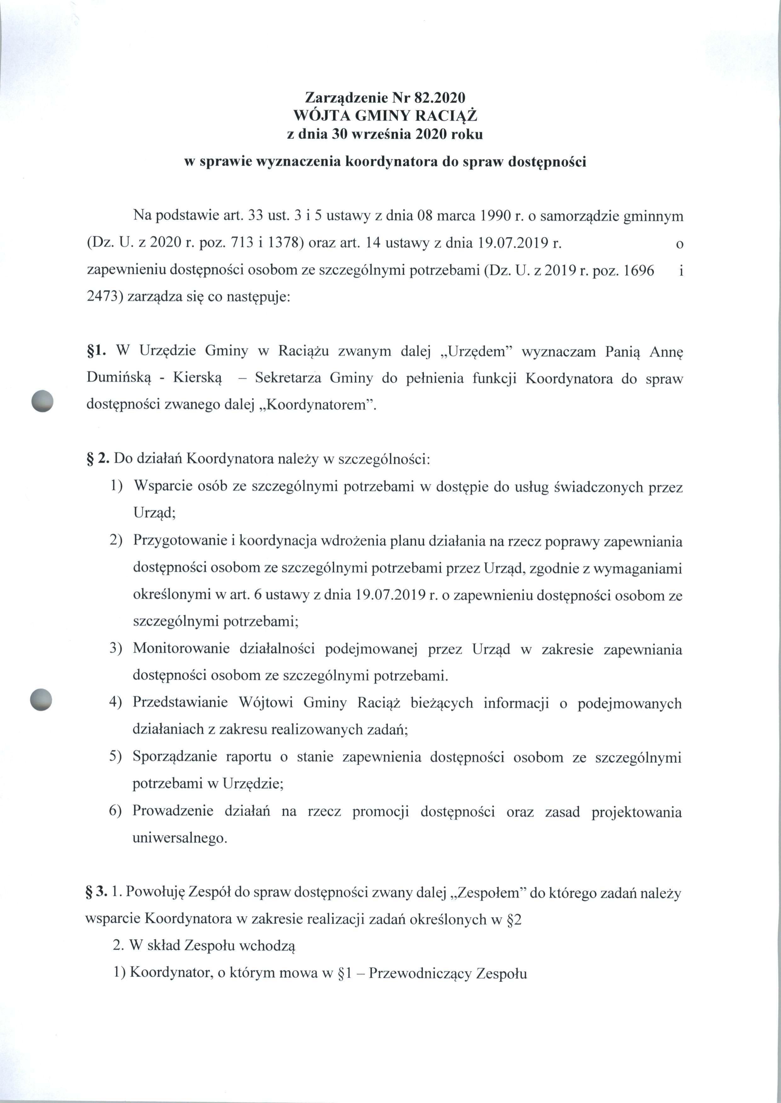 Zarządzenie Nr 82.2020 Wójta Gminy Raciąż z dnia 30 września 2020 roku
