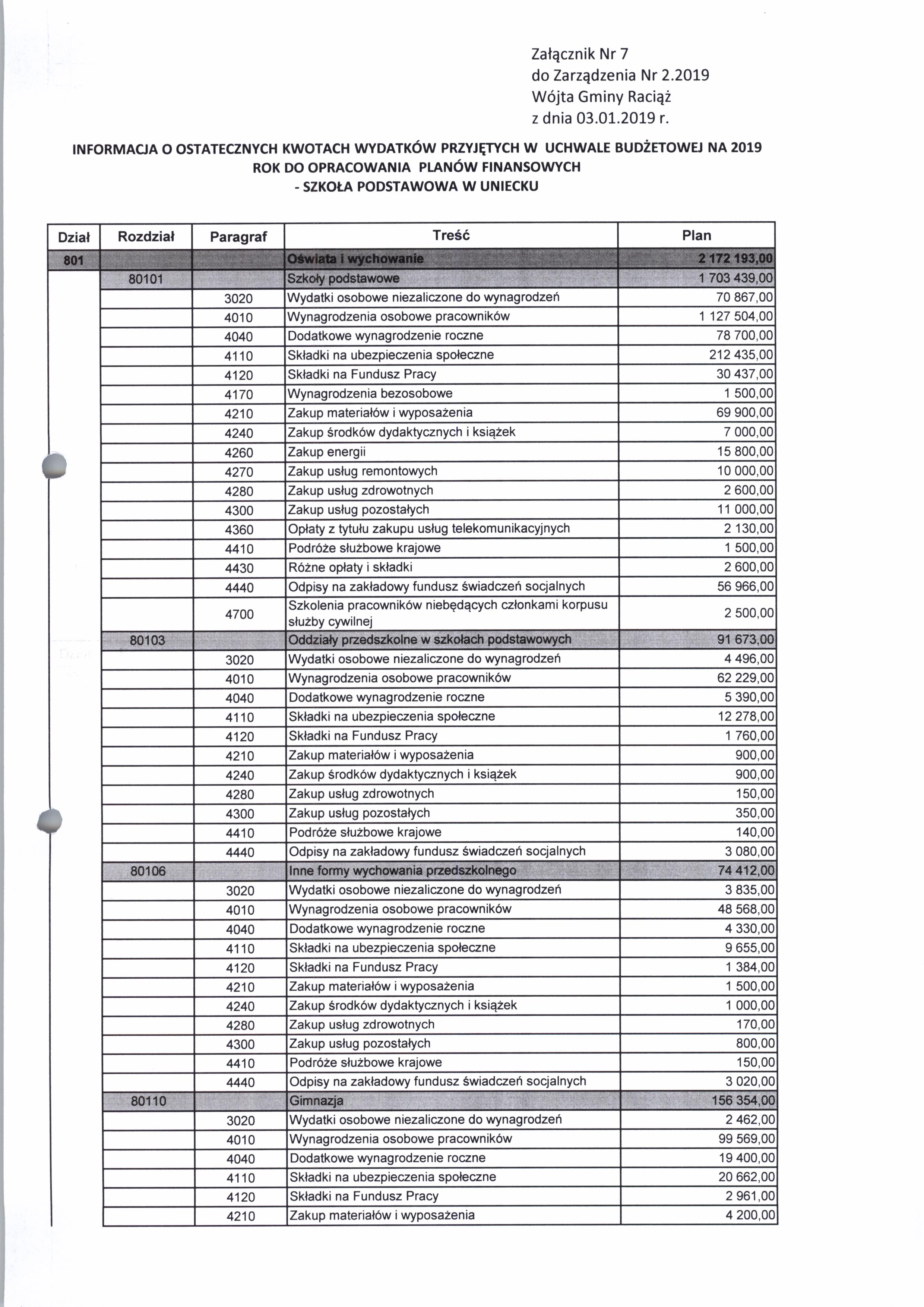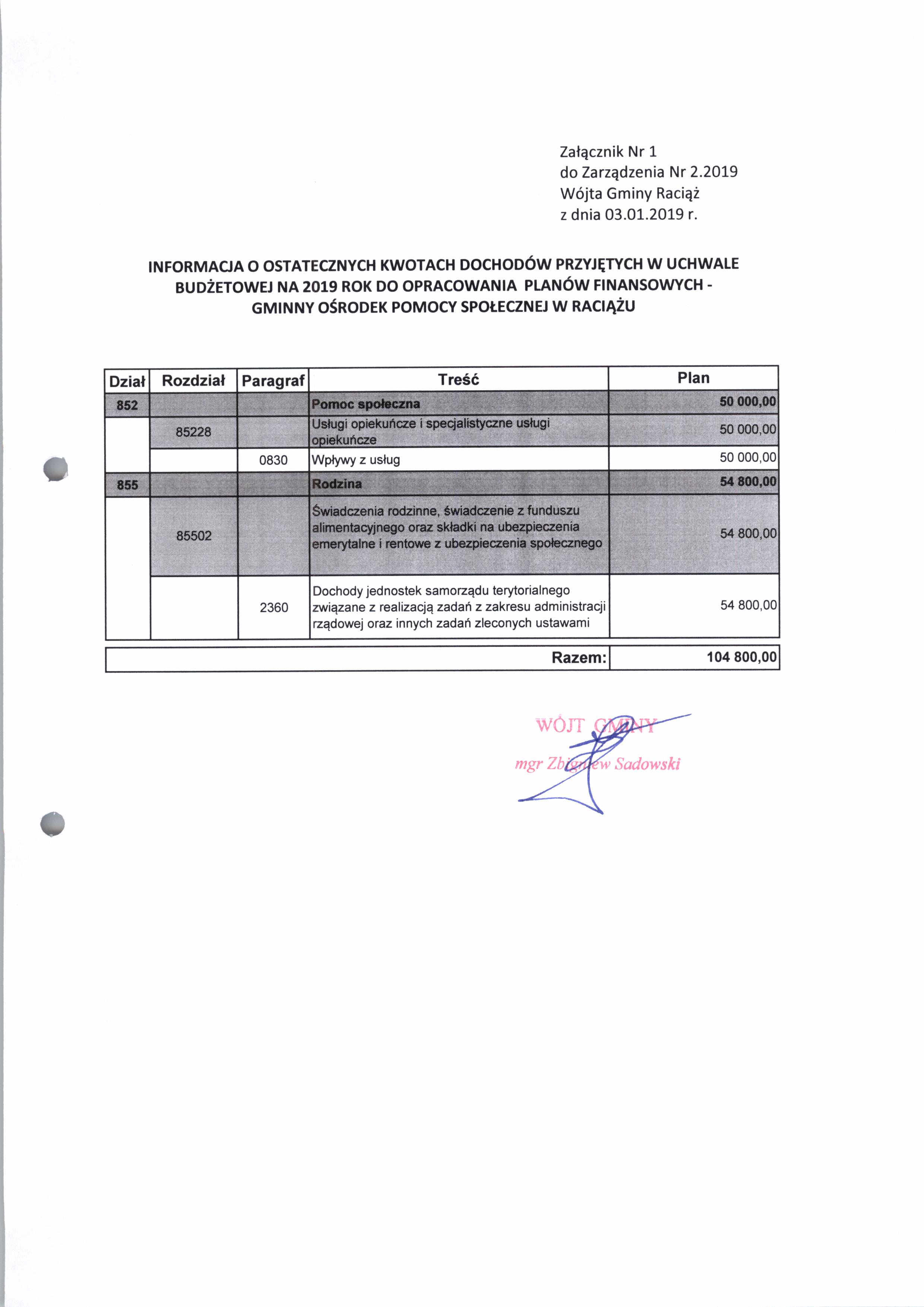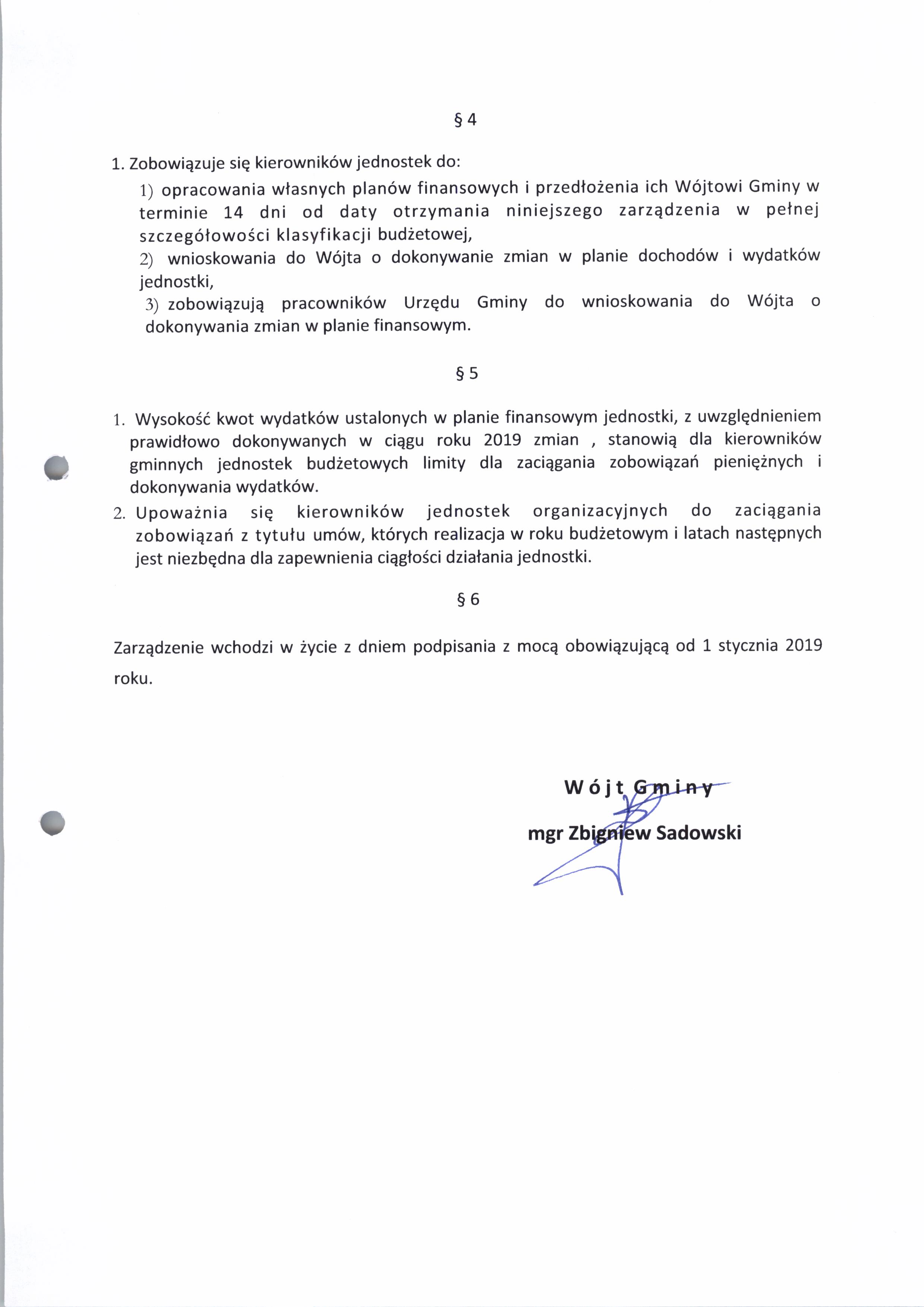 Zarządzenie nr 2.2019 Wójta Gminy Raciąż z dnia 3 stycznia 2019 r.