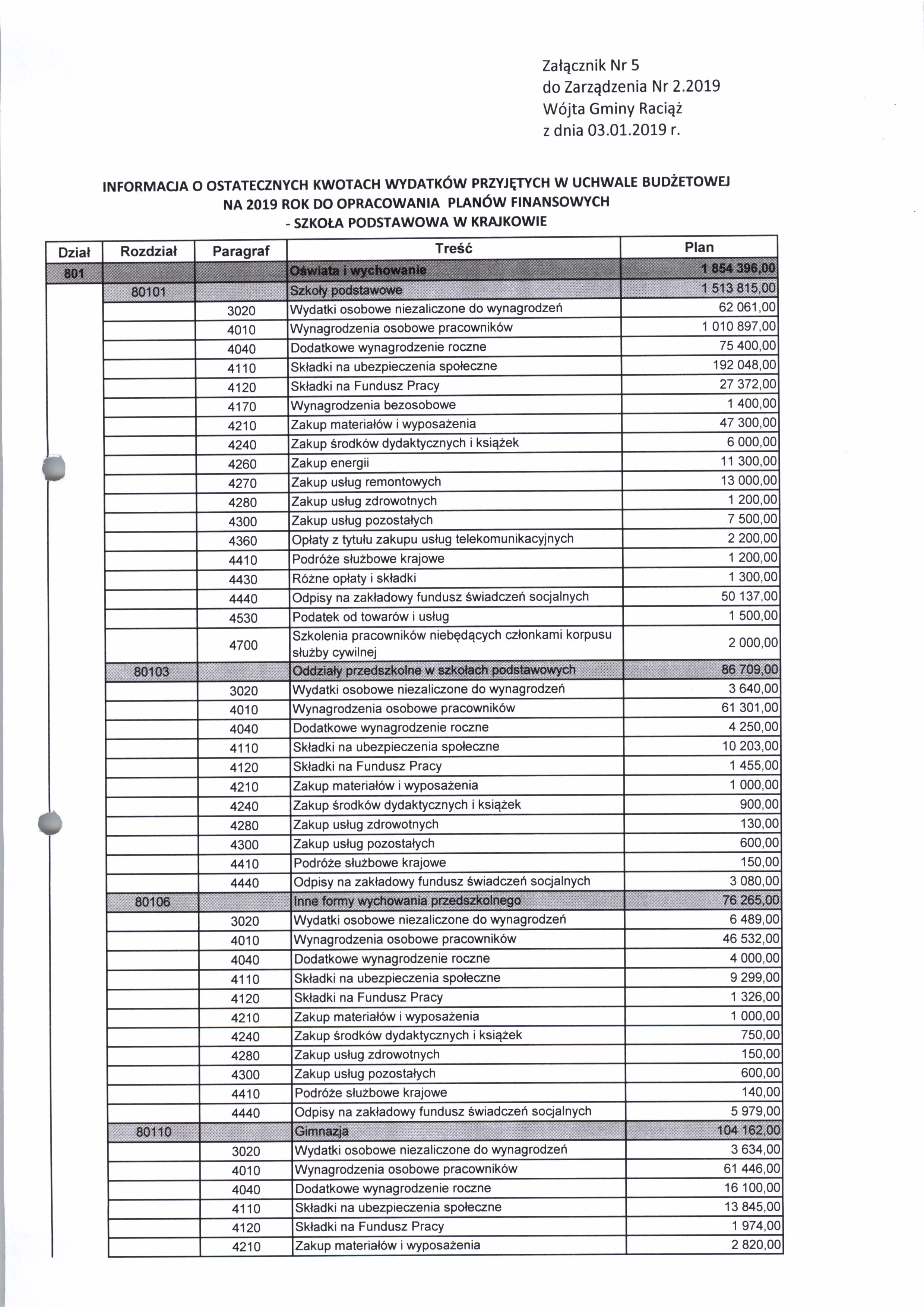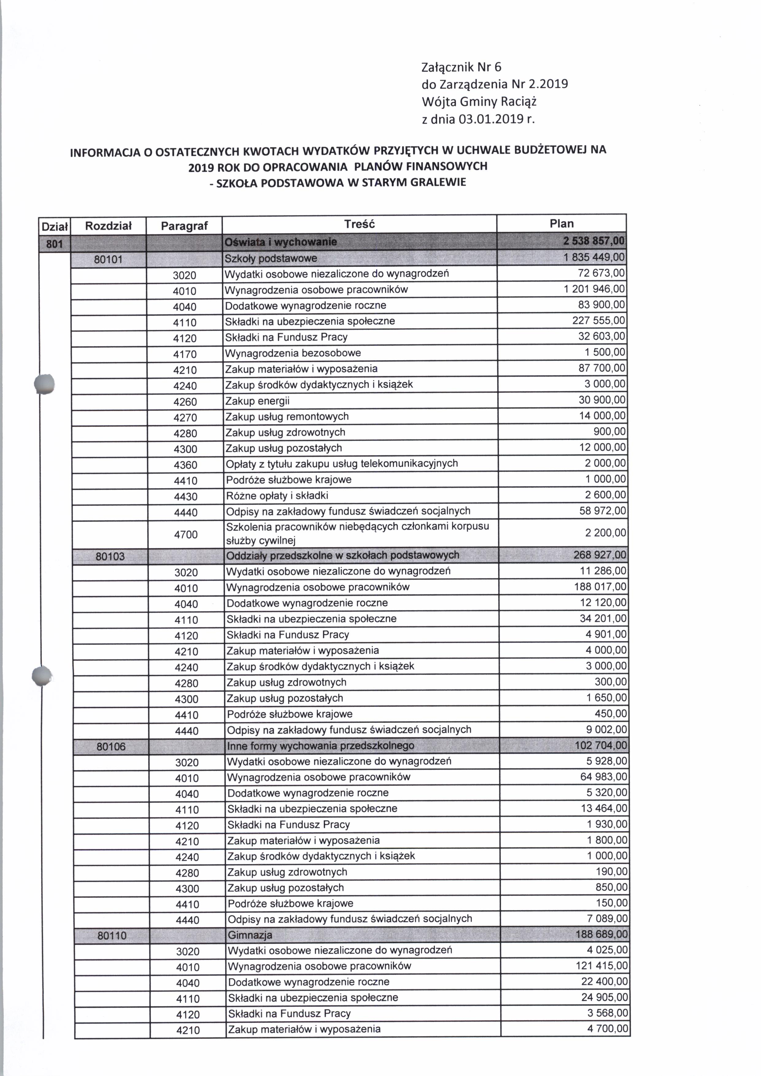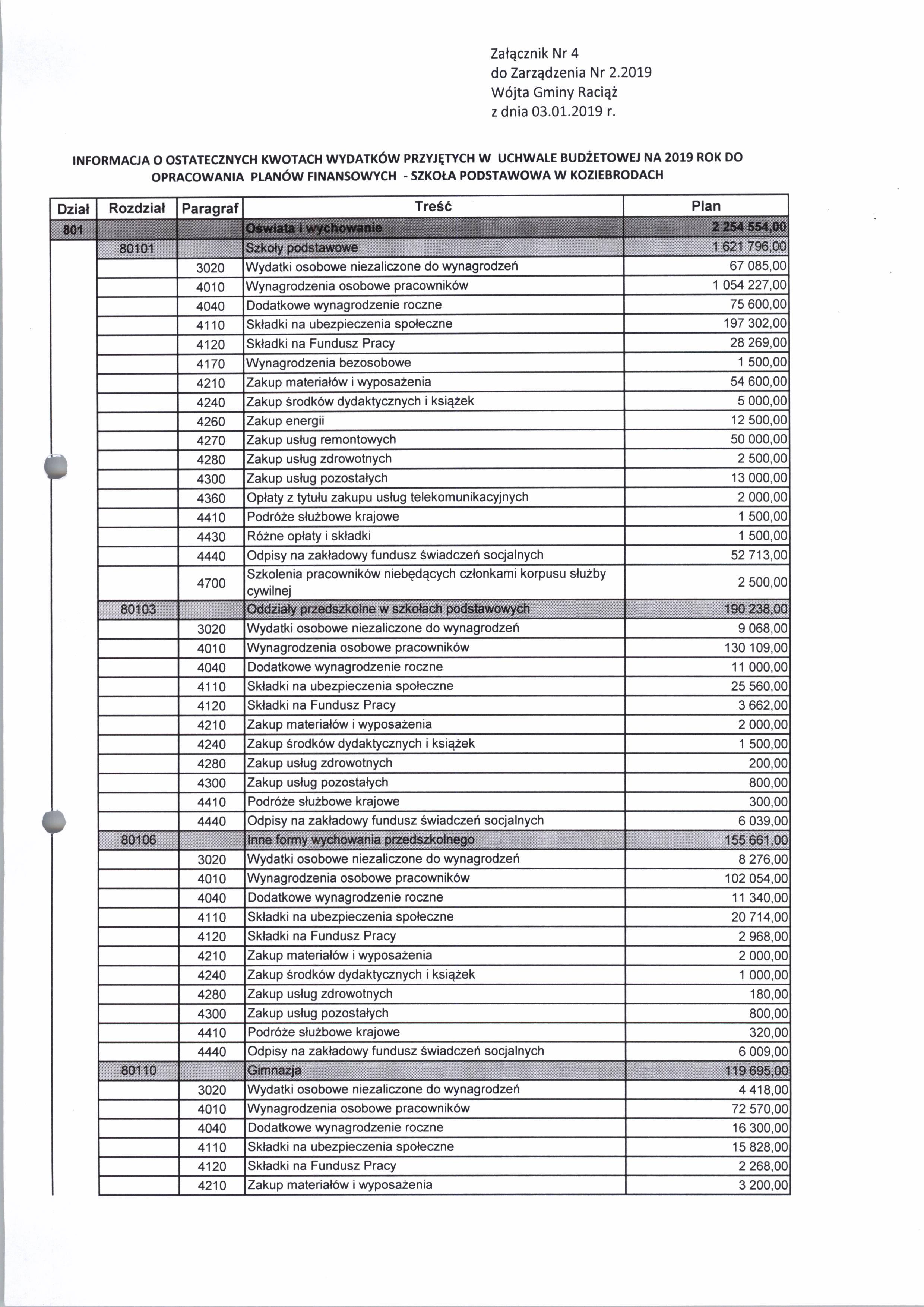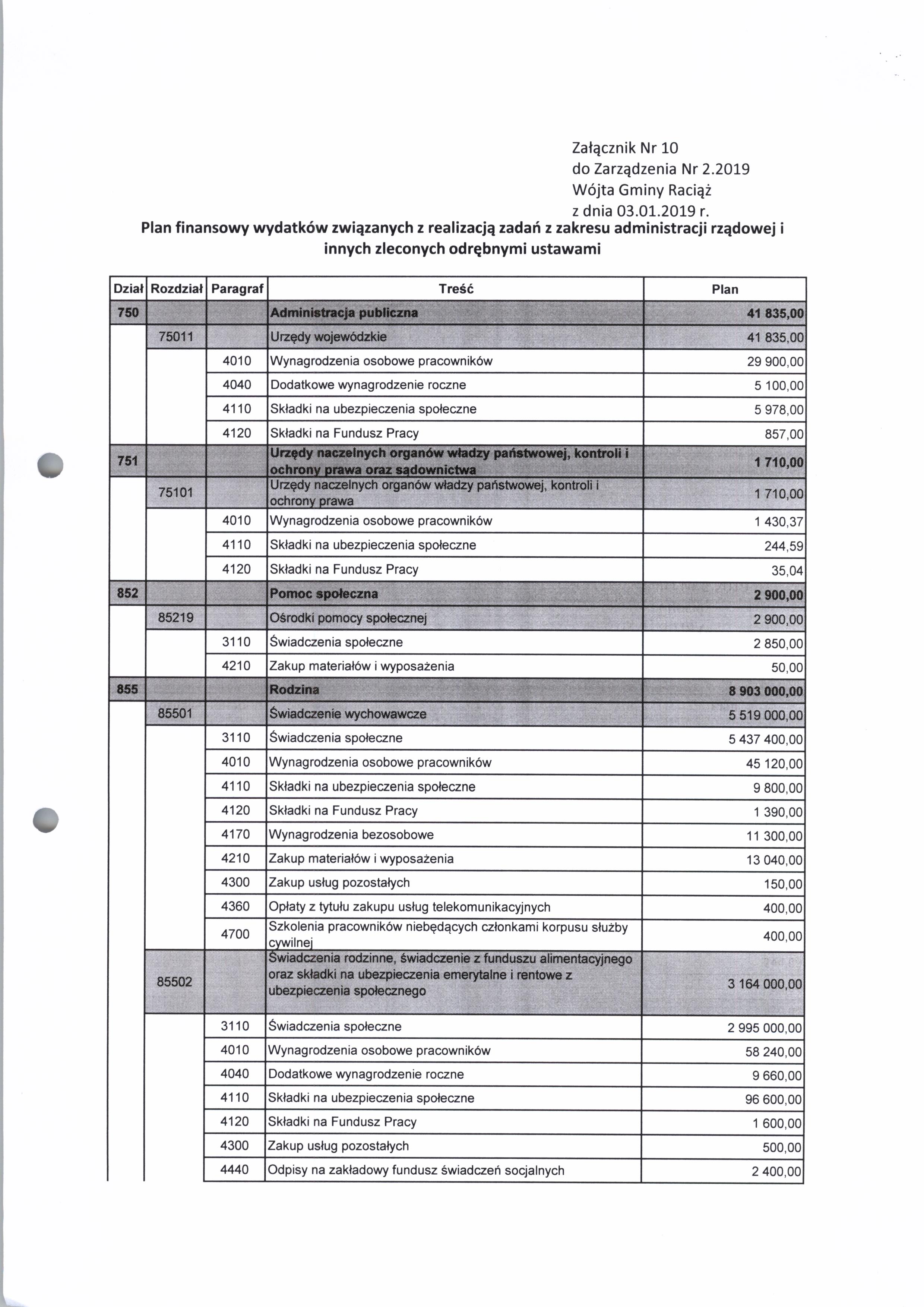 Zarządzenie nr 2.2019 Wójta Gminy Raciąż z dnia 3 stycznia 2019 r.