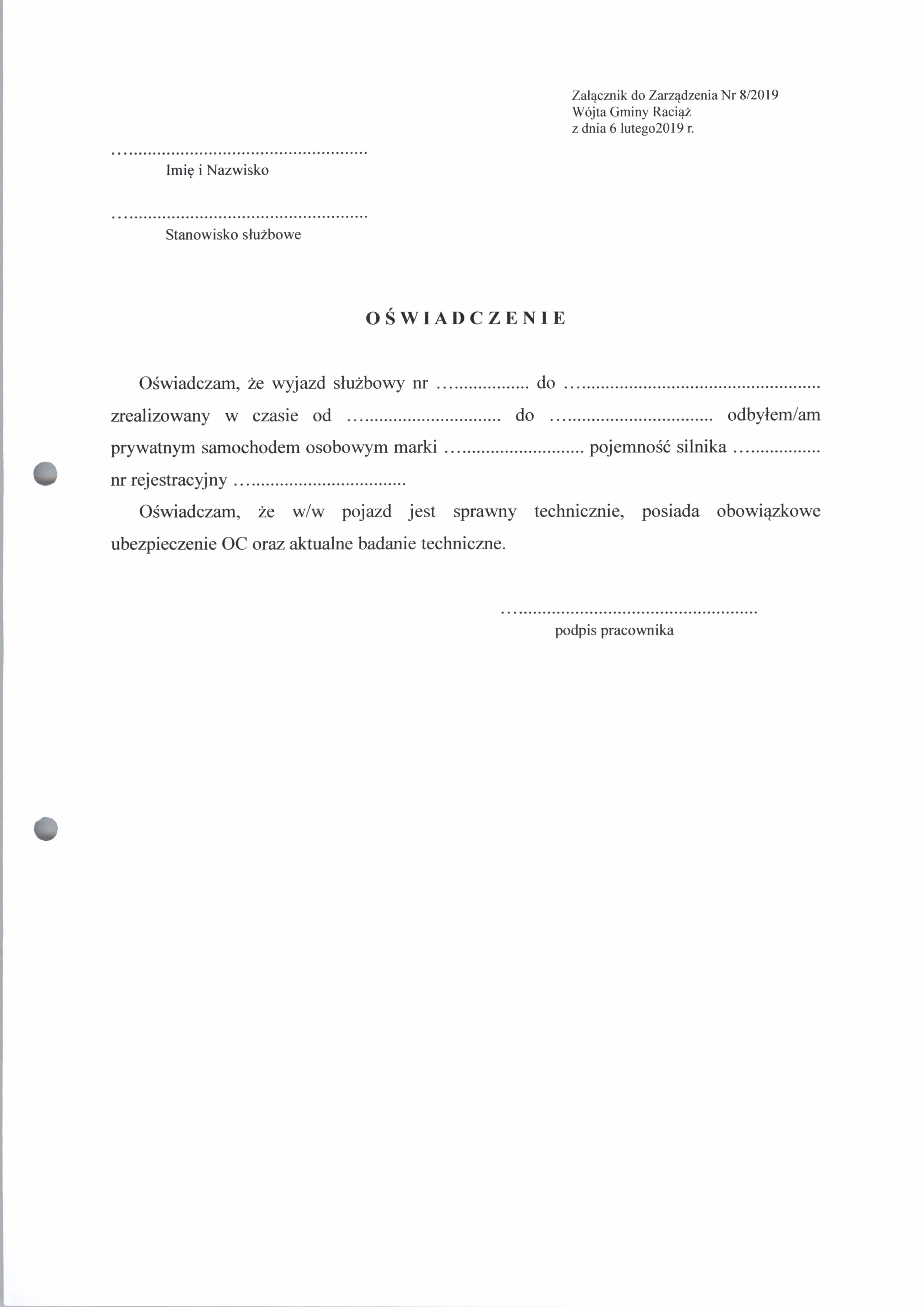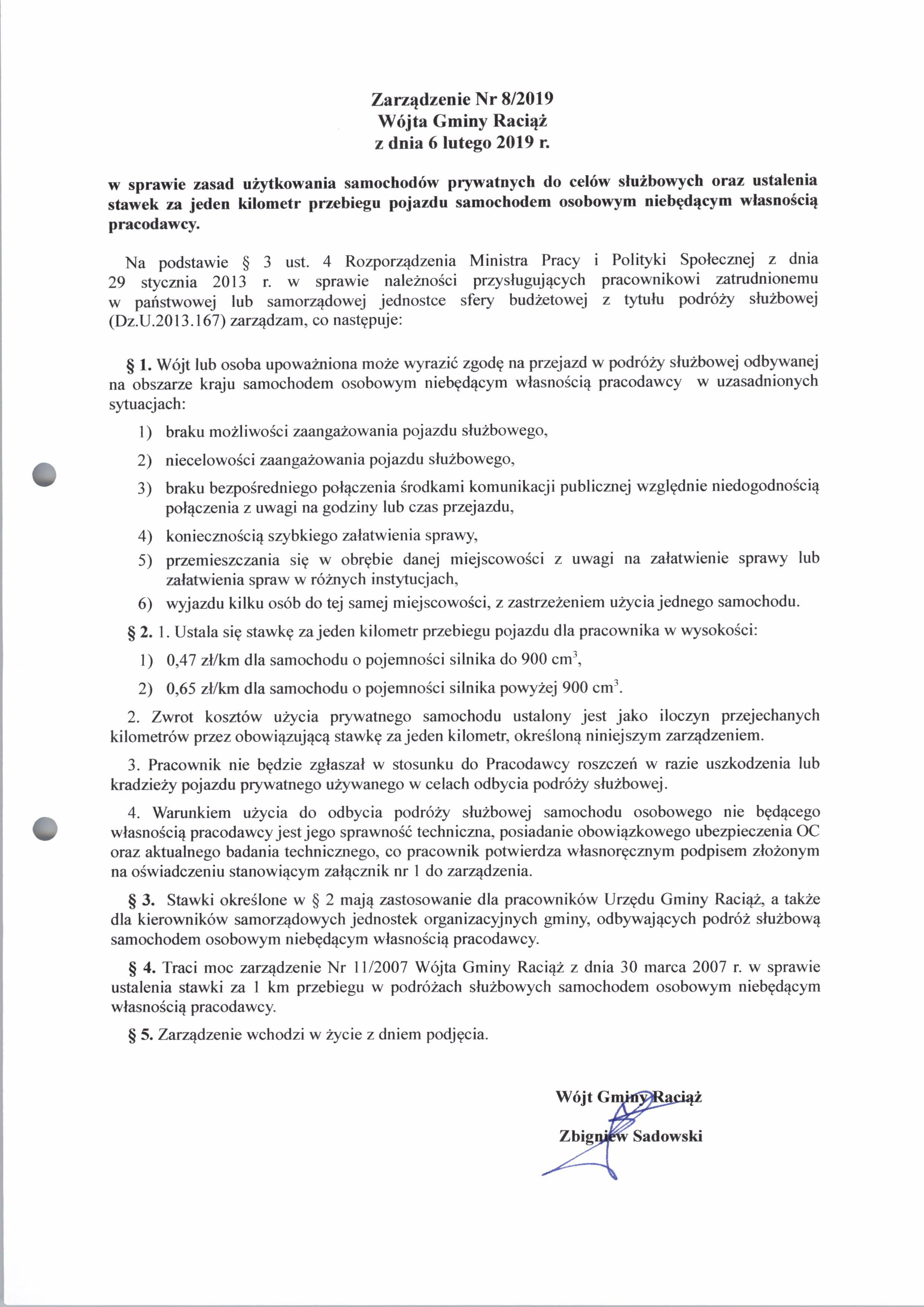 Zarządzenie Nr 8.2019 Wójta Gminy Raciąż z dnia 21 lutego 2019 roku