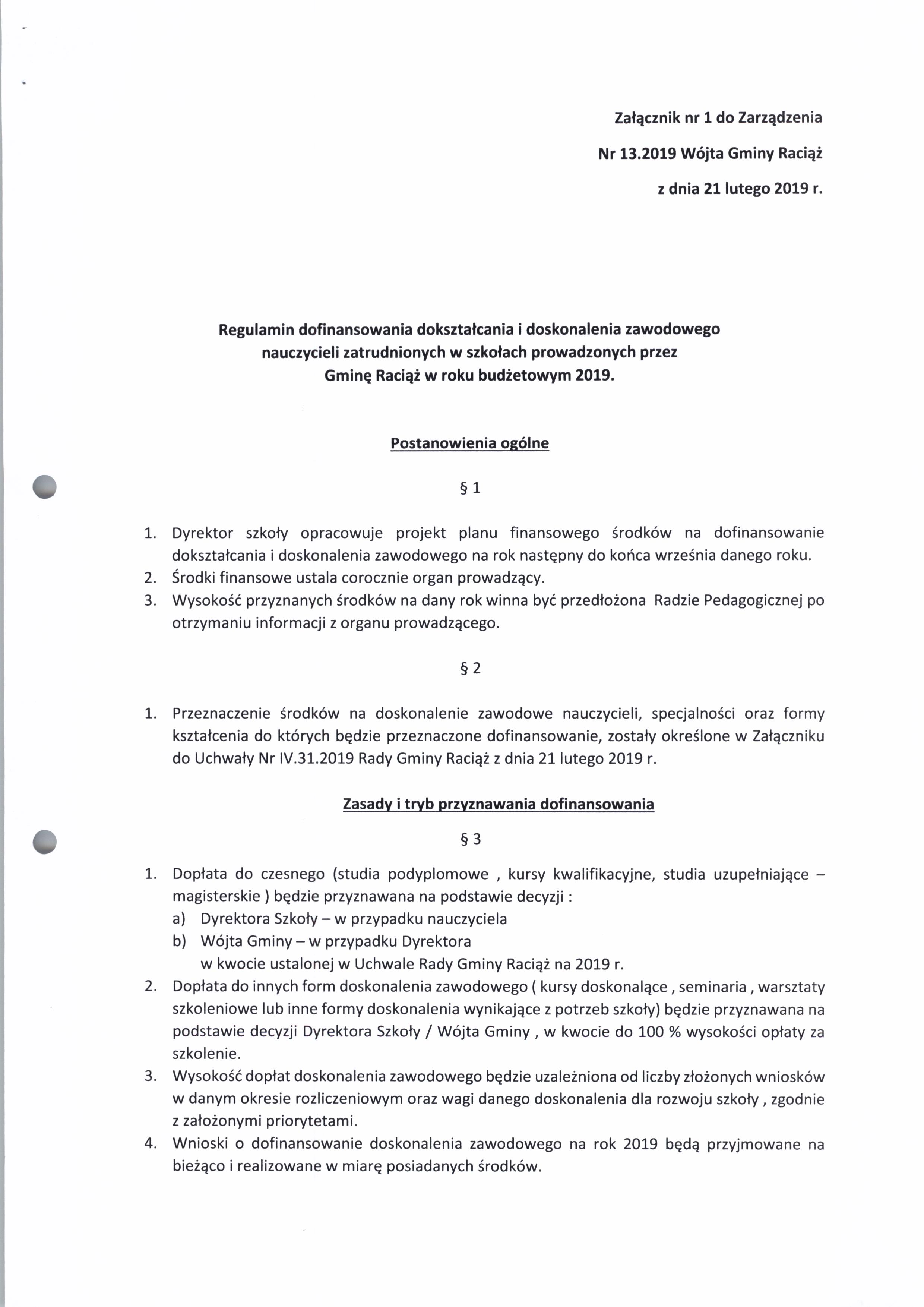Zarządzenie Nr 13.2019 Wójta Gminy Raciąż z dnia 21 lutego 2019 roku