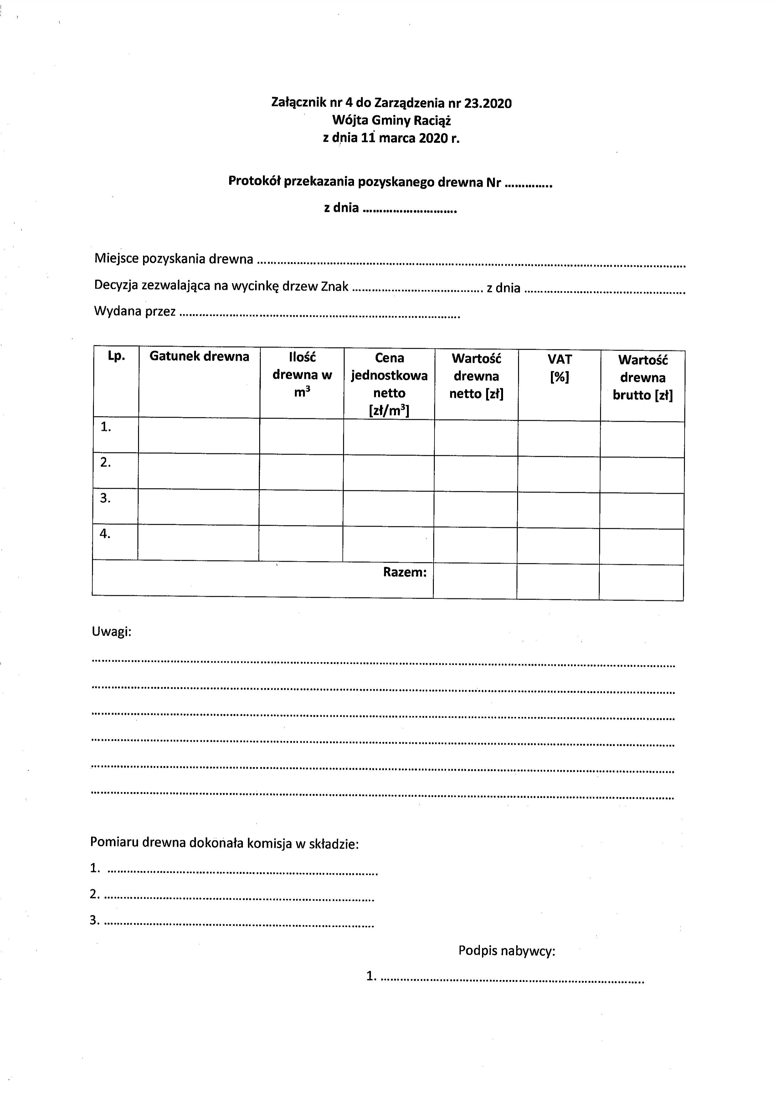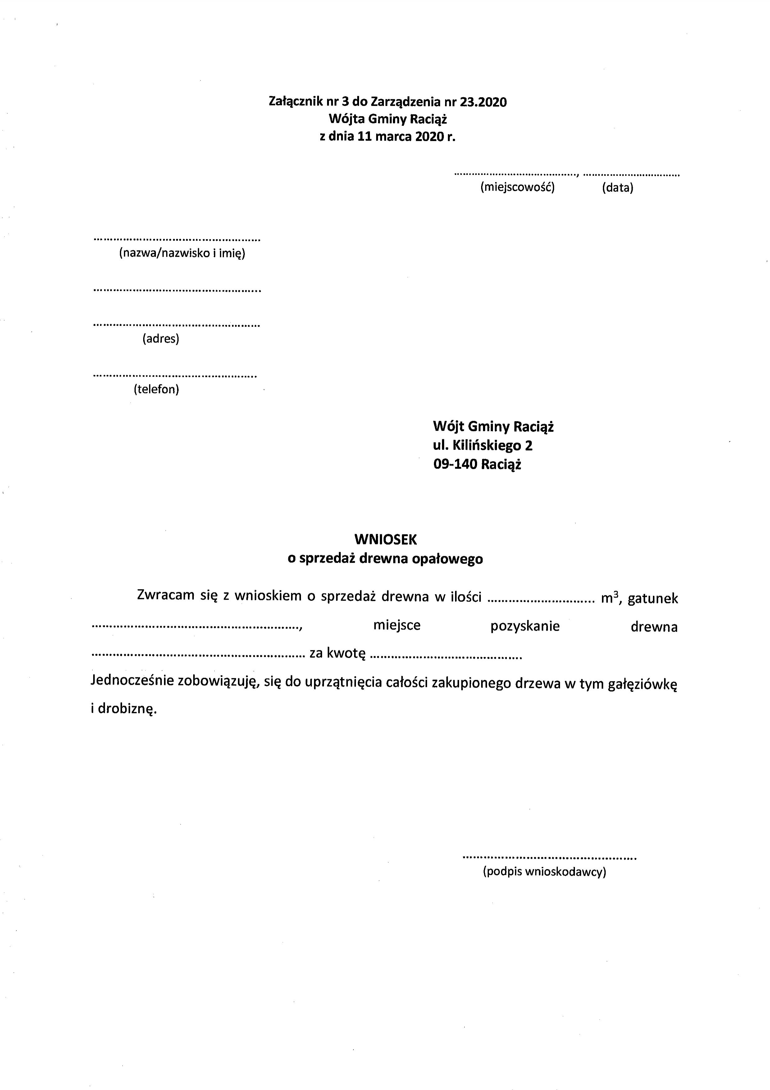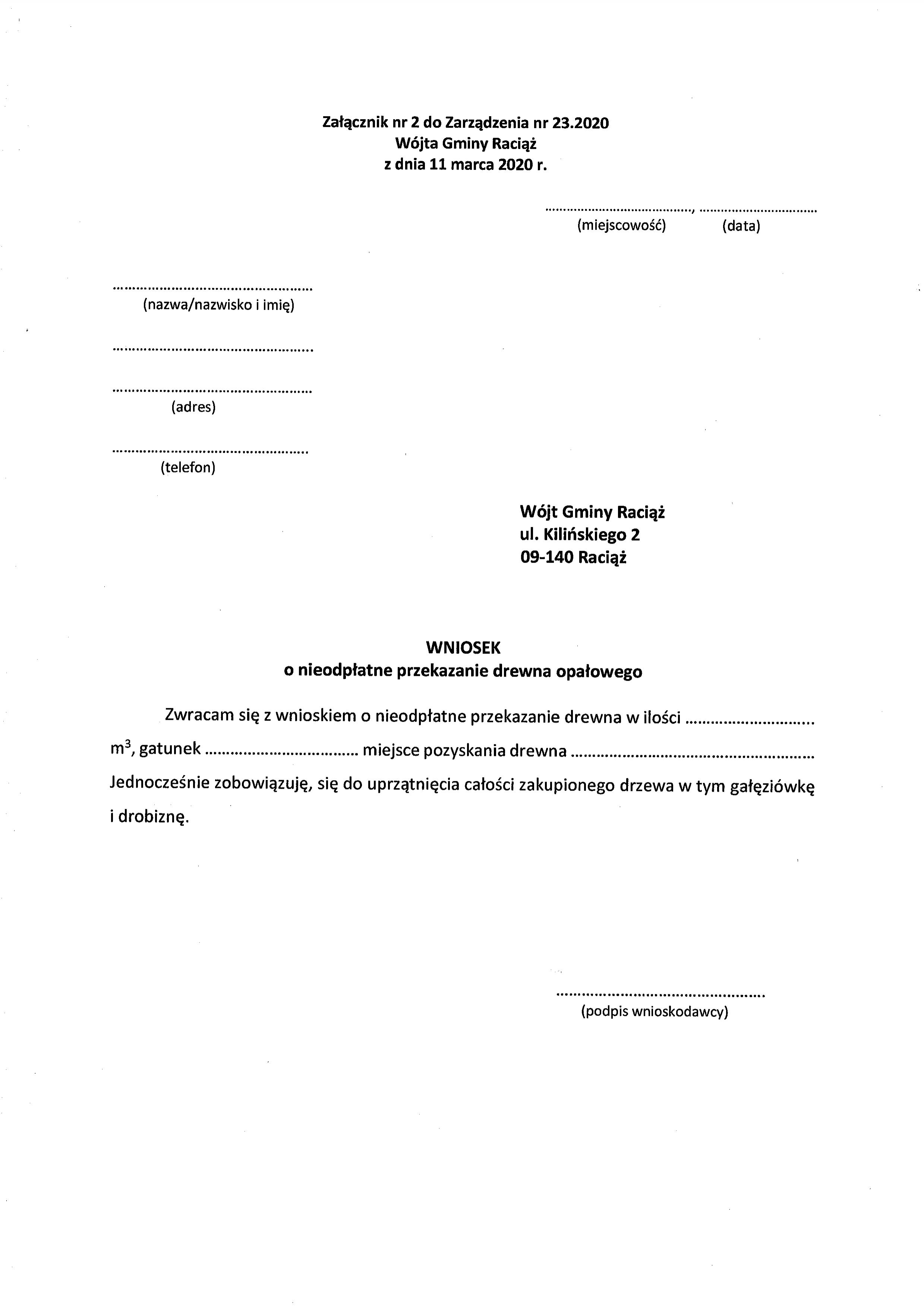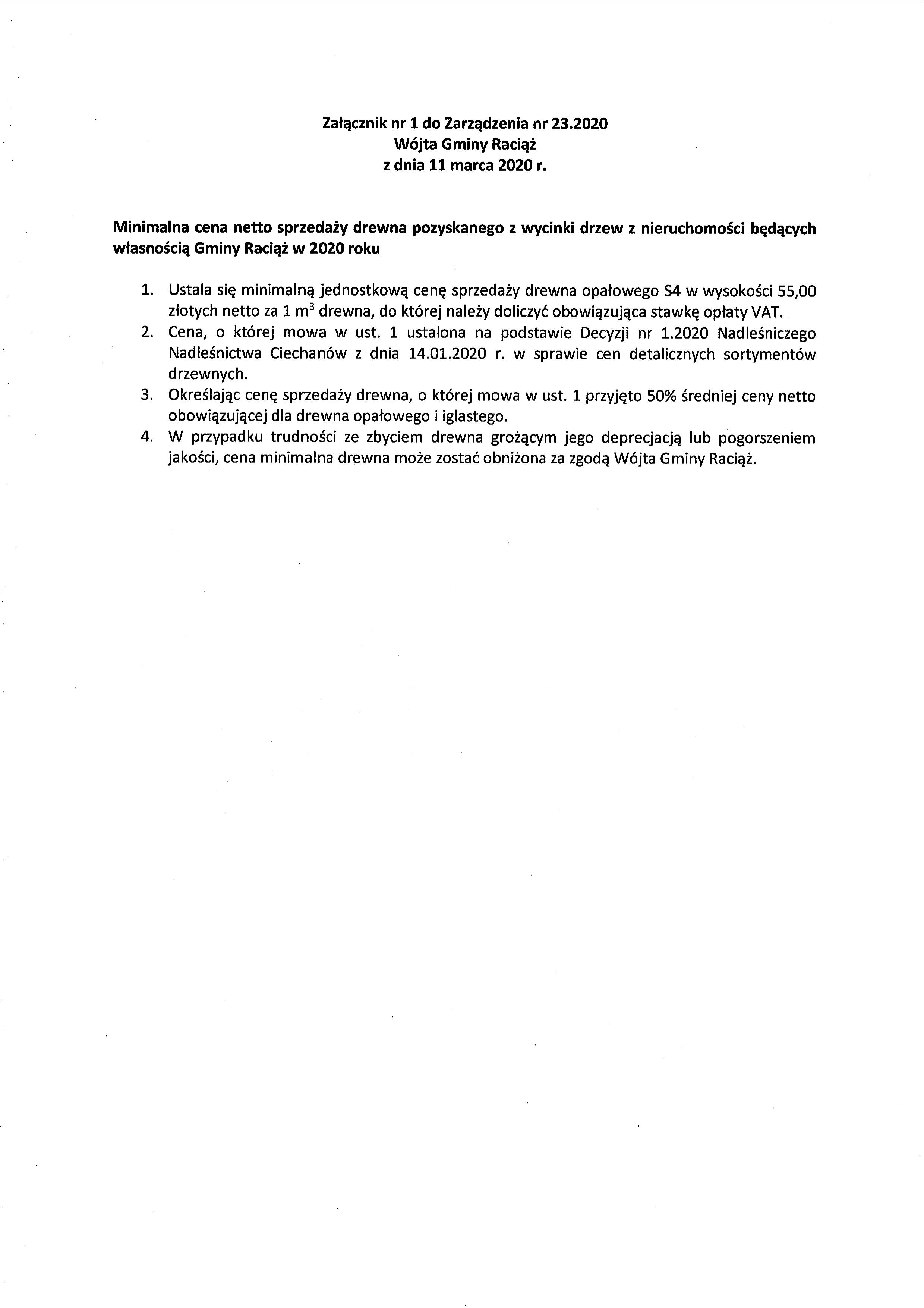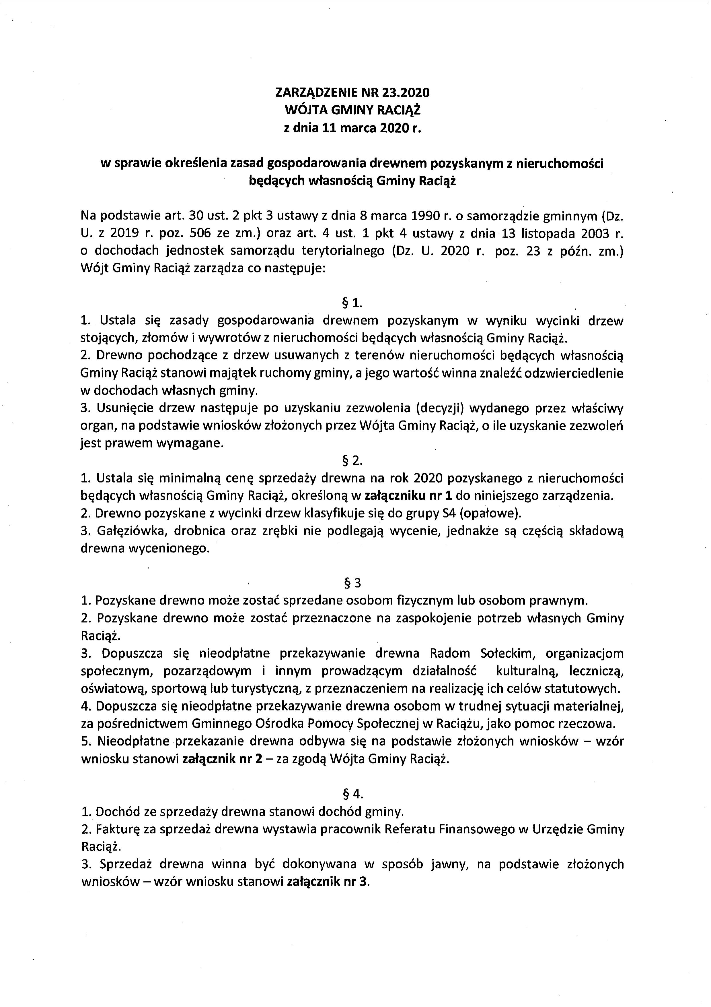Zarządzenie Nr 23.2020 Wójta Gminy Raciąż z dnia 11 marca 2020 roku