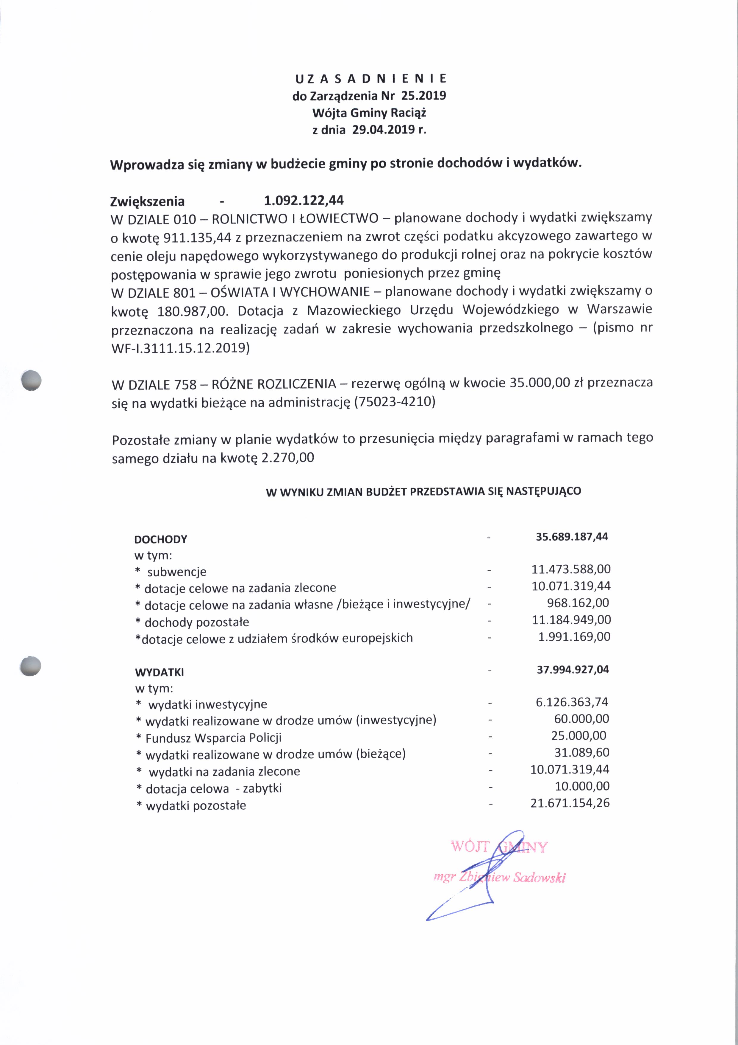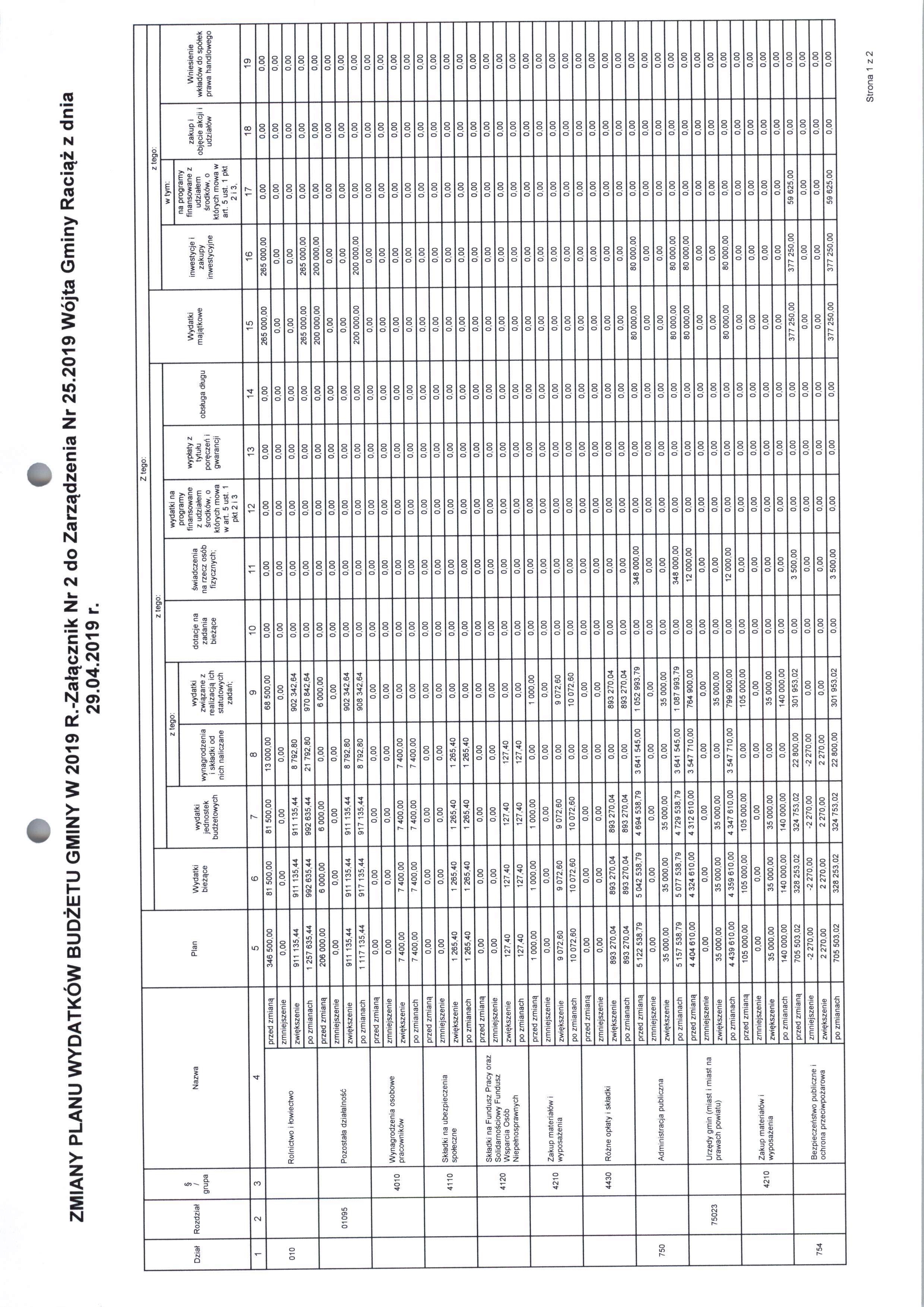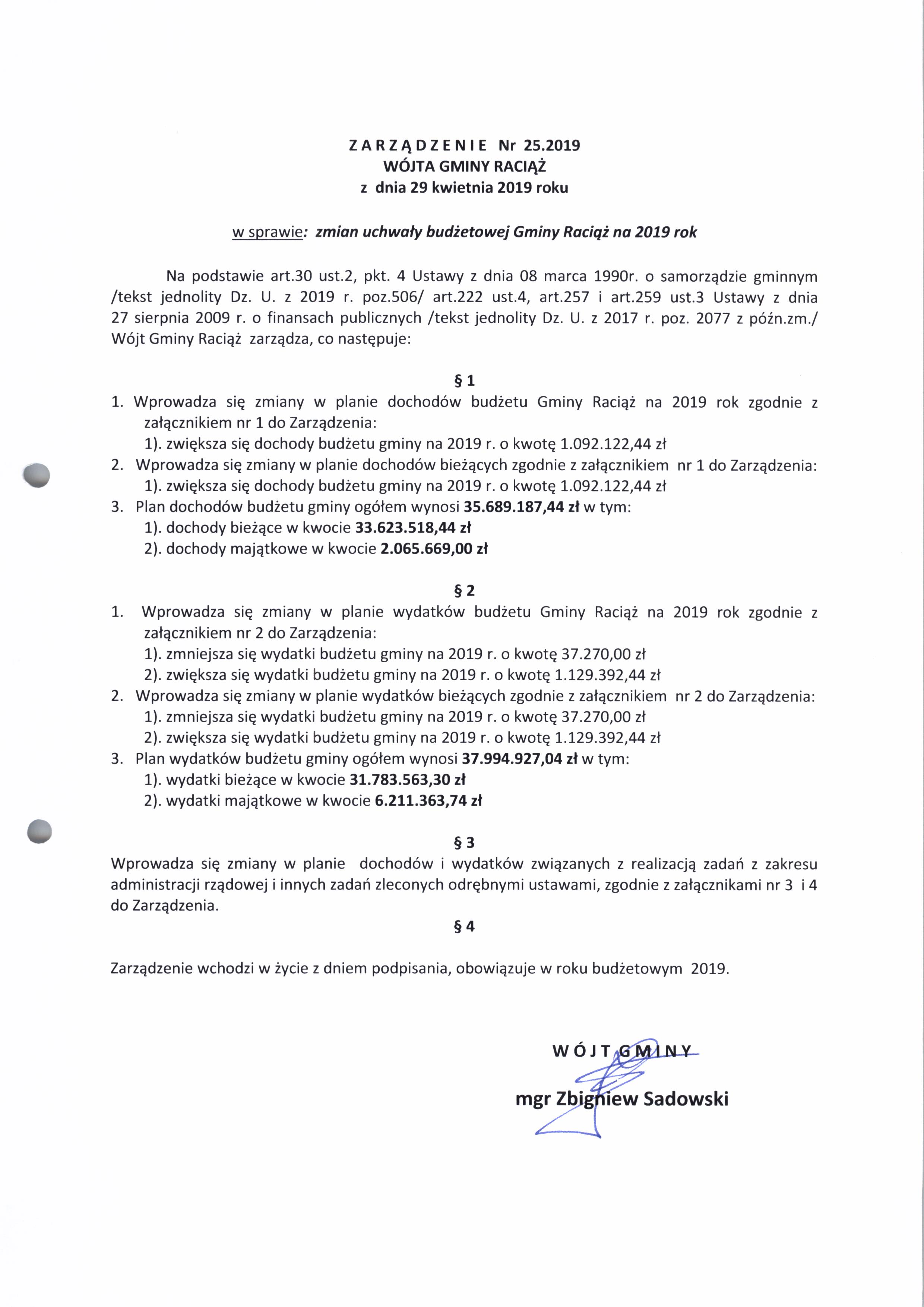 Zarządzenie Nr 25.2019 Wójta Gminy Raciąż z dnia 29 kwietnia 2019 roku