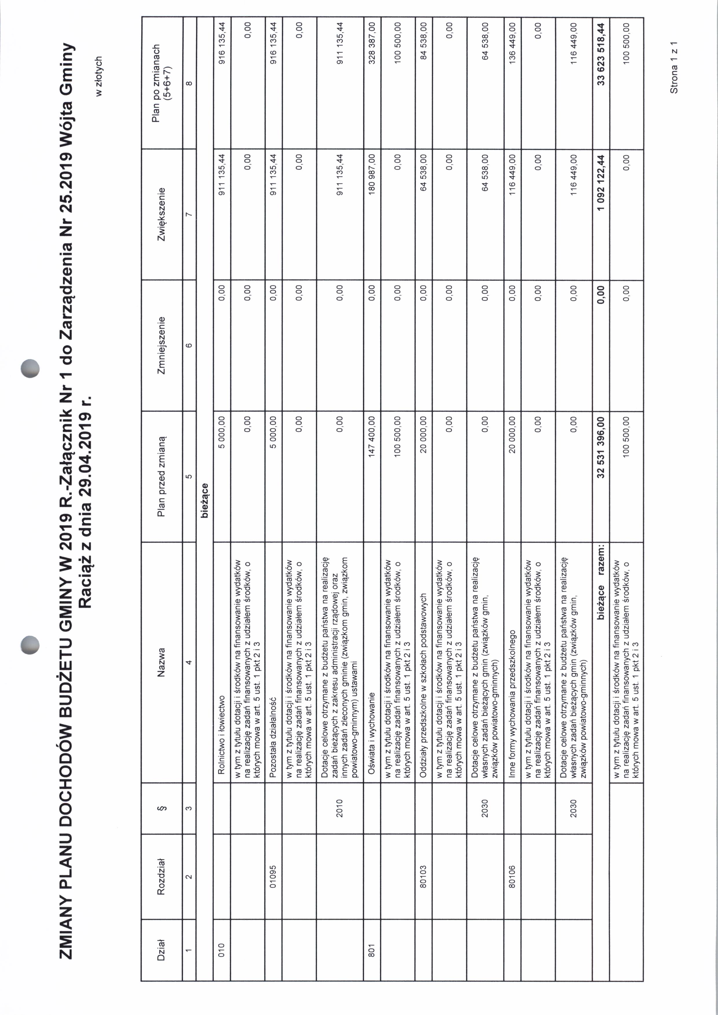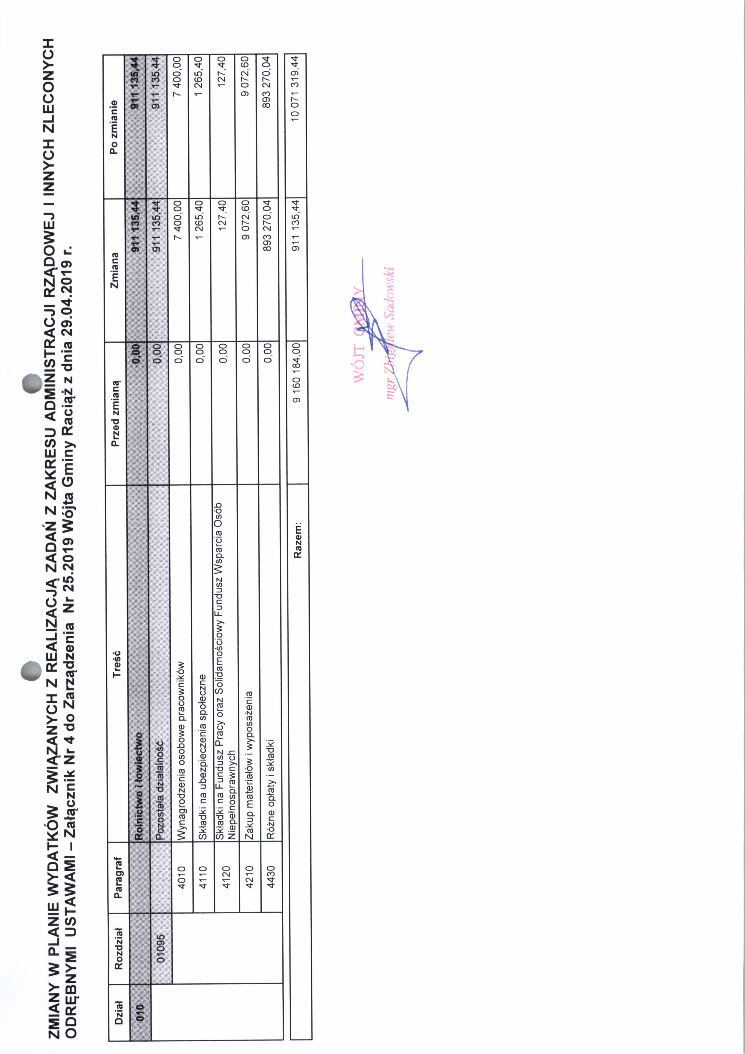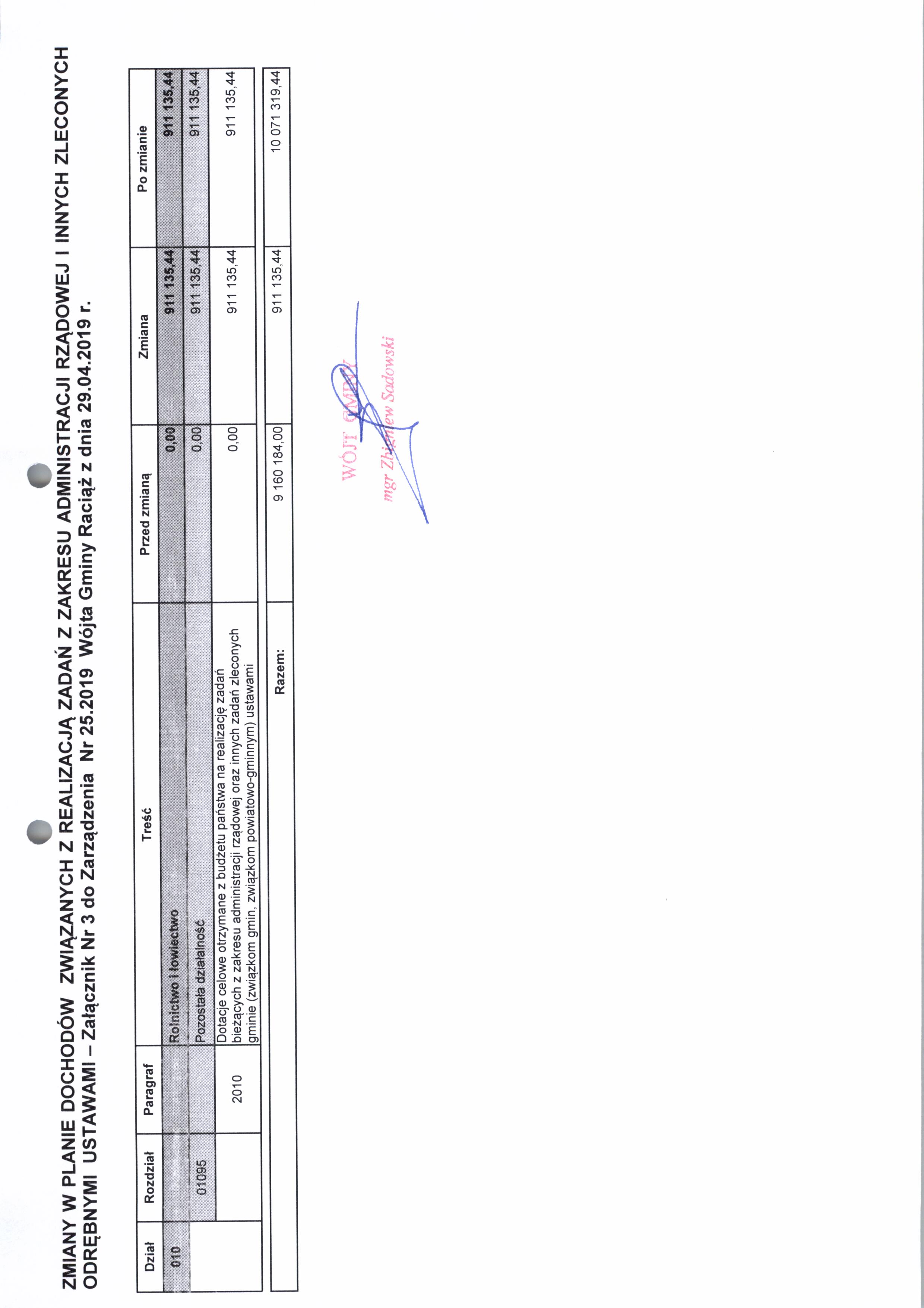 Zarządzenie Nr 25.2019 Wójta Gminy Raciąż z dnia 29 kwietnia 2019 roku