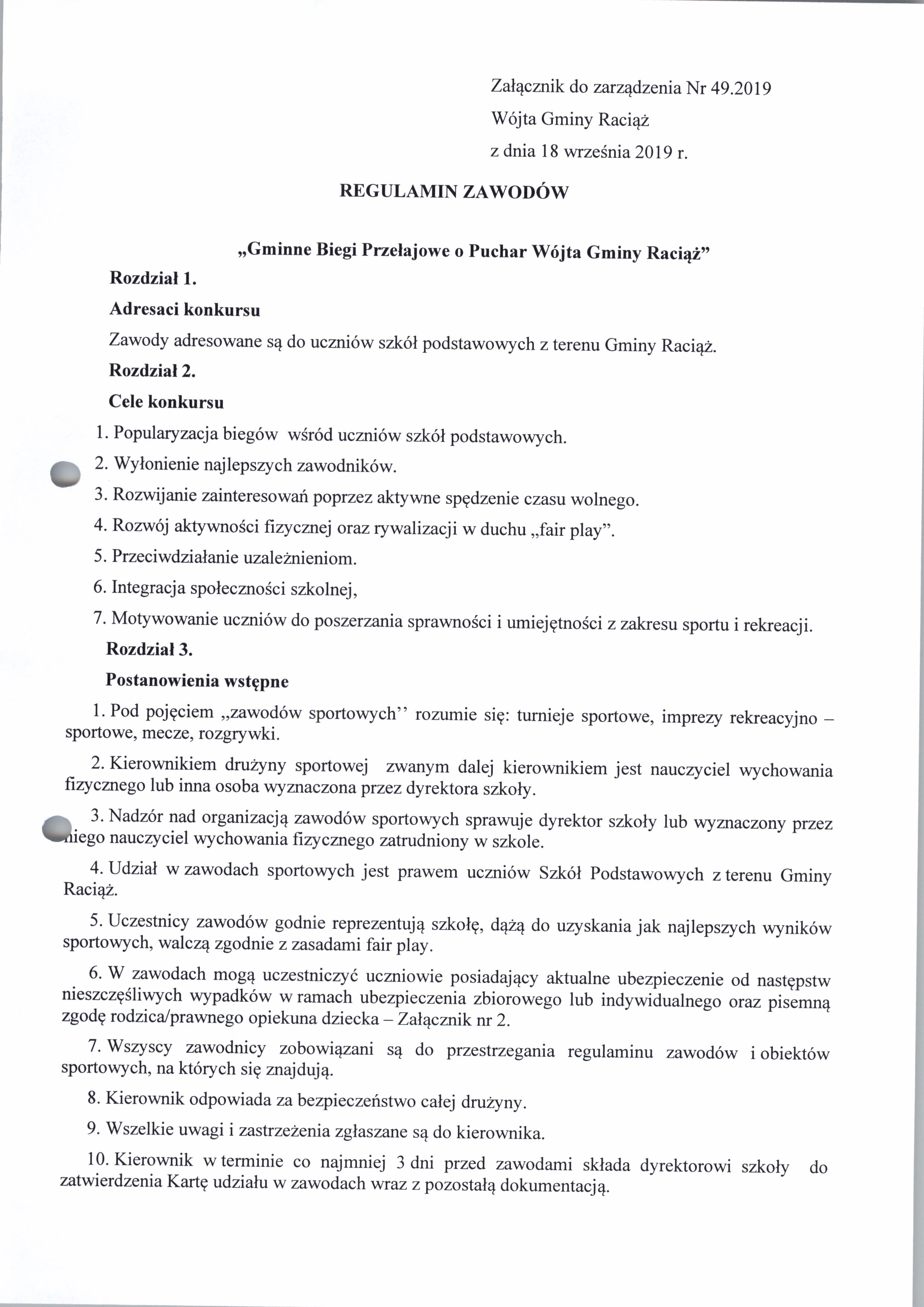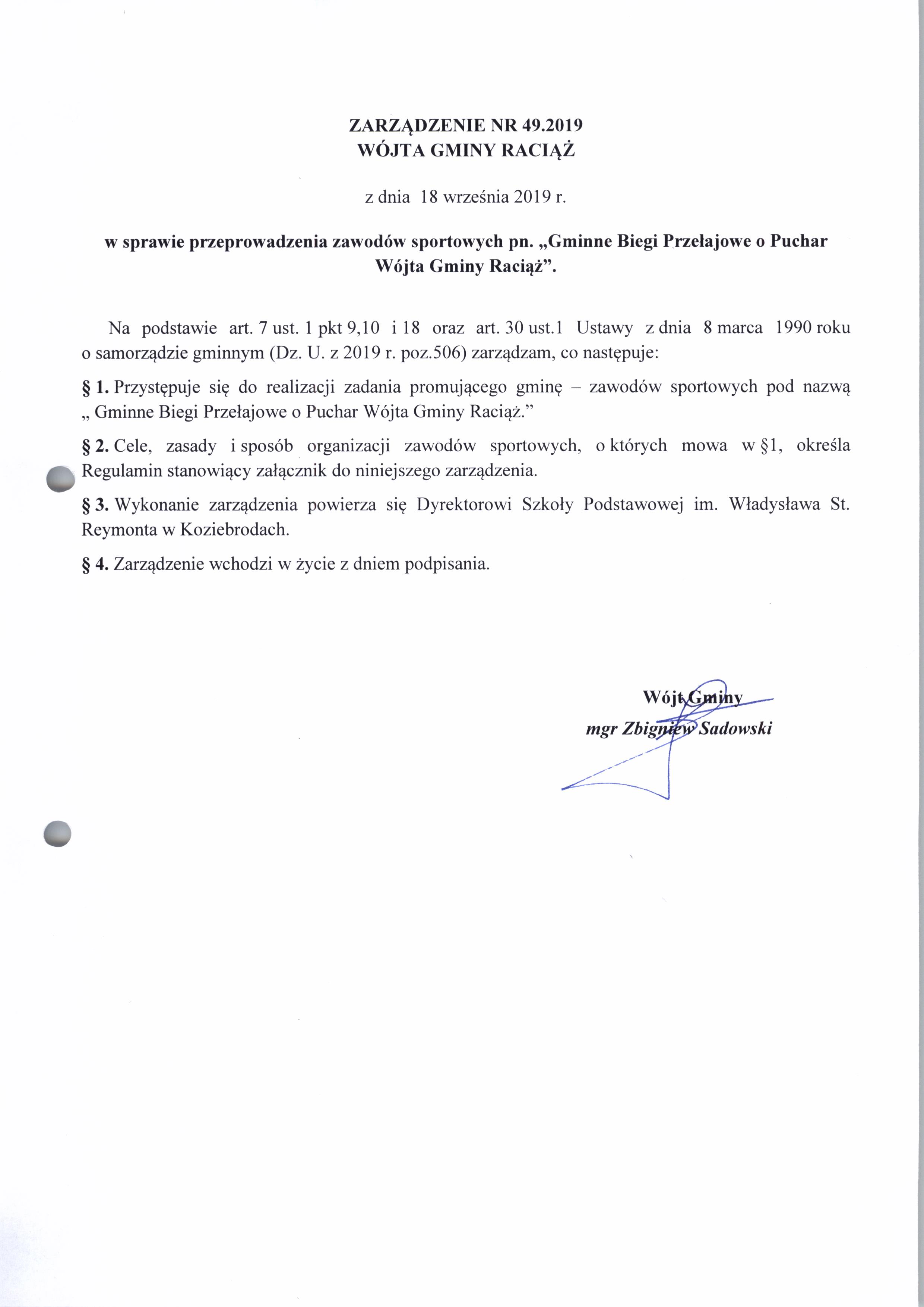 Zarządzenie Nr 49.2019 Wójta Gminy Raciąż z dnia 18 września 2019 roku