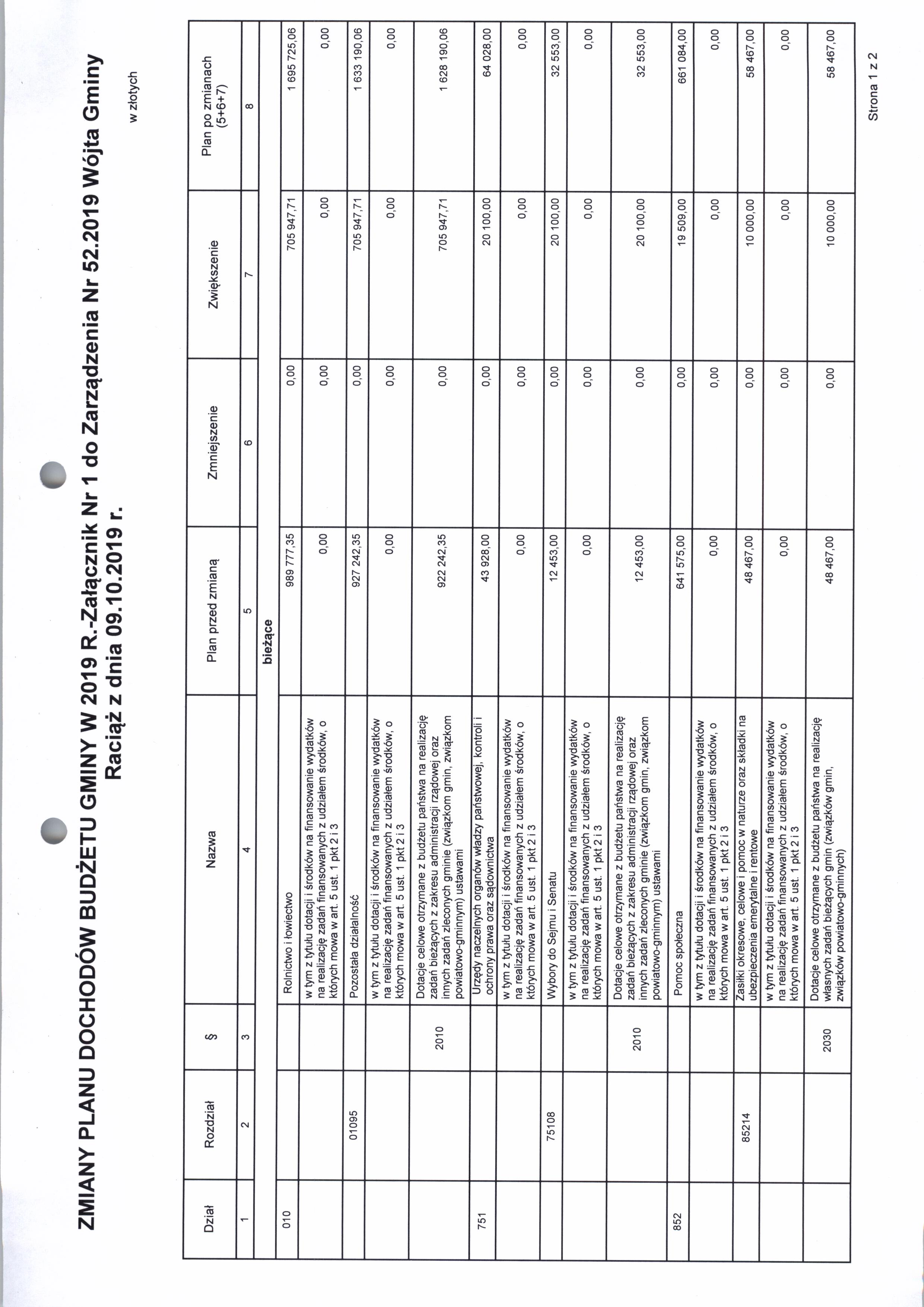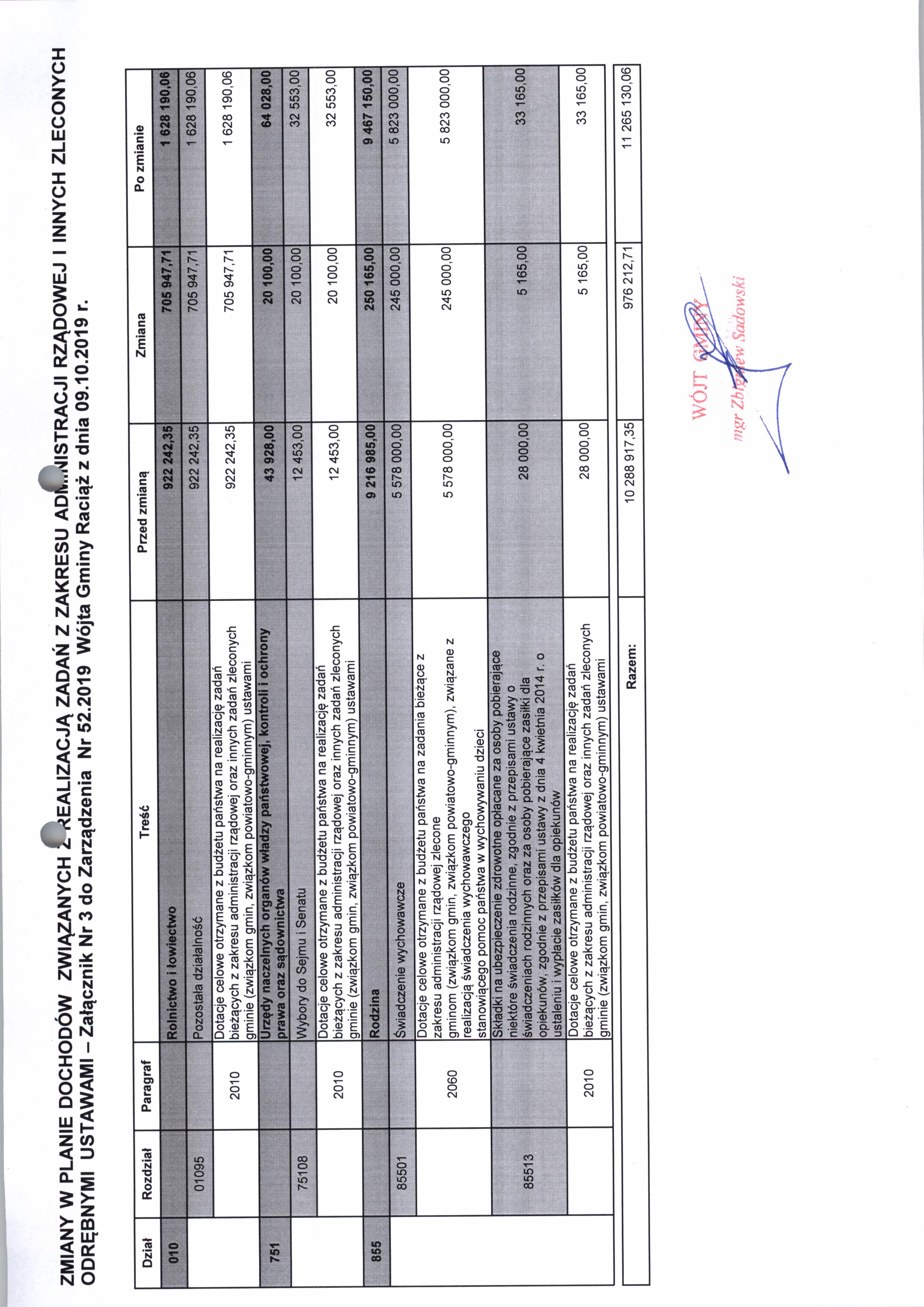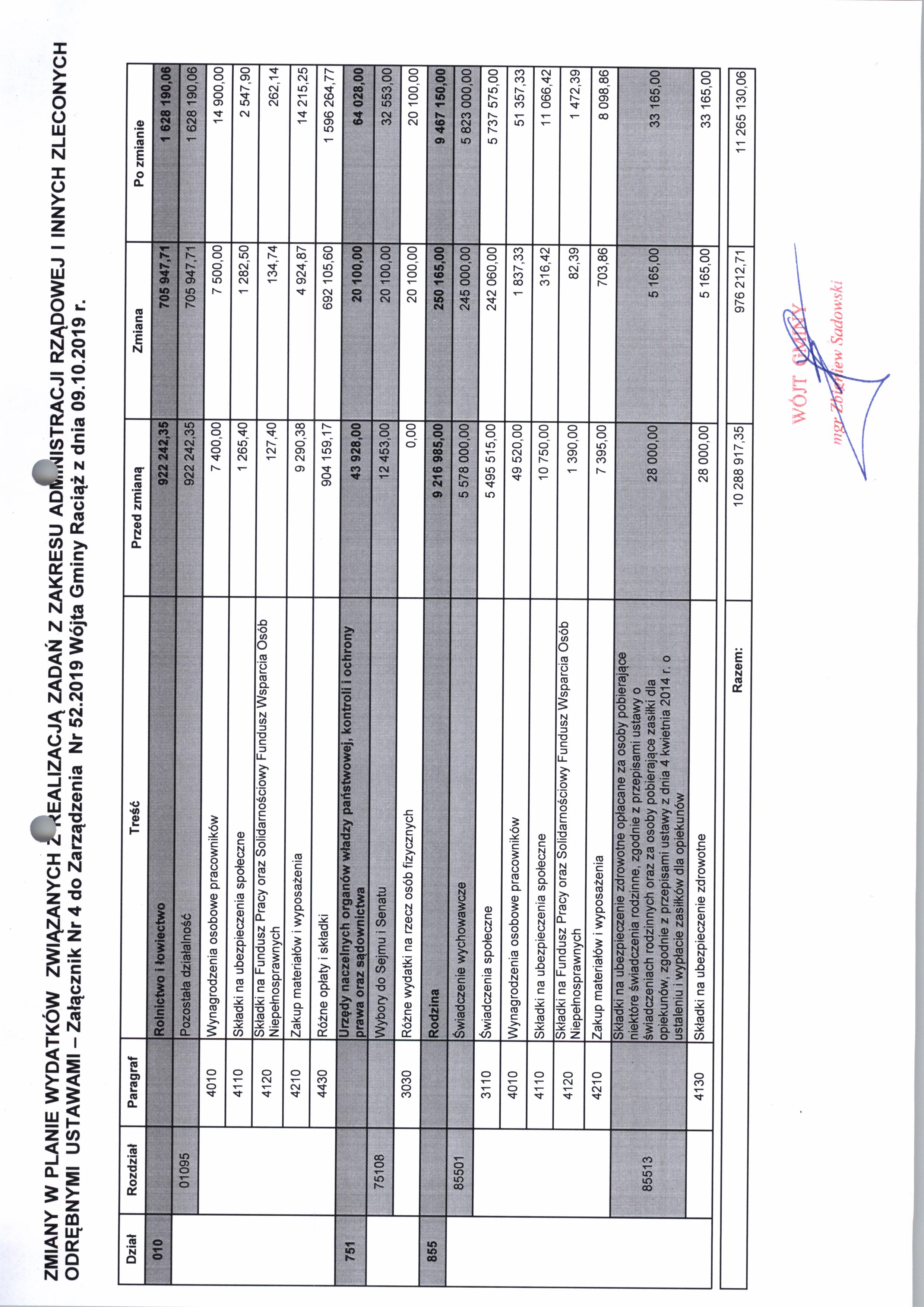 Zarządzenie Nr 52.2019 Wójta Gminy Raciąż z dnia 9 października 2019 roku