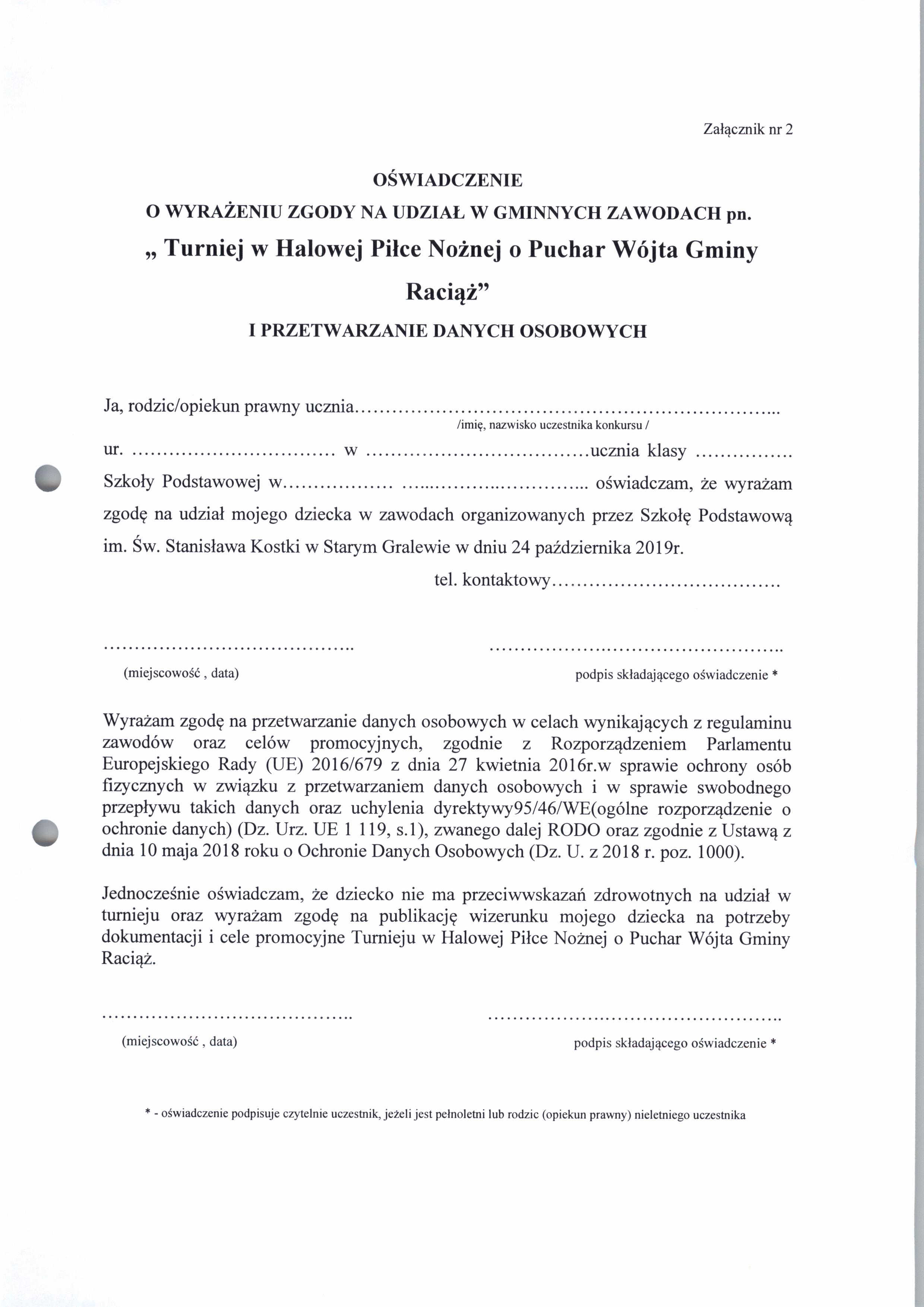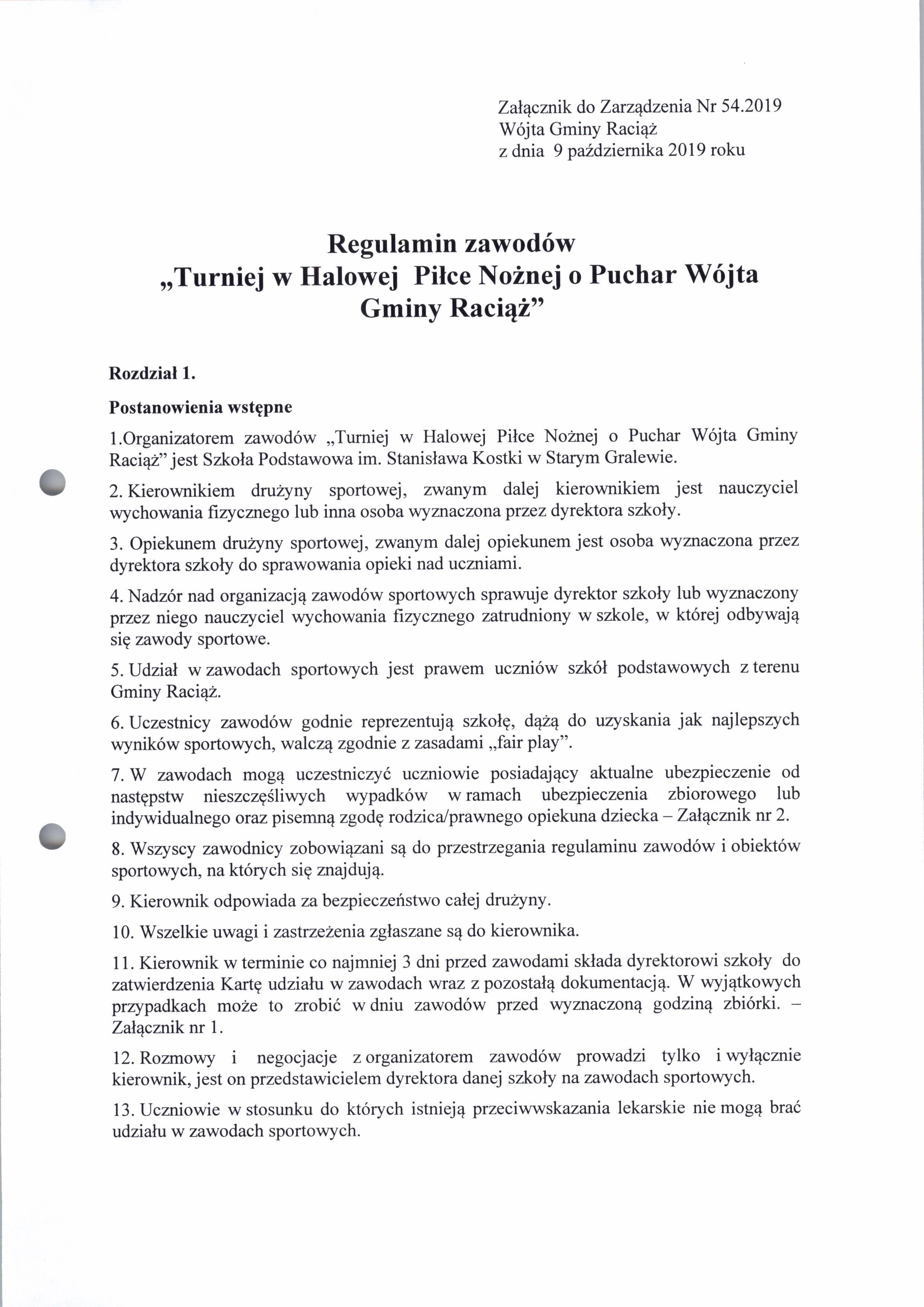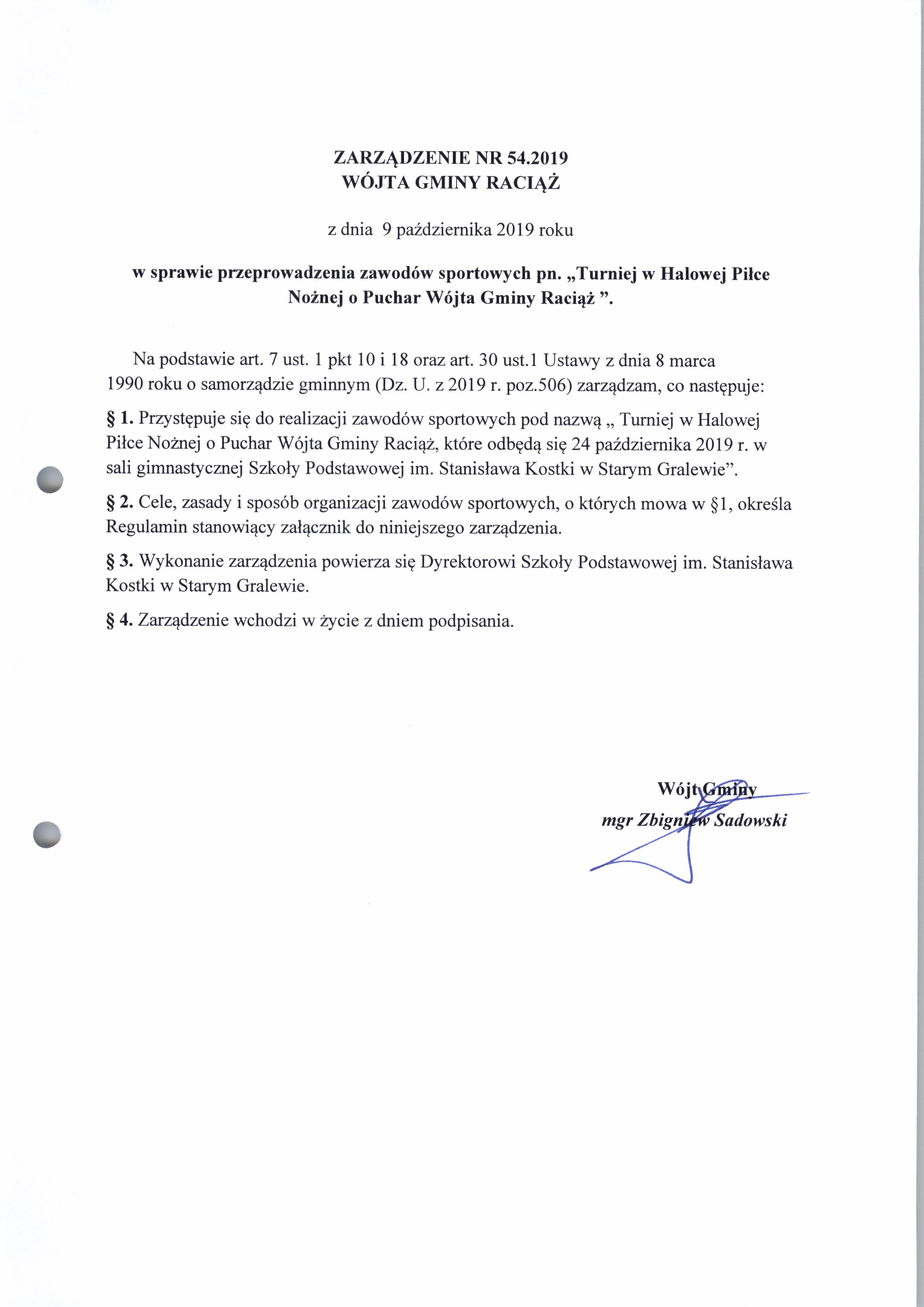 Zarządzenie Nr 54.2019 Wójta Gminy Raciąż z dnia 9 października 2019 roku