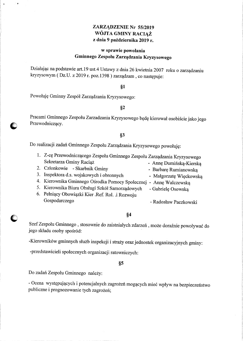 Zarządzenie Nr 55.2019 Wójta Gminy Raciąż z dnia 9 października 2019 roku