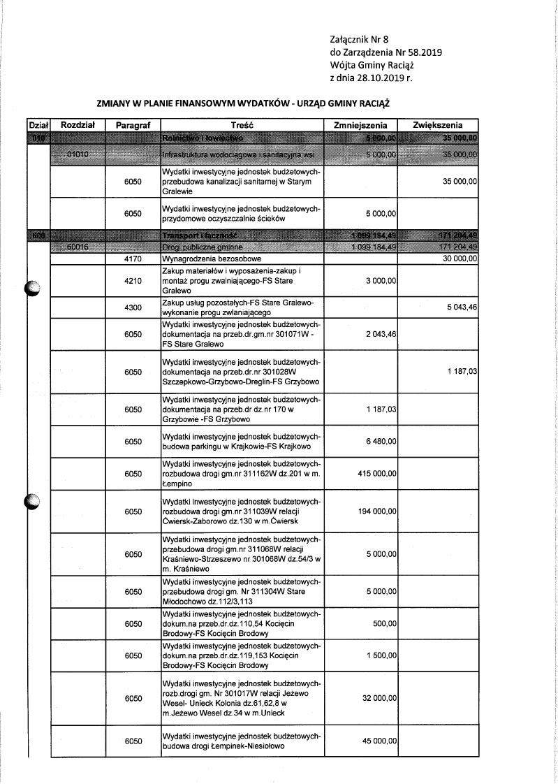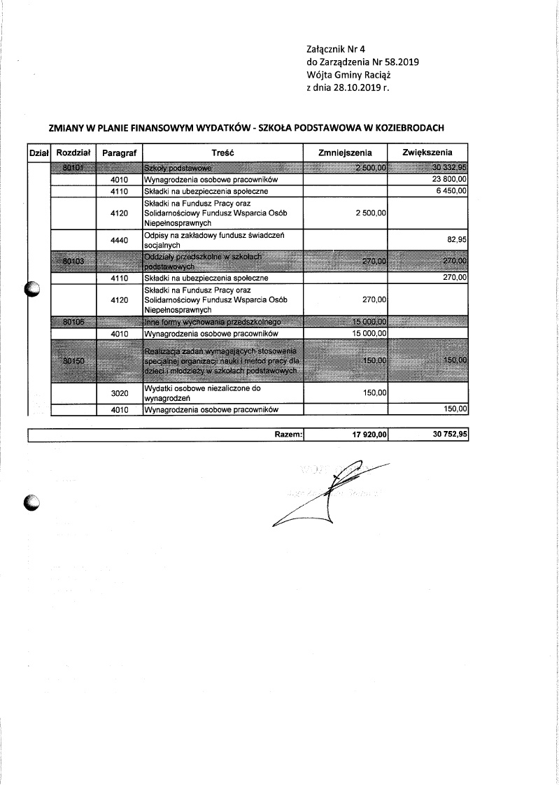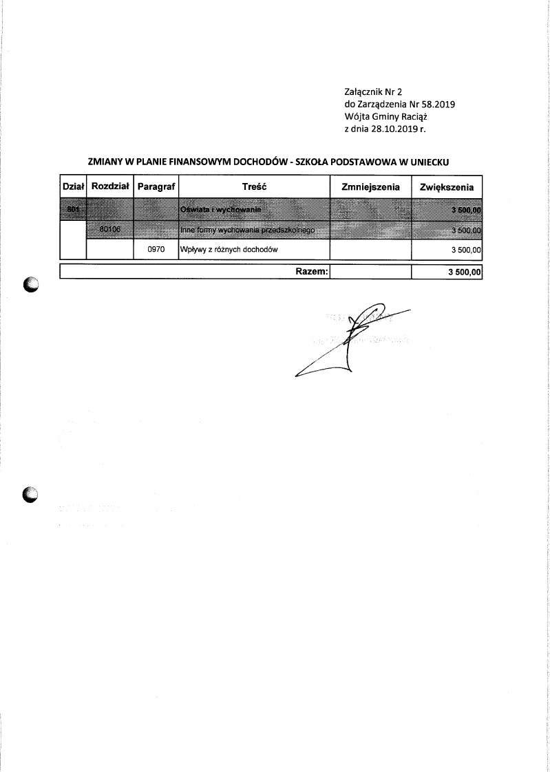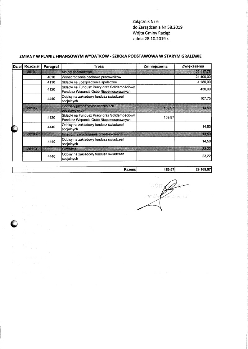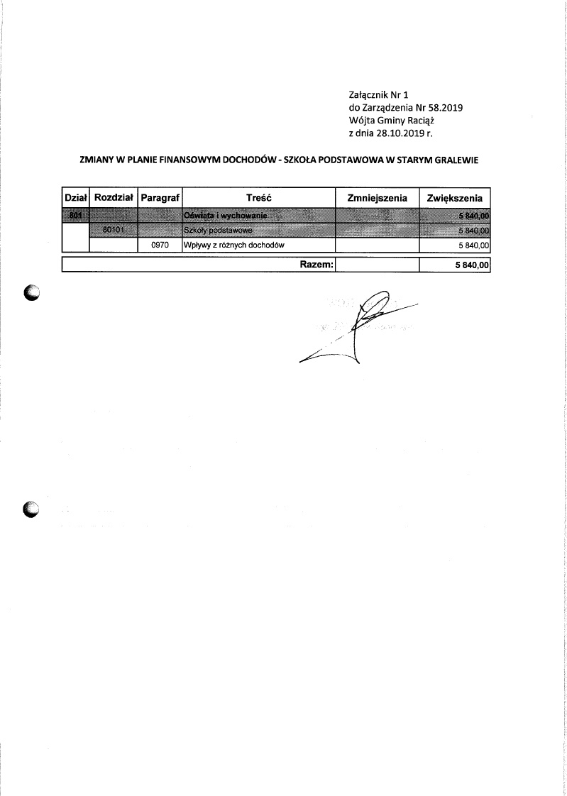 Zarządzenie Nr 58.2019 Wójta Gminy Raciąż z dnia 28 października 2019 roku
