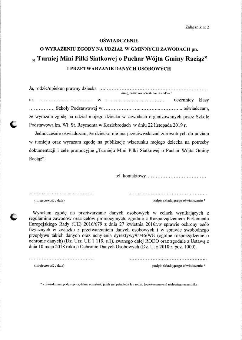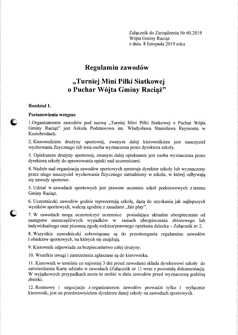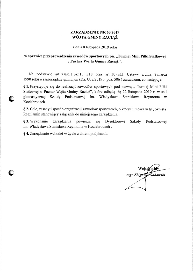 Zarządzenie Nr 60.2019 Wójta Gminy Raciąż z dnia 8 listopada 2019 roku