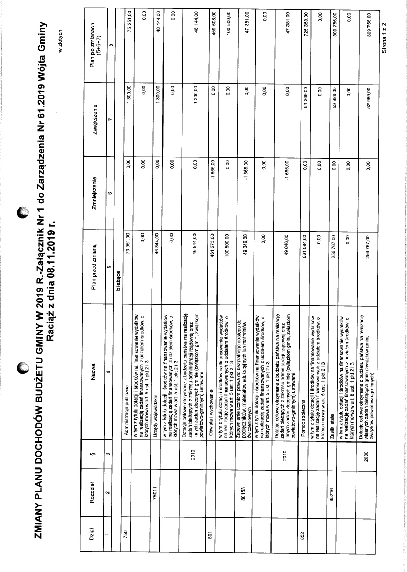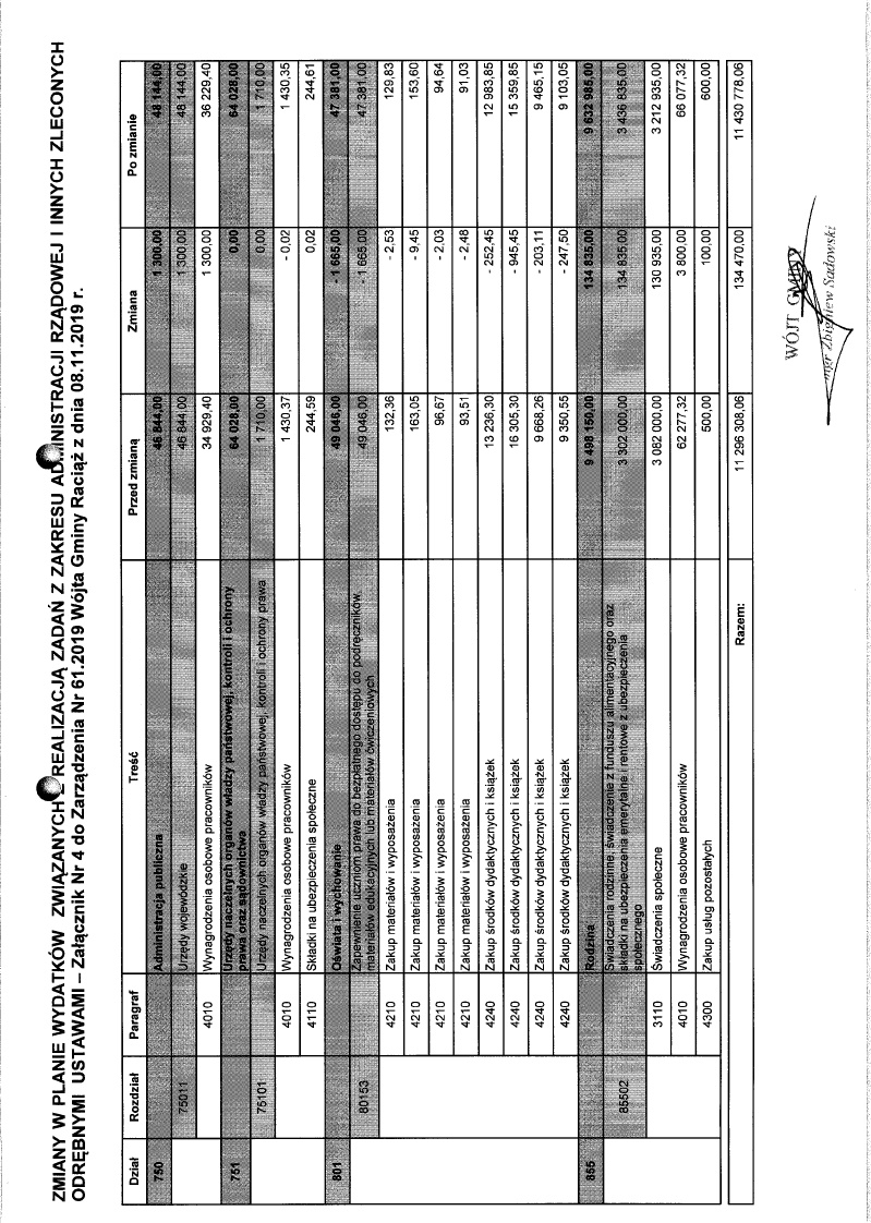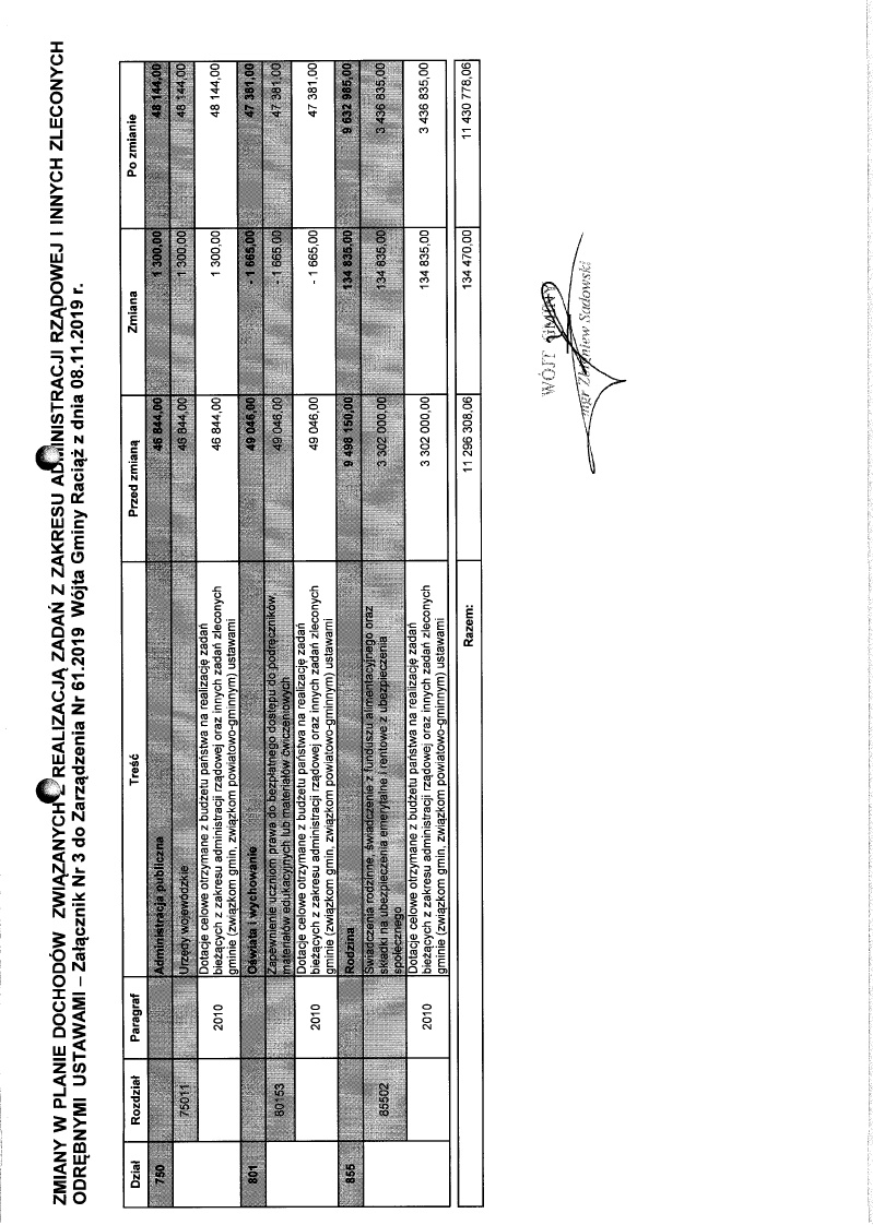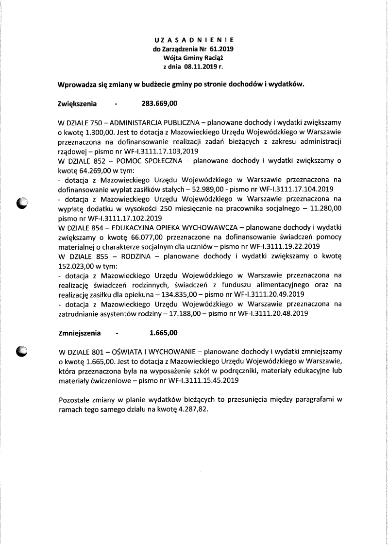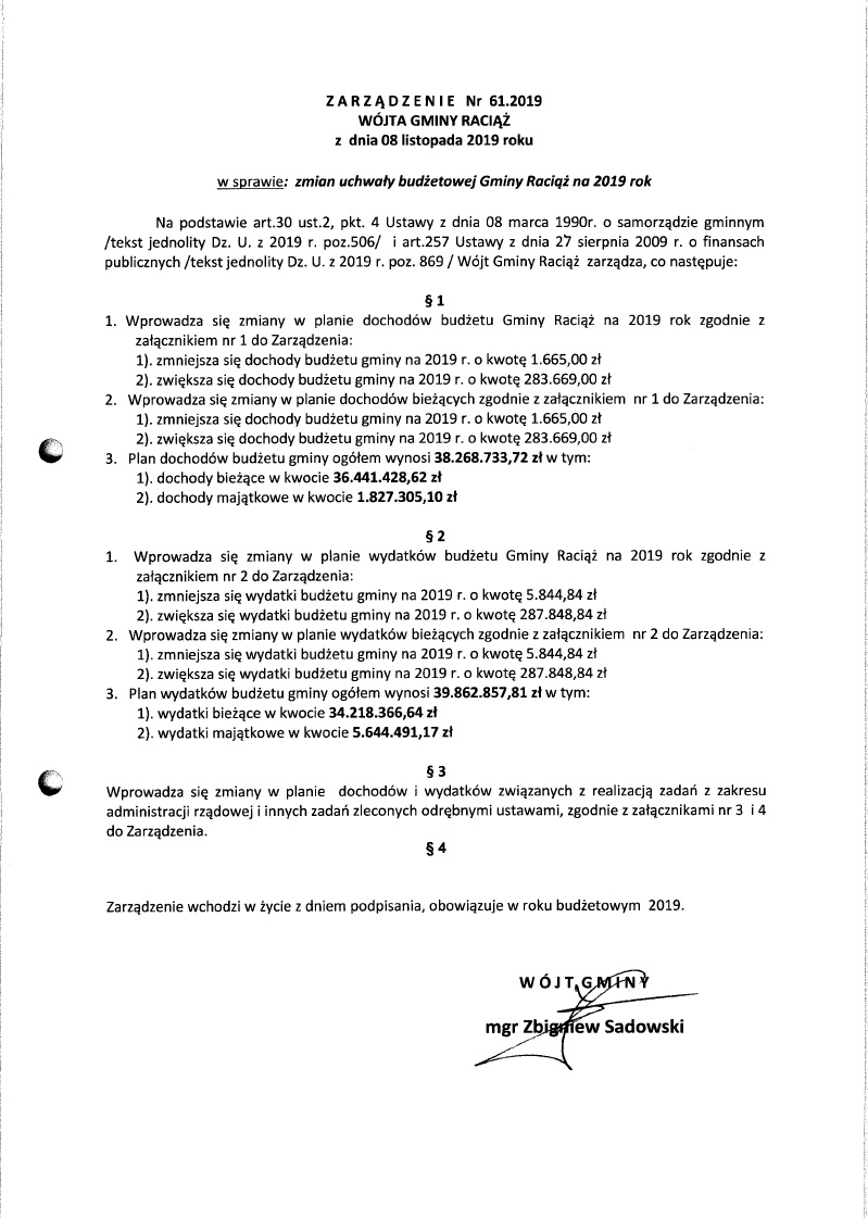 Zarządzenie Nr 61.2019 Wójta Gminy Raciąż z dnia 8 listopada 2019 roku