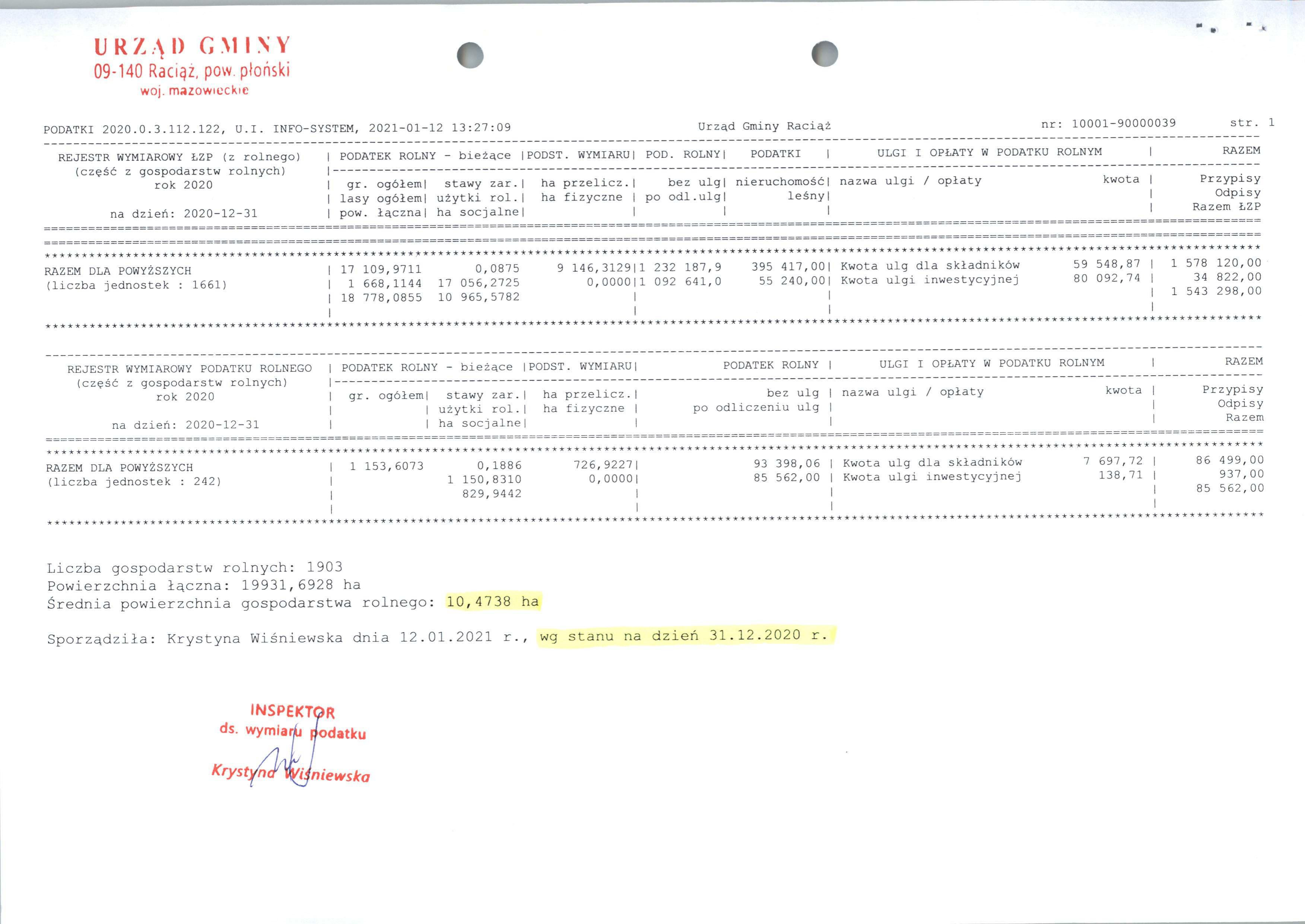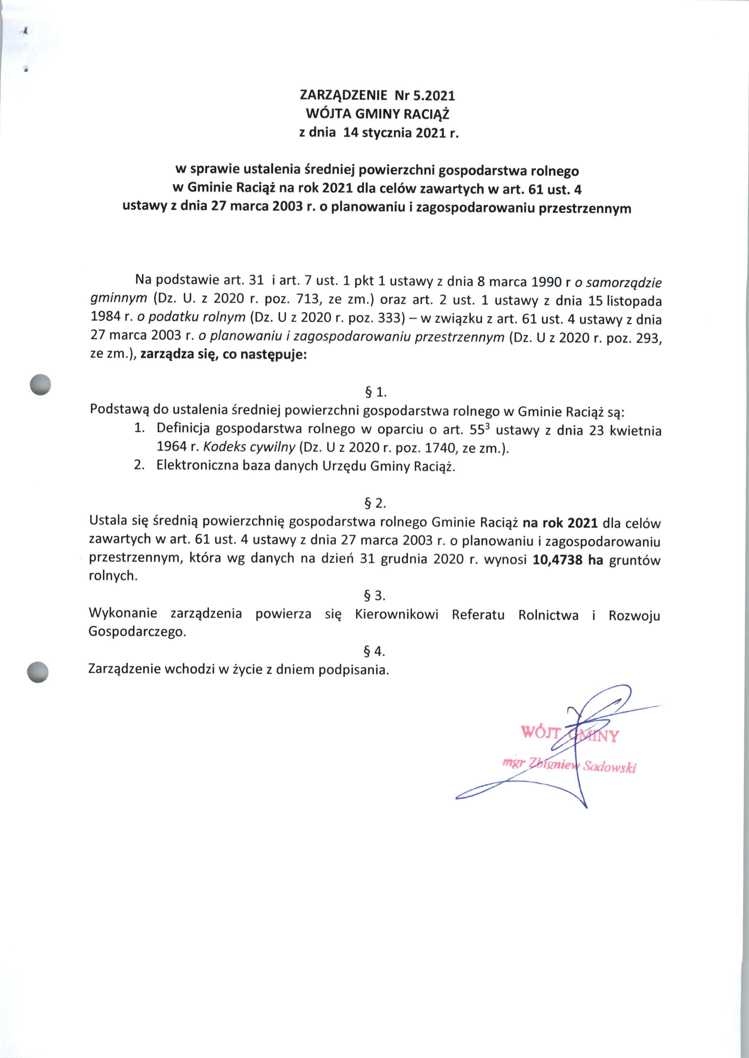 Zarządzenie Nr 5.2021 Wójta Gminy Raciąż z dnia 14 stycznia 2021 roku