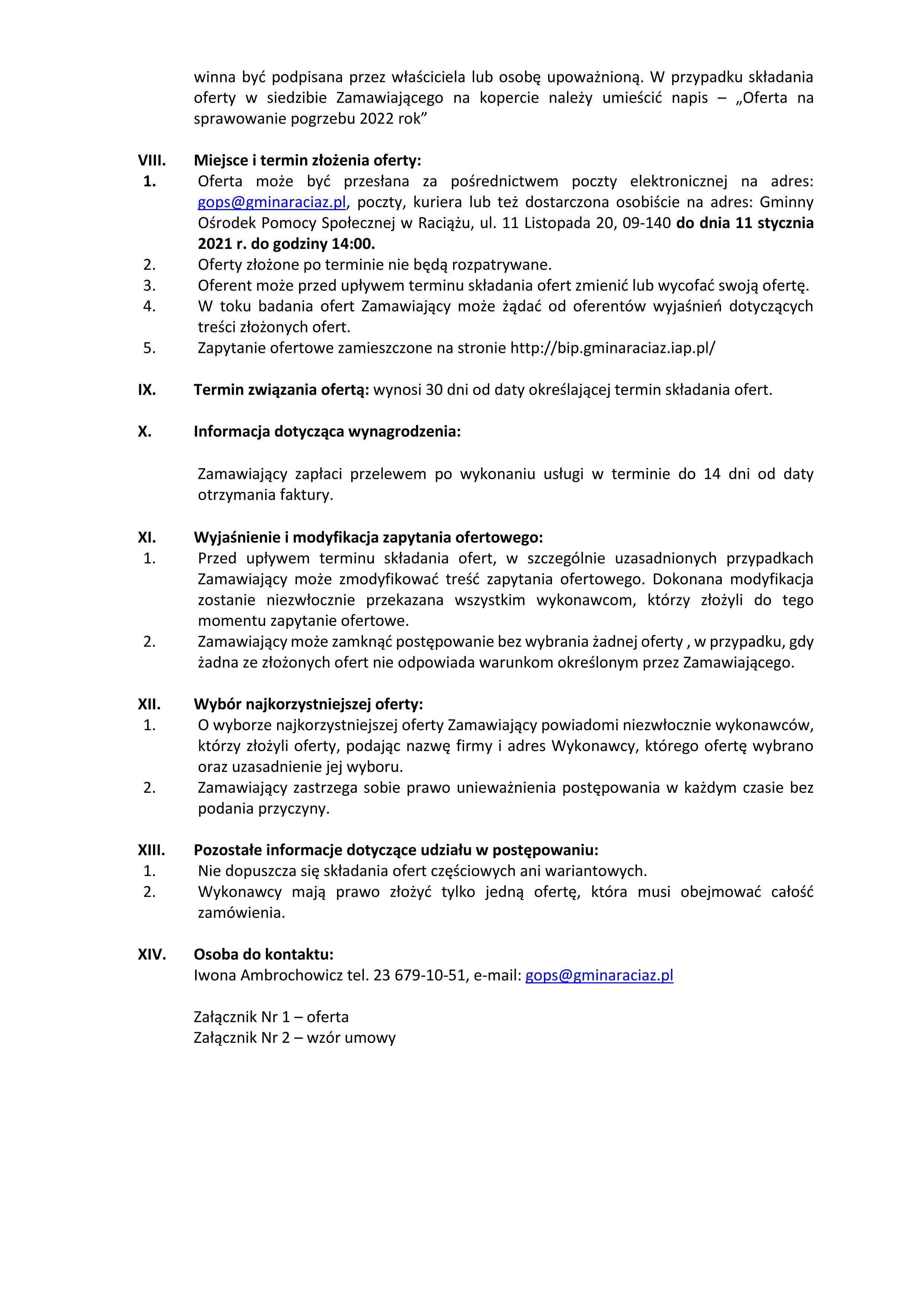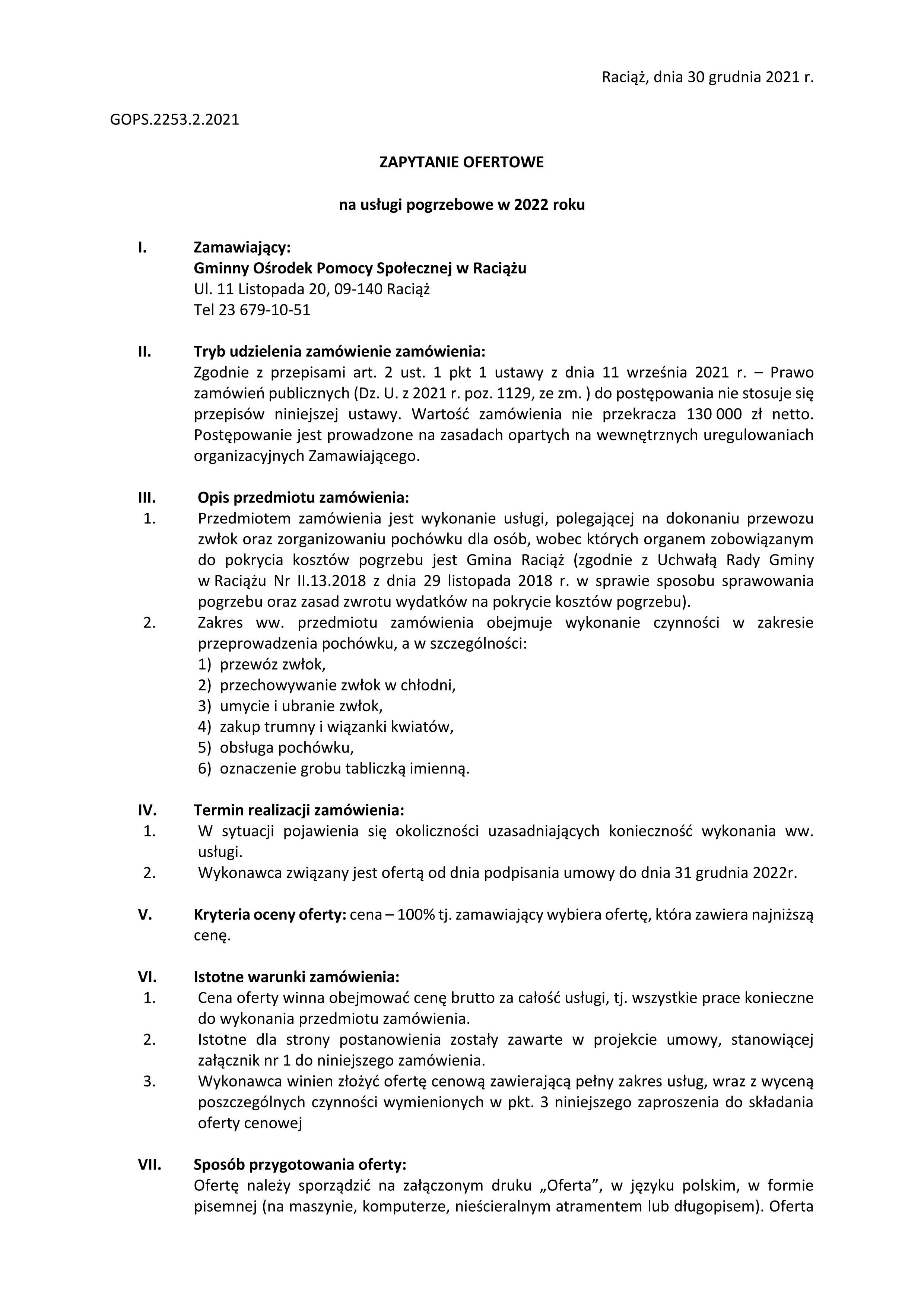 Zapytanie ofertowe na usługi pogrzebowe w 2022