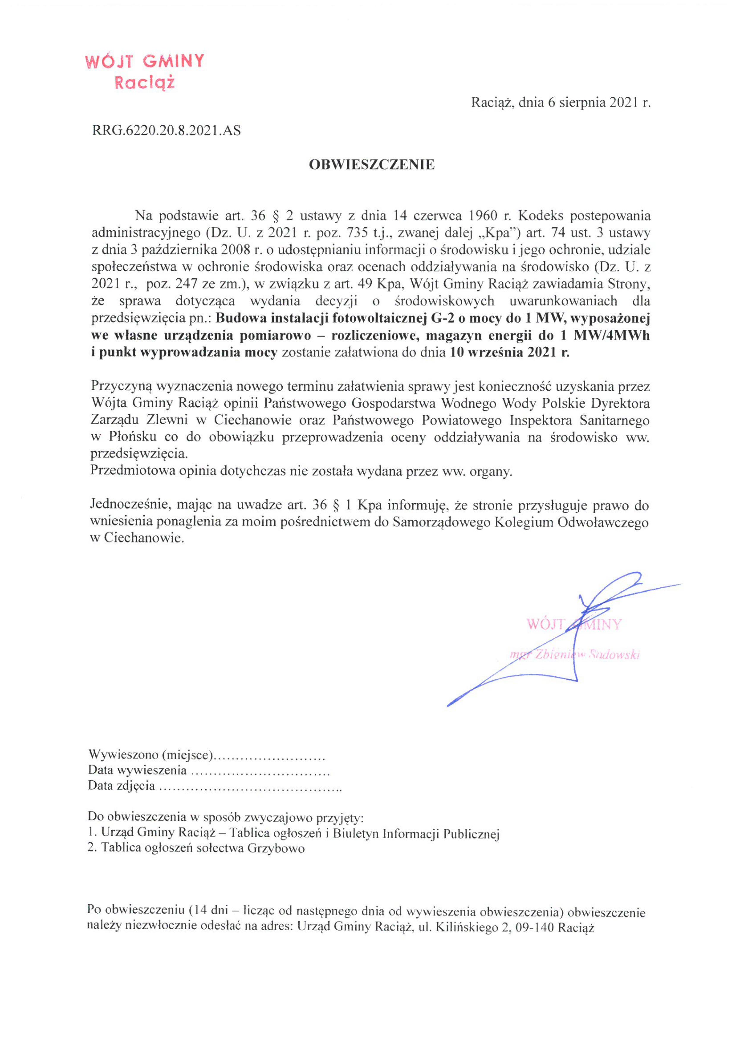 Budowa instalacji fotowoltaicznej G-2 o mocy do 1 MW, wyposażonej we własne urządzenia pomiarowo – rozliczeniowe, magazyn energii do 1 MW/4MWh i punkt wyprowadzania mocy