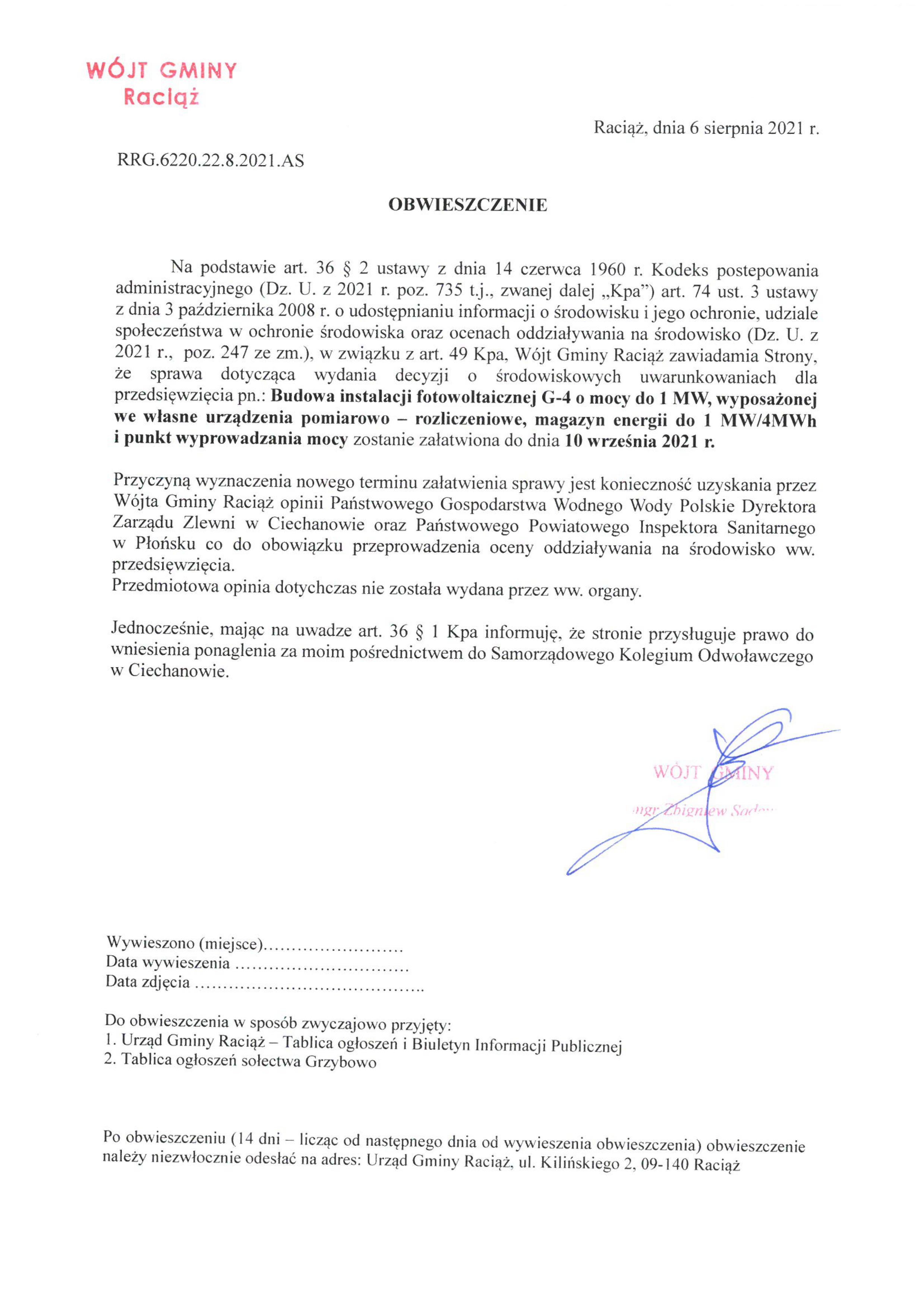 Budowa instalacji fotowoltaicznej G-4 o mocy do 1 MW, wyposażonej we własne urządzenia pomiarowo – rozliczeniowe, magazyn energii do 1 MW/4MWh i punkt wyprowadzania mocy