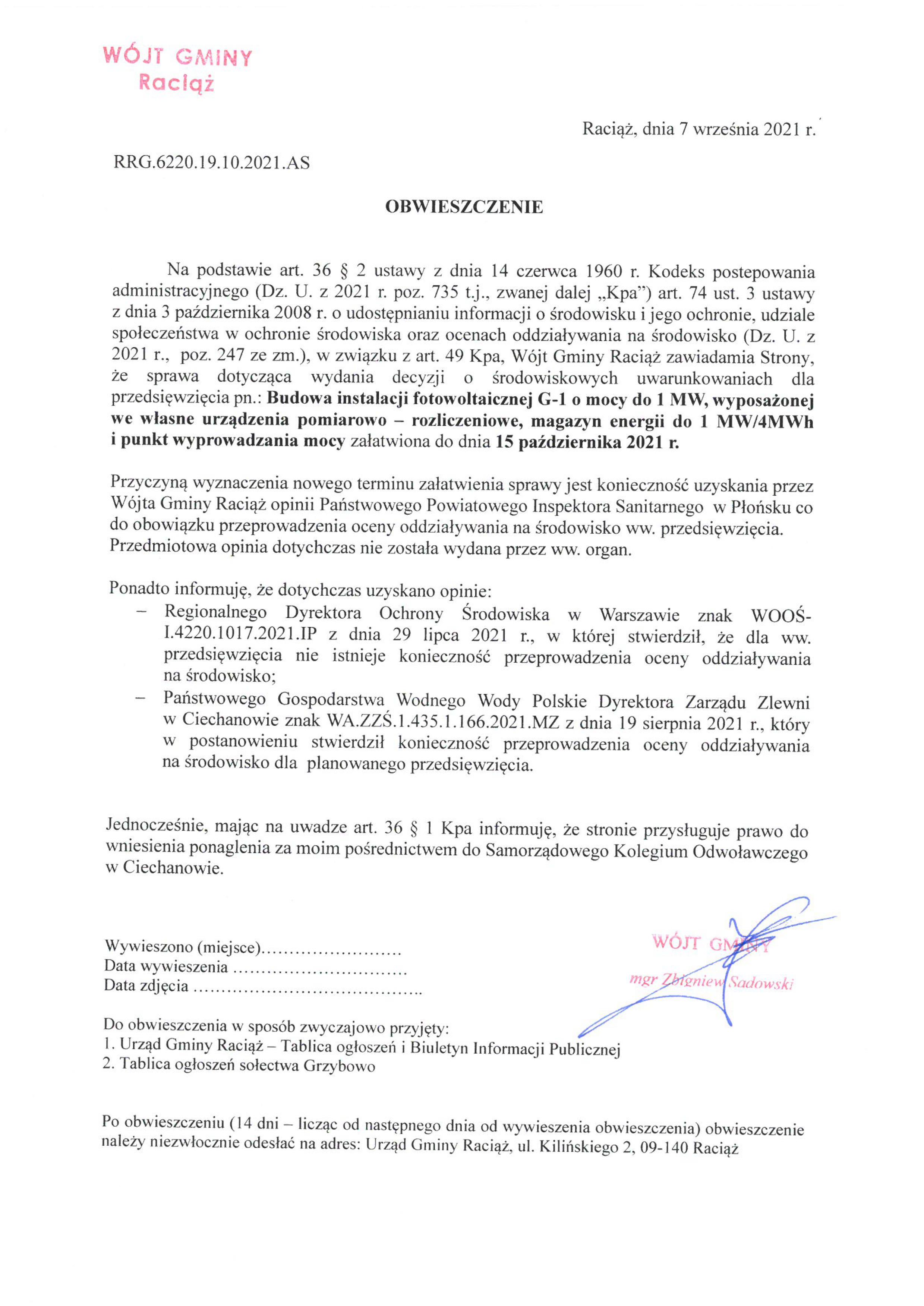 Budowa instalacji fotowoltaicznej G-1 o mocy do 1 MW, wyposażonej we własne urządzenia pomiarowo – rozliczeniowe, magazyn energii do 1 MW/4MWh i punkt wyprowadzania mocy