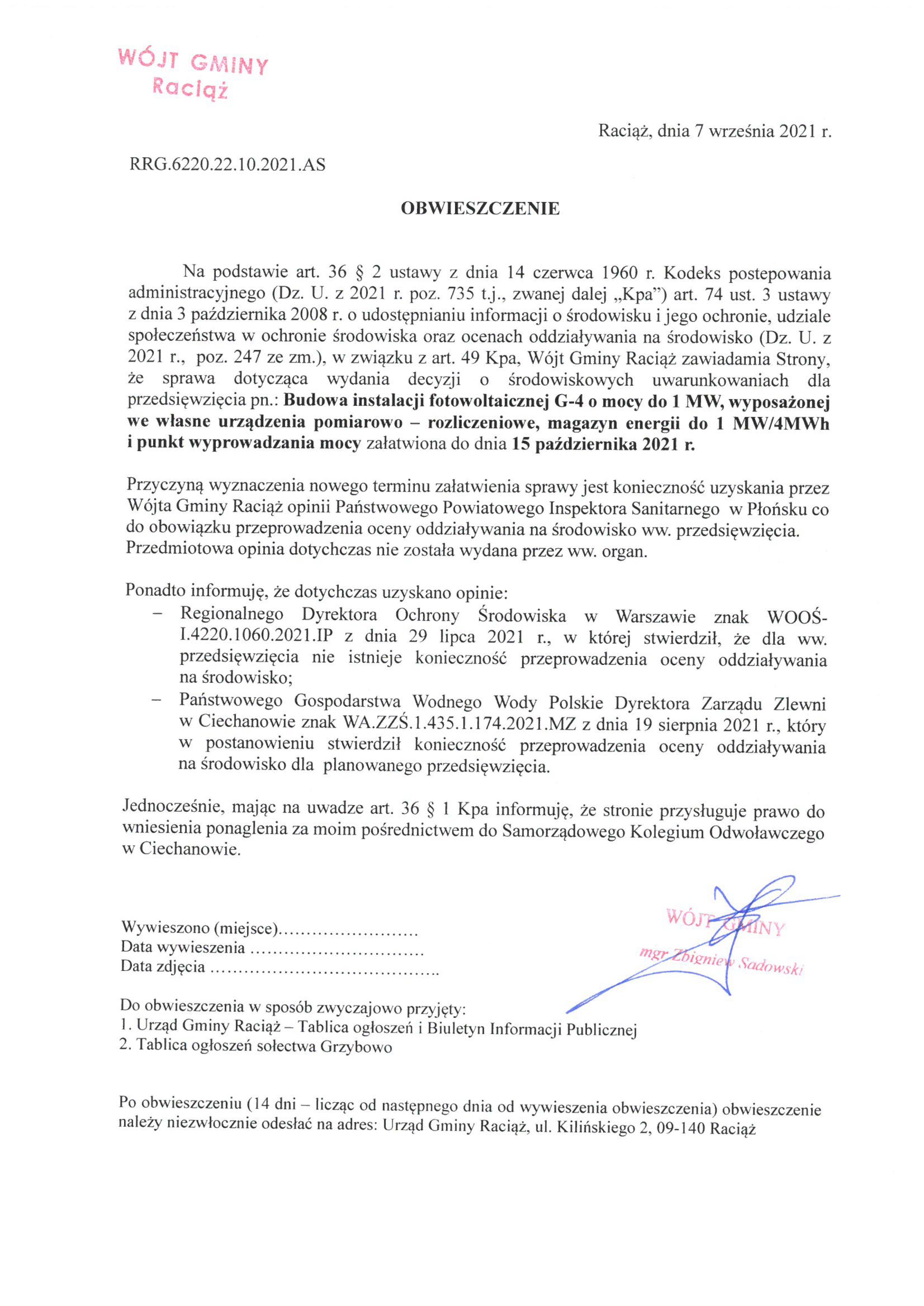Budowa instalacji fotowoltaicznej G-4 o mocy do 1 MW, wyposażonej we własne urządzenia pomiarowo – rozliczeniowe, magazyn energii do 1 MW/4MWh i punkt wyprowadzania mocy