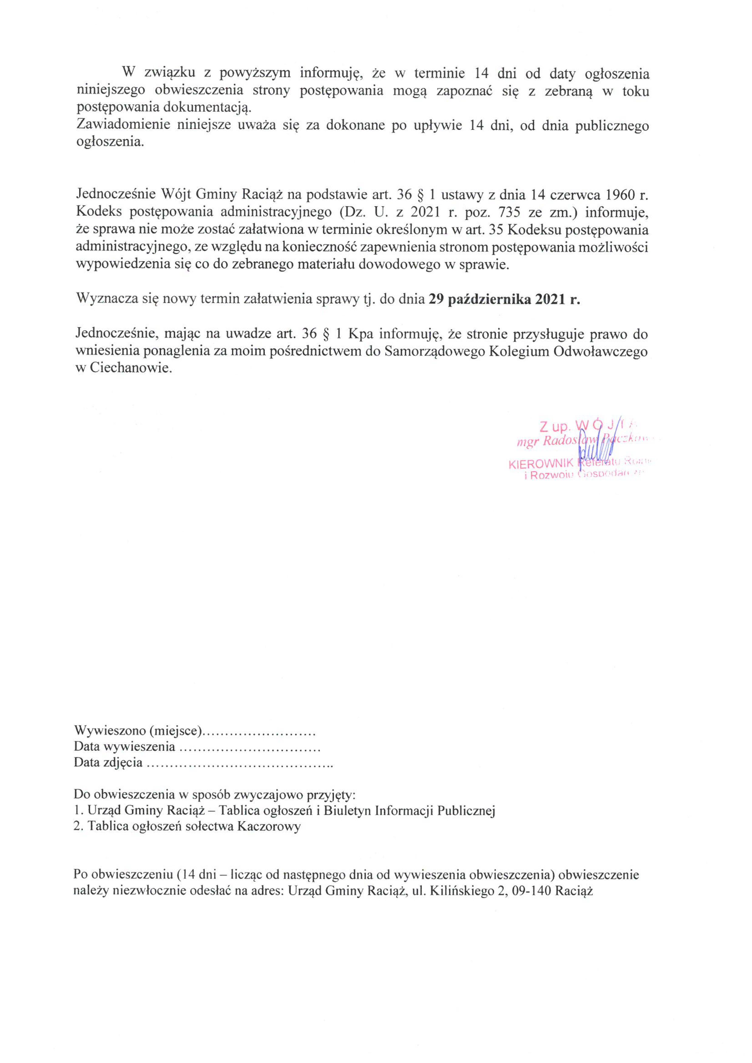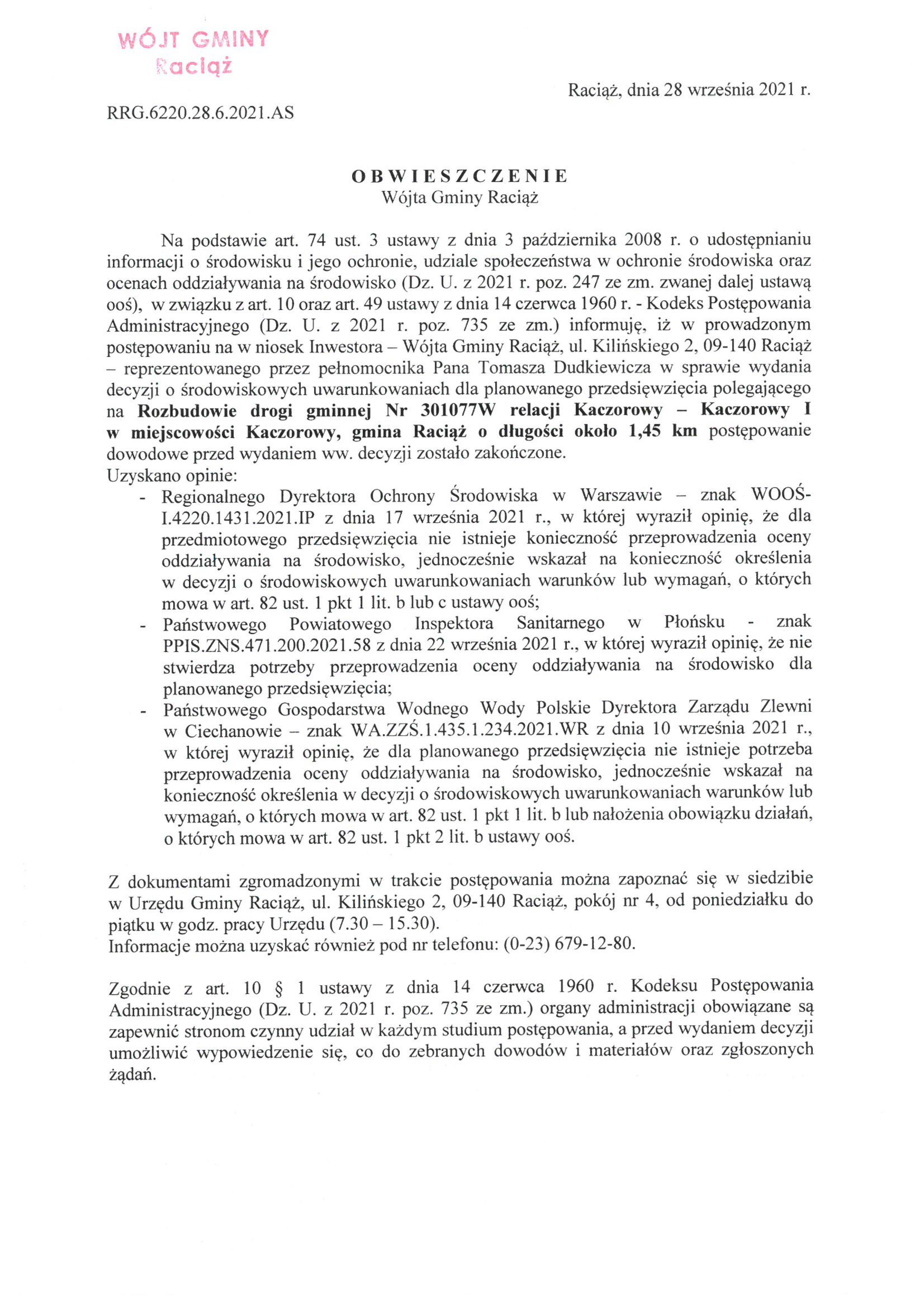 Rozbudowa drogi gminnej Nr 301077W relacji Kaczorowy – Kaczorowy I w miejscowości Kaczorowy, gmina Raciąż o długości około 1,45 km