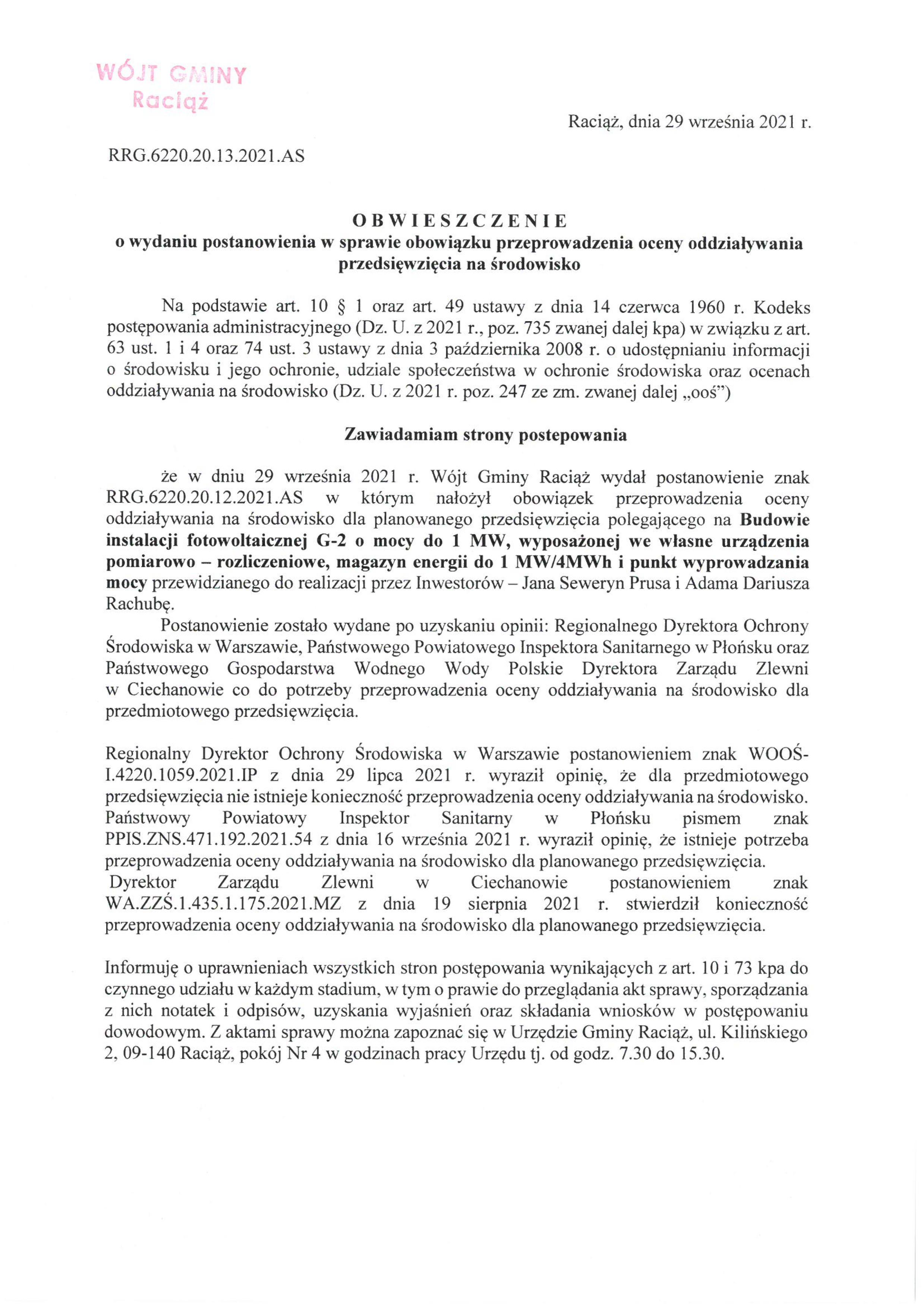 Budowie instalacji fotowoltaicznej G-2 o mocy do 1 MW, wyposażonej we własne urządzenia pomiarowo – rozliczeniowe, magazyn energii do 1 MW/4MWh i punkt wyprowadzania mocy