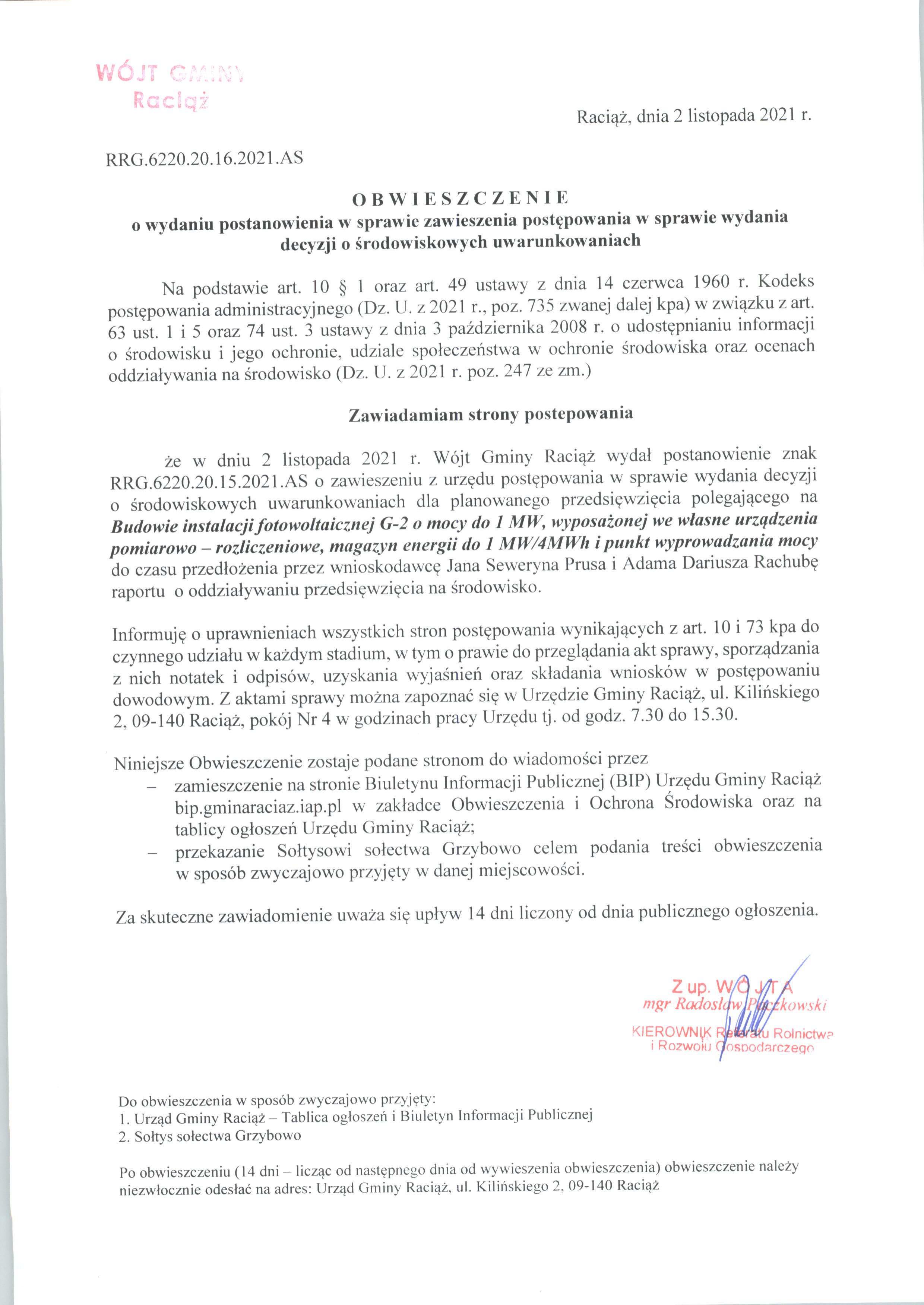 Budowa instalacji fotowoltaicznej G-2 o mocy do 1 MW, wyposażonej we własne urządzenia pomiarowo – rozliczeniowe, magazyn energii do 1 MW/4MWh i punkt wyprowadzania mocy