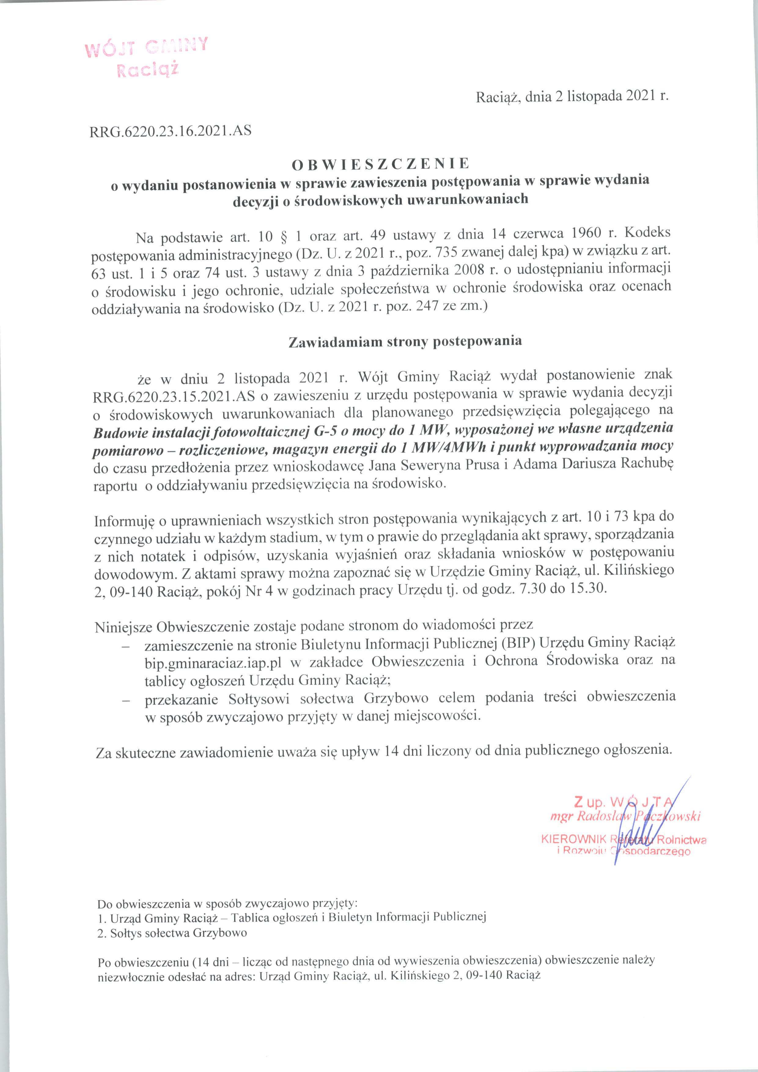 Budowa instalacji fotowoltaicznej G-5 o mocy do 1 MW, wyposażonej we własne urządzenia pomiarowo – rozliczeniowe, magazyn energii do 1 MW/4MWh i punkt wyprowadzania mocy