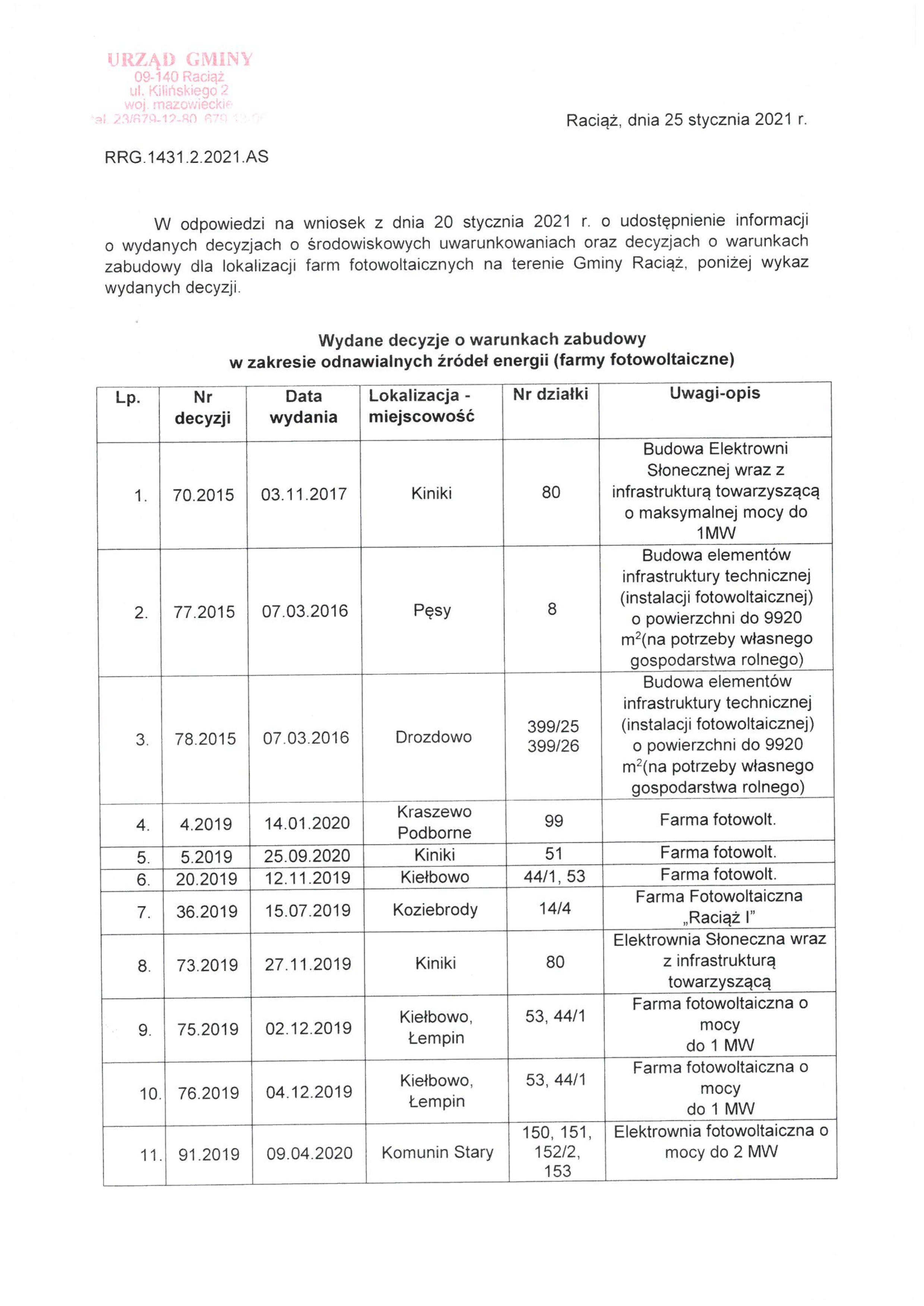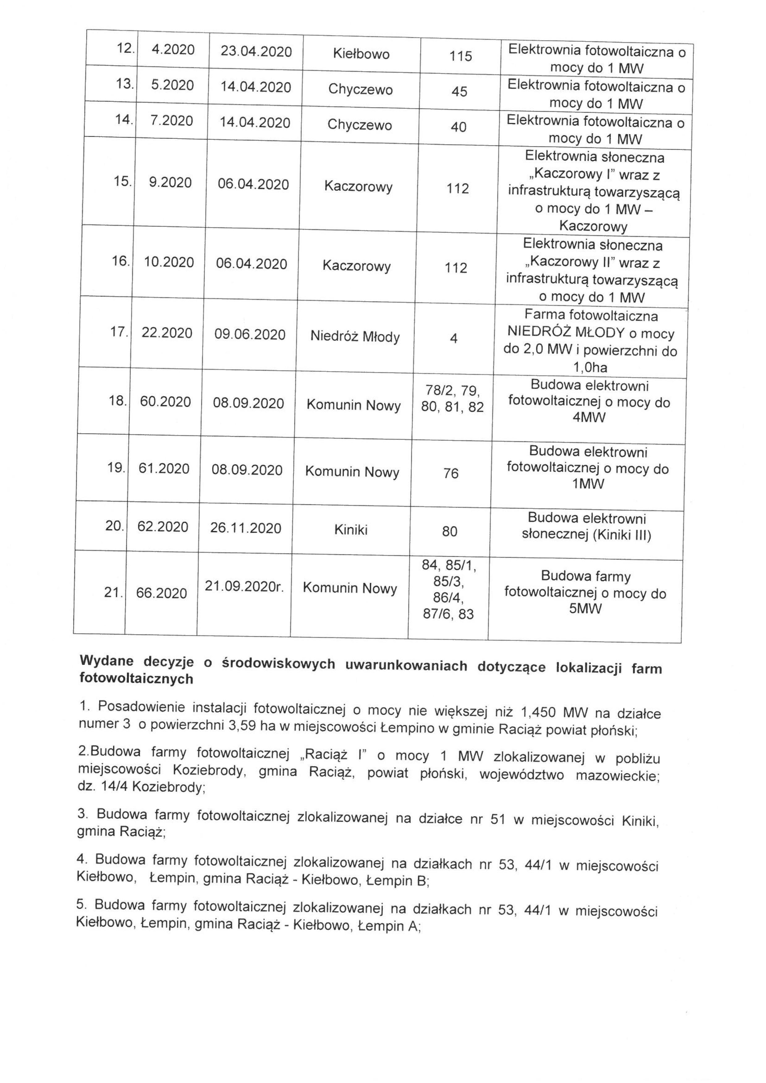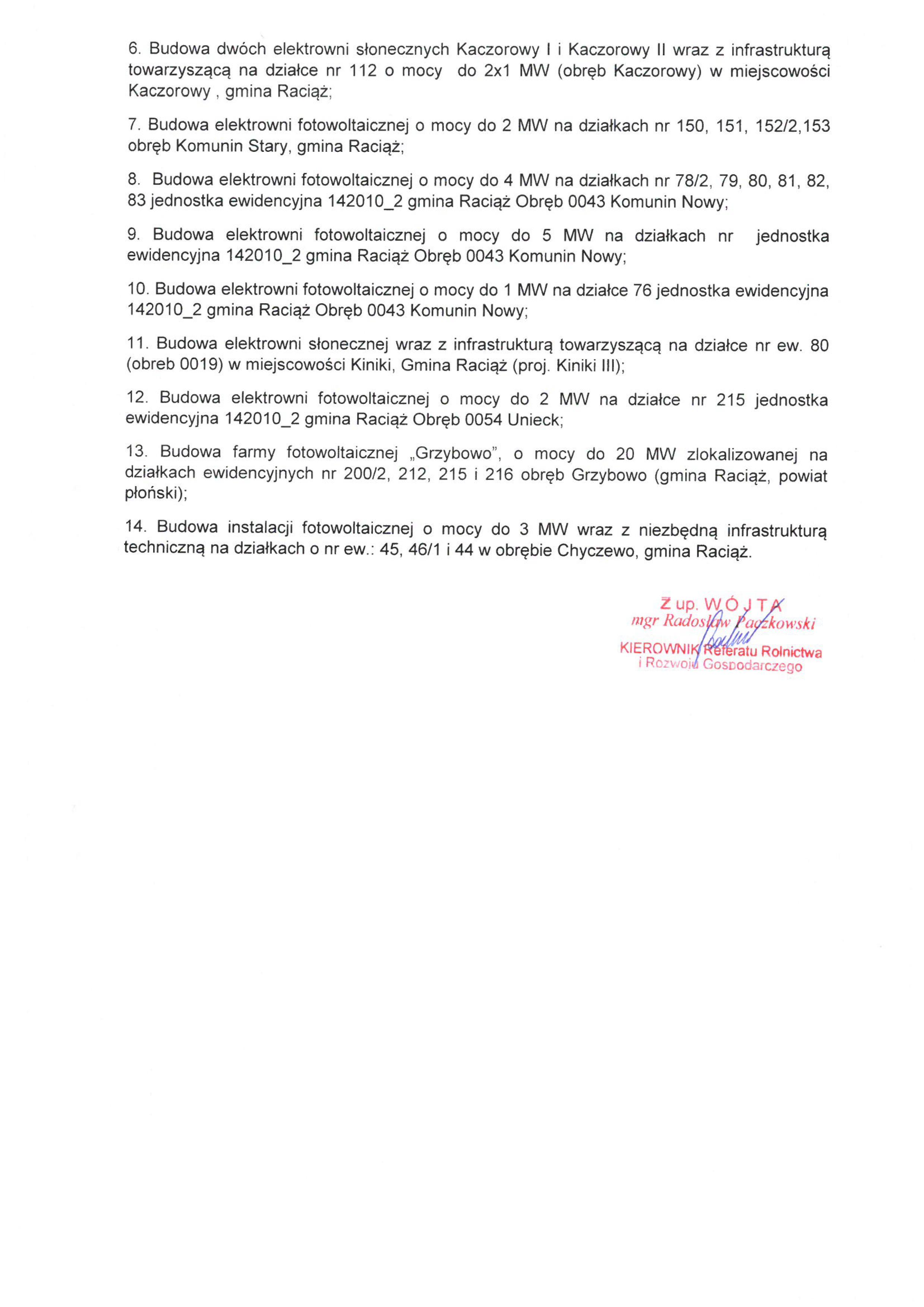 Budowa zespołu paneli fotowoltaicznych “Raciąż” wraz z niezbędną infrastrukturą i magazynem energii o łącznej mocy nieprzekraczającej 2 MW,