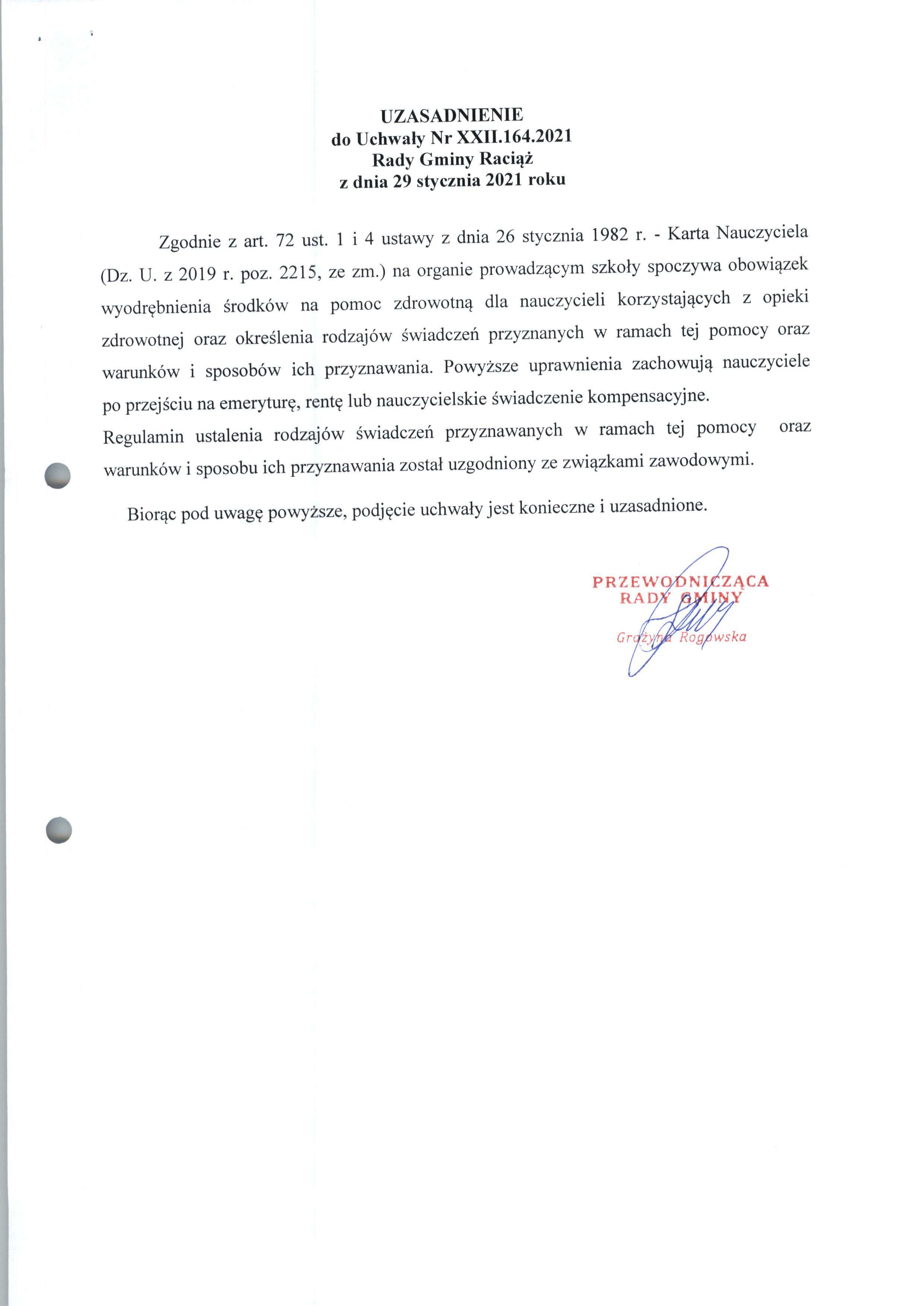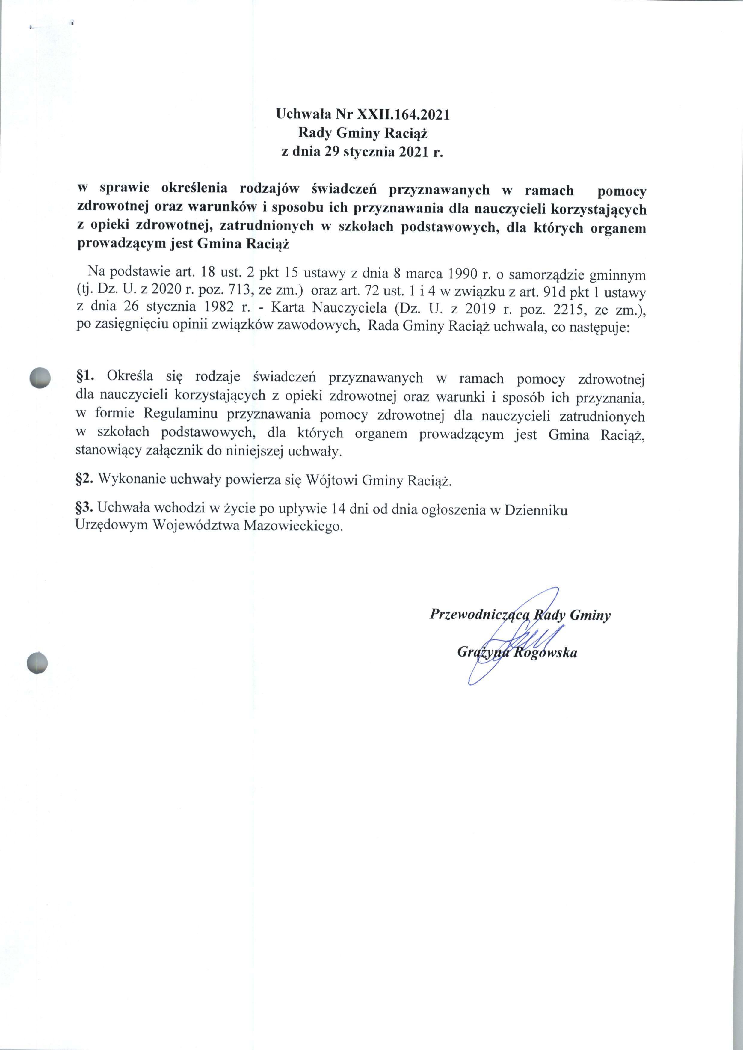 UCHWAŁA Nr XXII.164.2021 RADY GMINY RACIĄŻ z dnia 29 stycznia 2021 roku