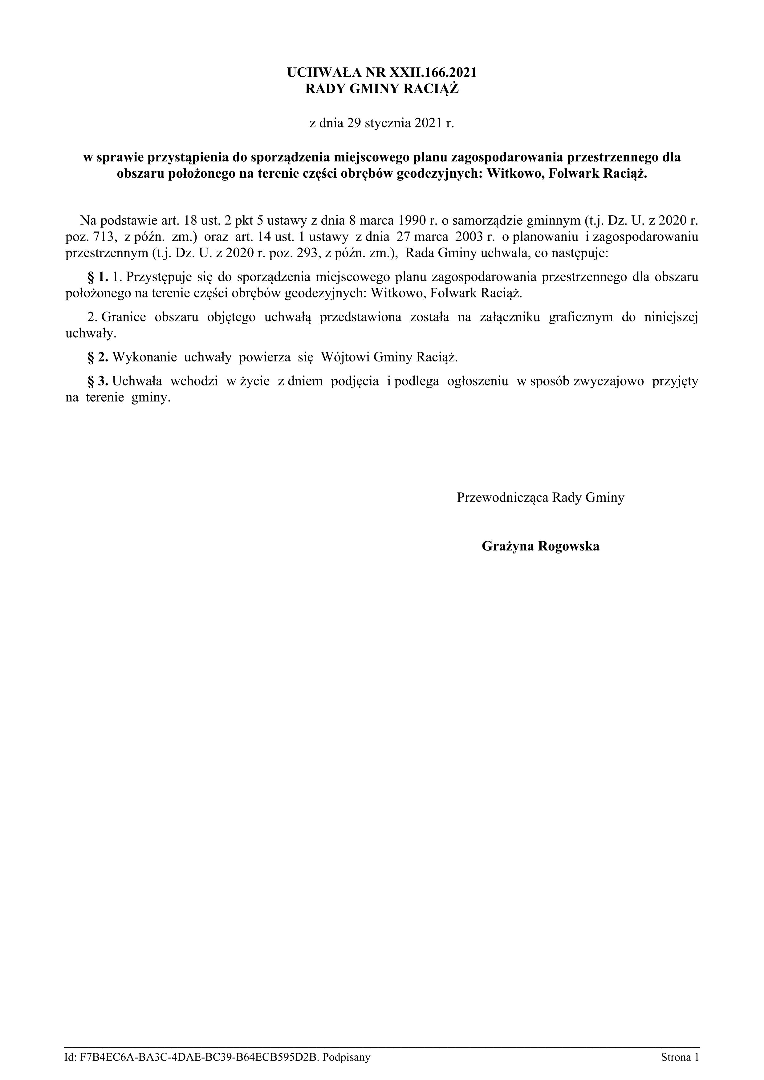 UCHWAŁA Nr XXII.166.2021 RADY GMINY RACIĄŻ z dnia 29 stycznia 2021 roku