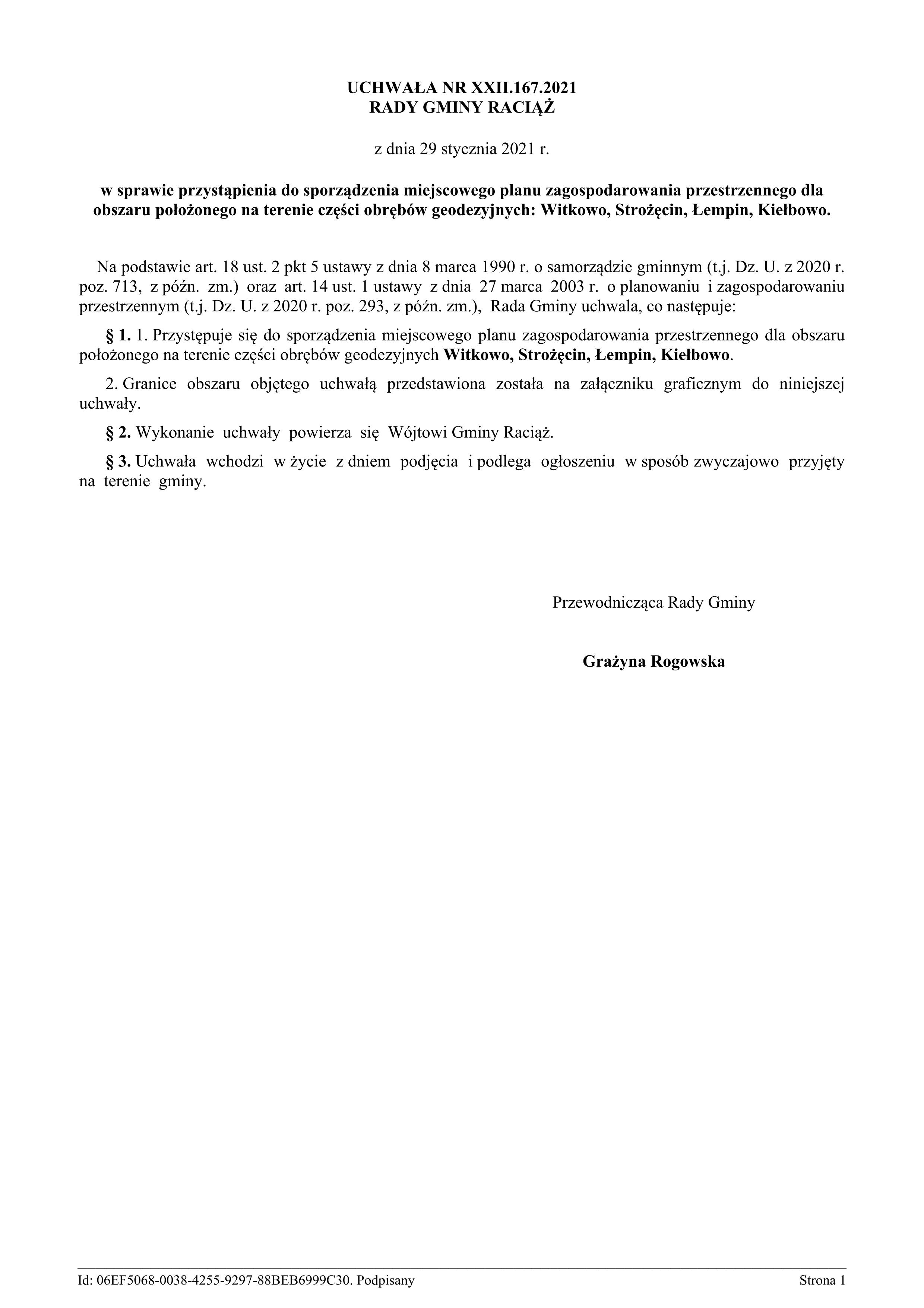 UCHWAŁA Nr XXII.167.2021 RADY GMINY RACIĄŻ z dnia 29 stycznia 2021 roku