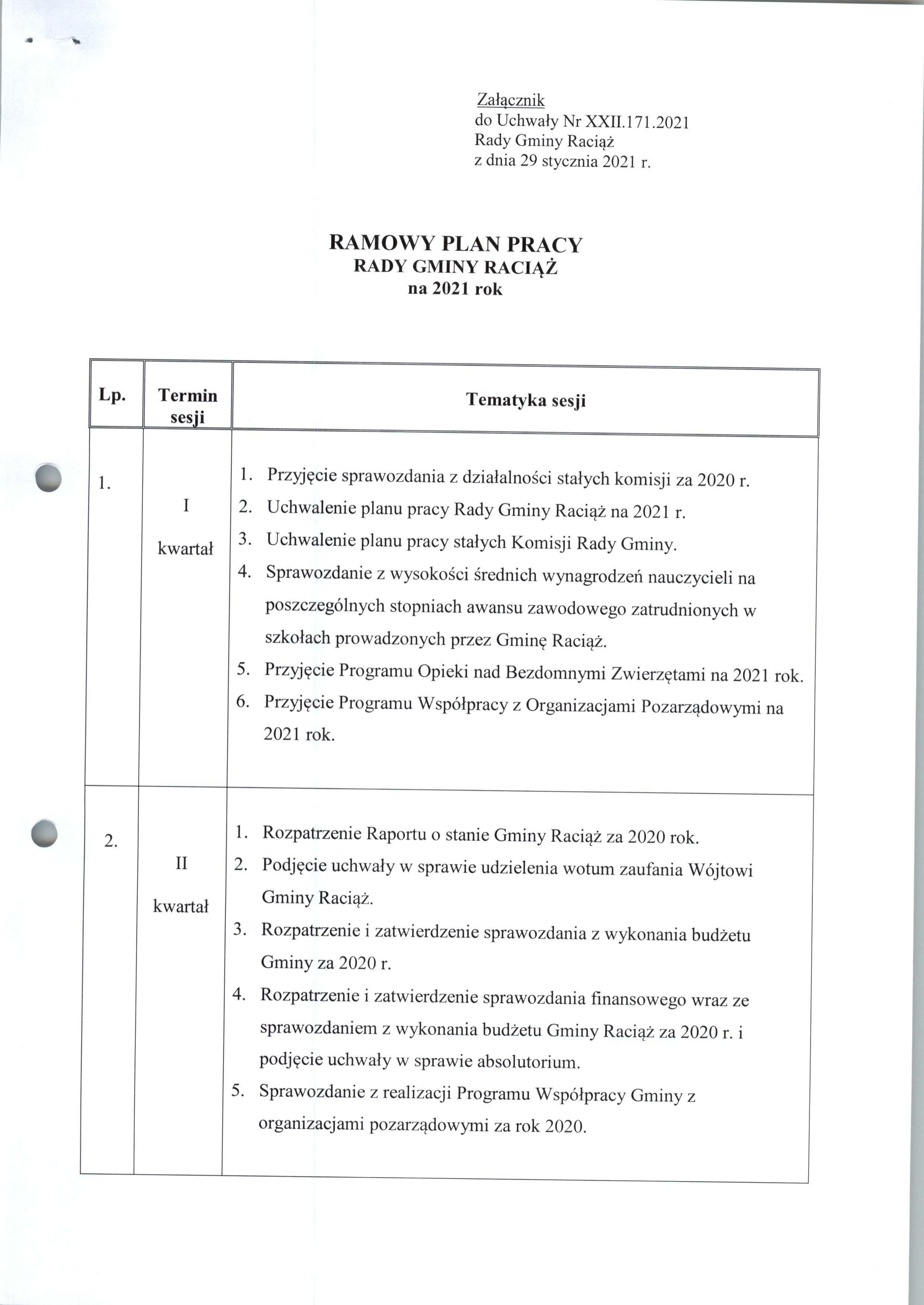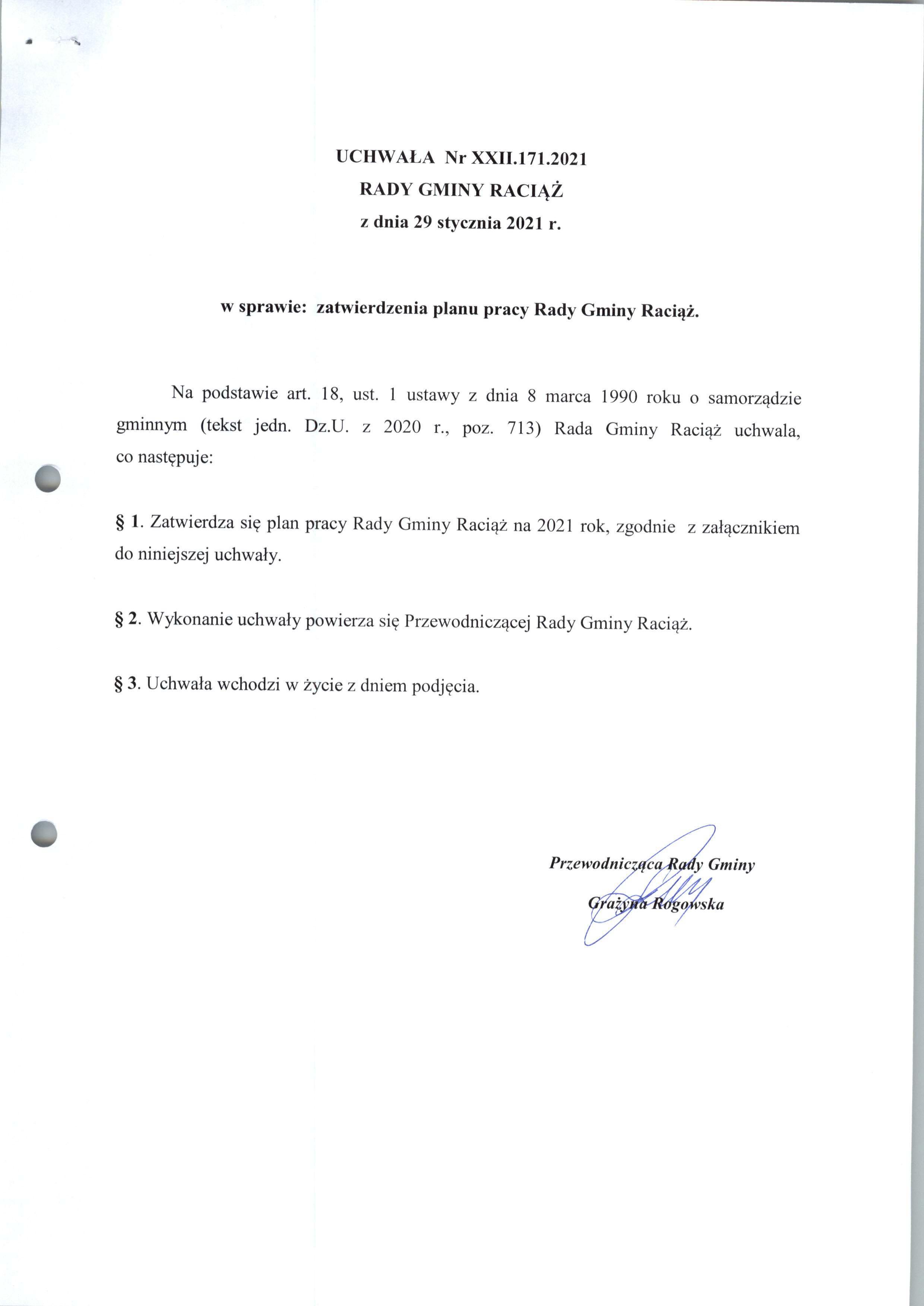 UCHWAŁA Nr XXII.171.2021 RADY GMINY RACIĄŻ z dnia 29 stycznia 2021 roku