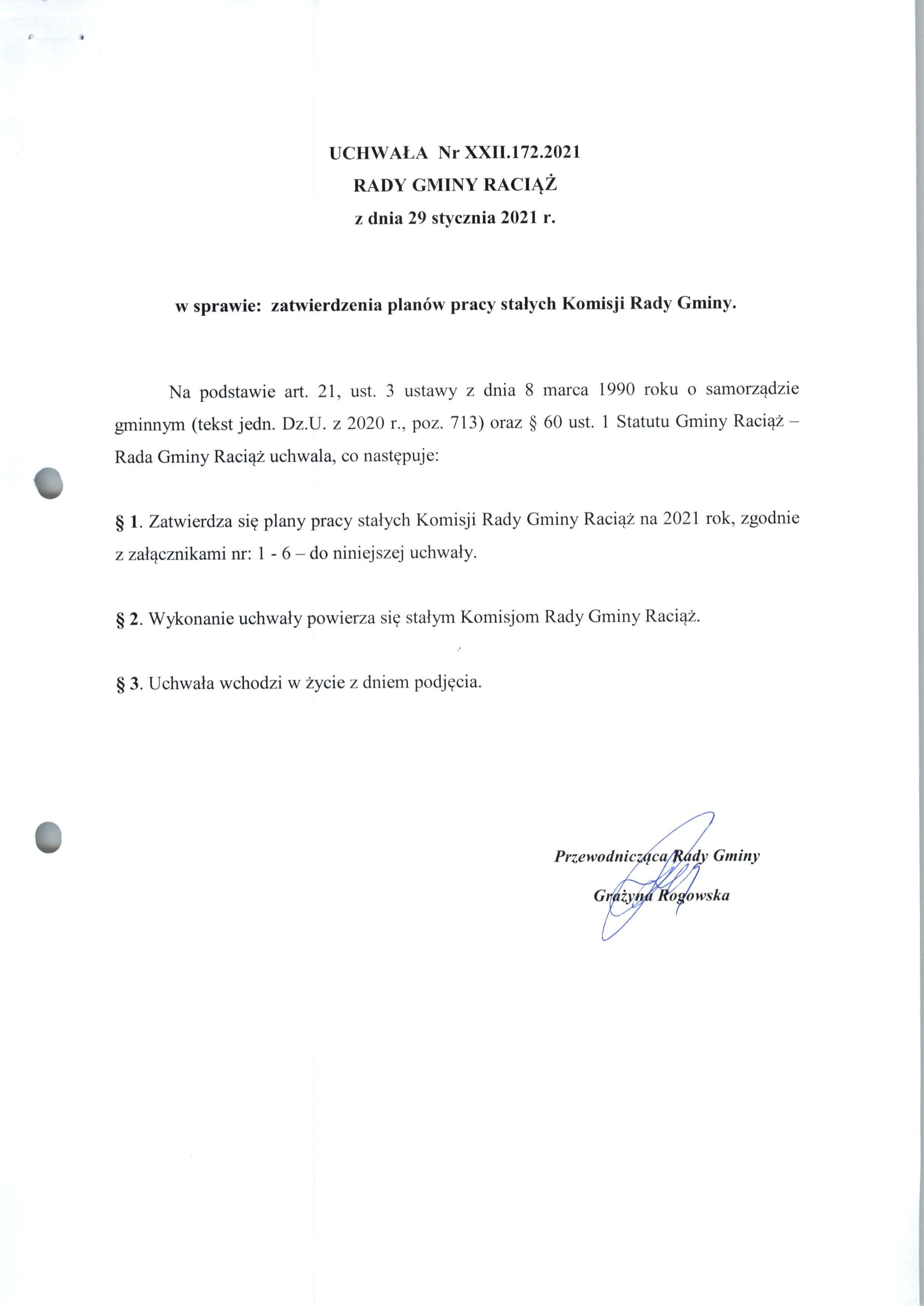 UCHWAŁA Nr XXII.172.2021 RADY GMINY RACIĄŻ z dnia 29 stycznia 2021 roku