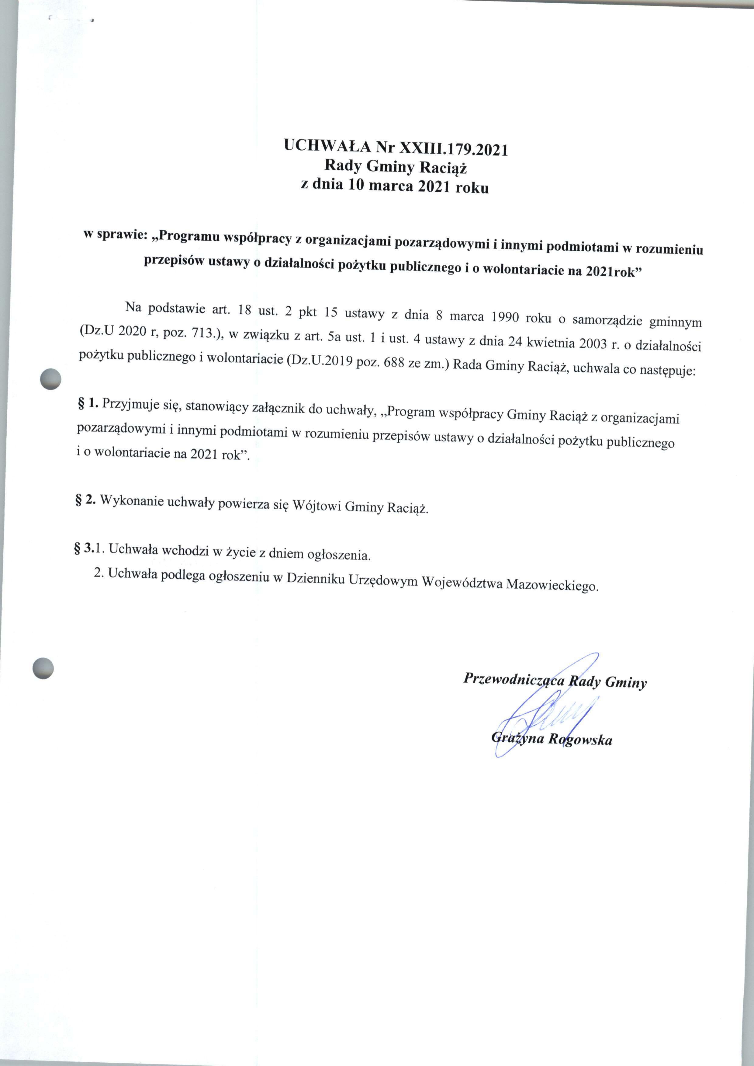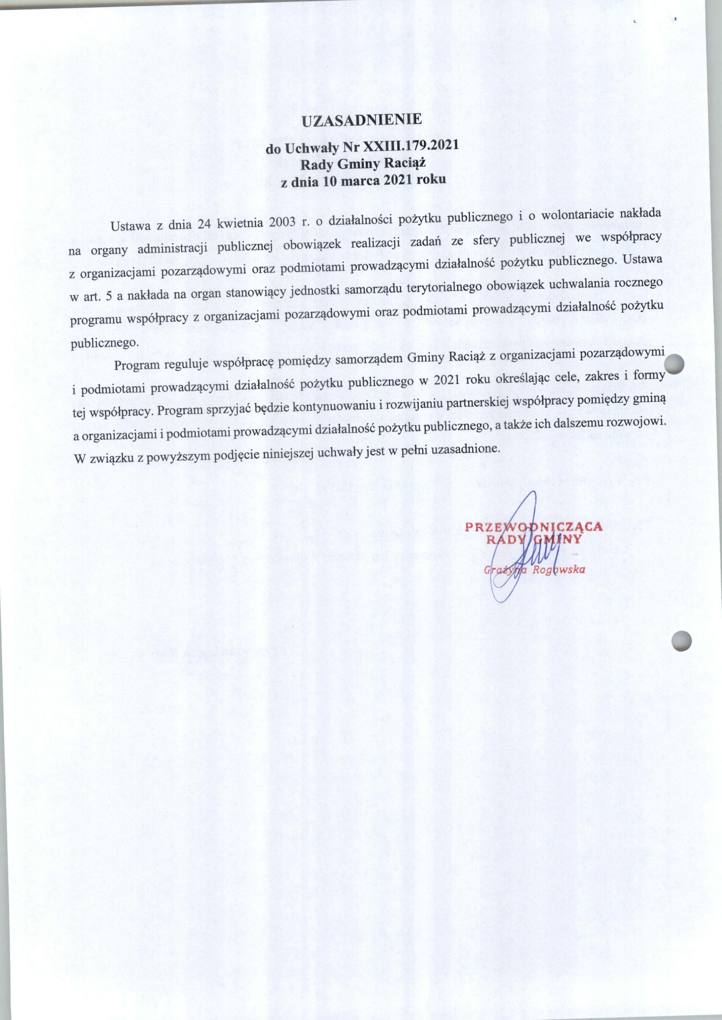 UCHWAŁA Nr XXIII.179.2021 RADY GMINY RACIĄŻ z dnia 10 marca 2021 roku