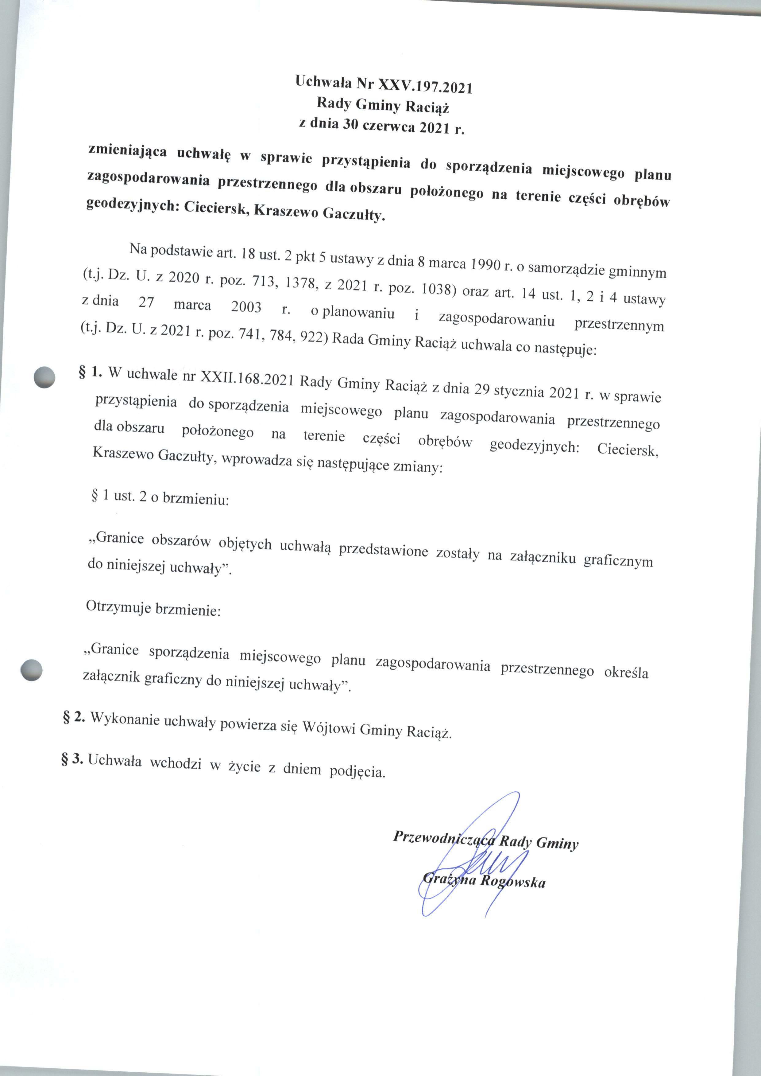 UCHWAŁA Nr XXV.197.2021 RADY GMINY RACIĄŻ z dnia 30 czerwca 2021 roku