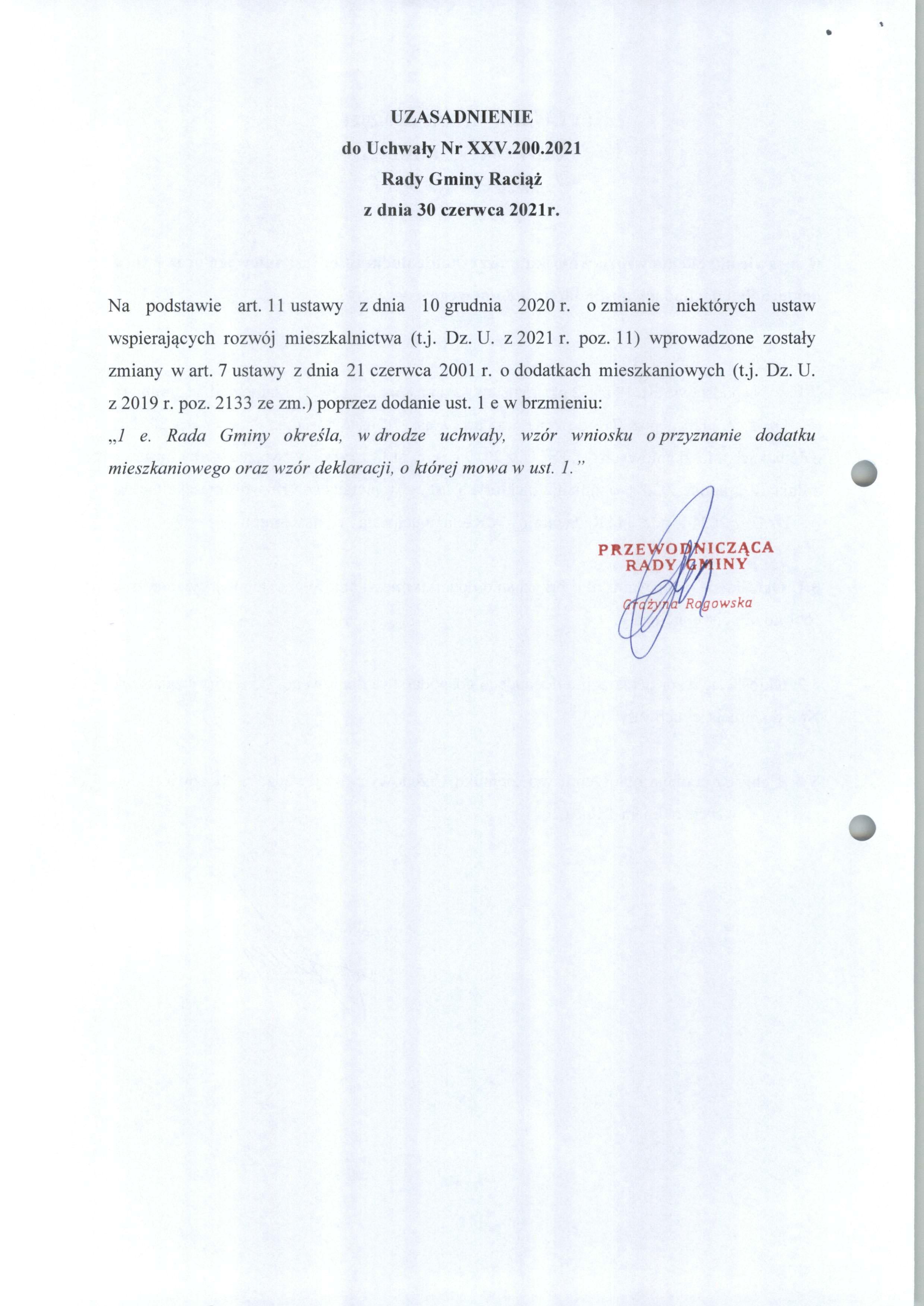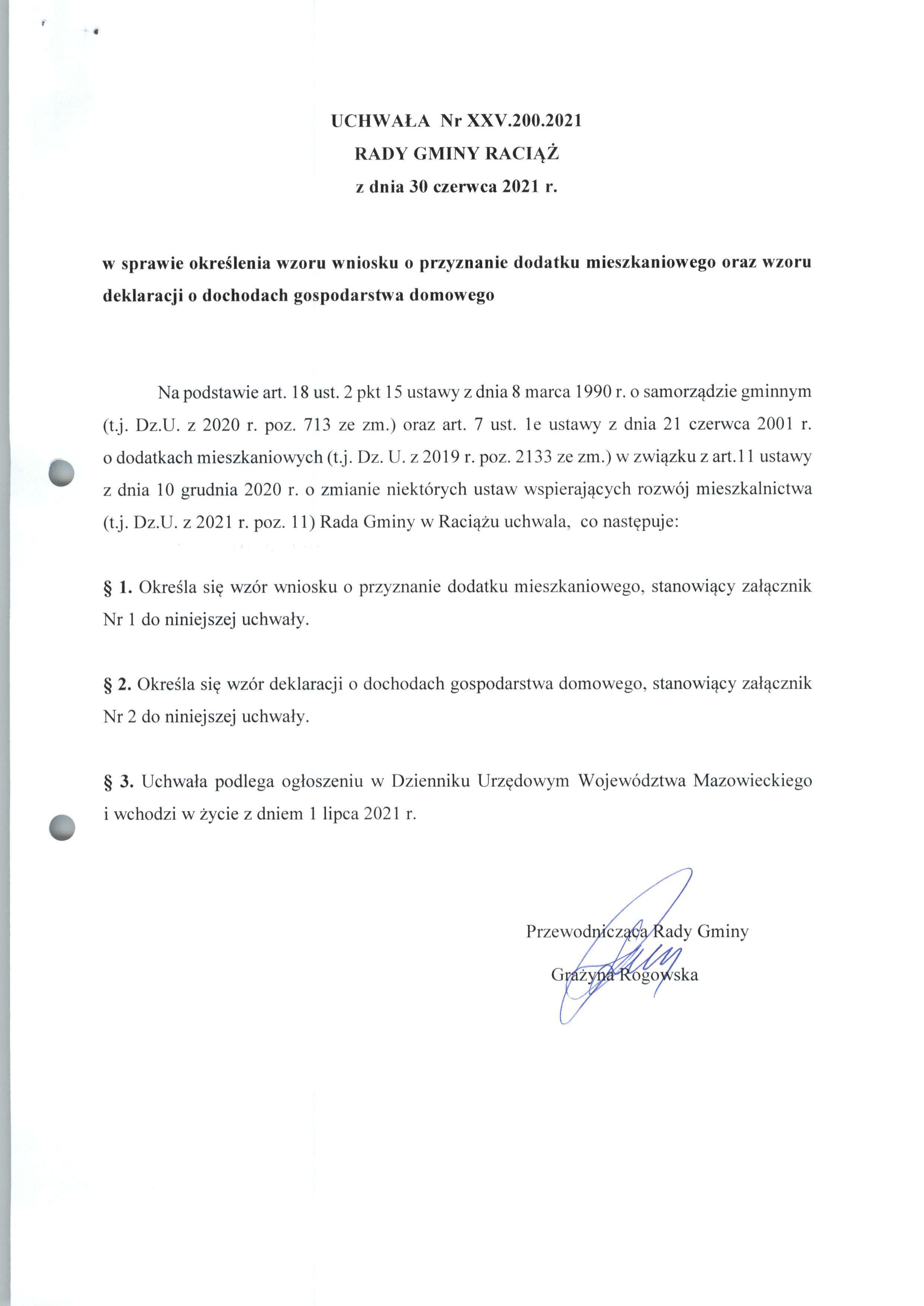 UCHWAŁA Nr XXV.200.2021 RADY GMINY RACIĄŻ z dnia 30 czerwca 2021 roku
