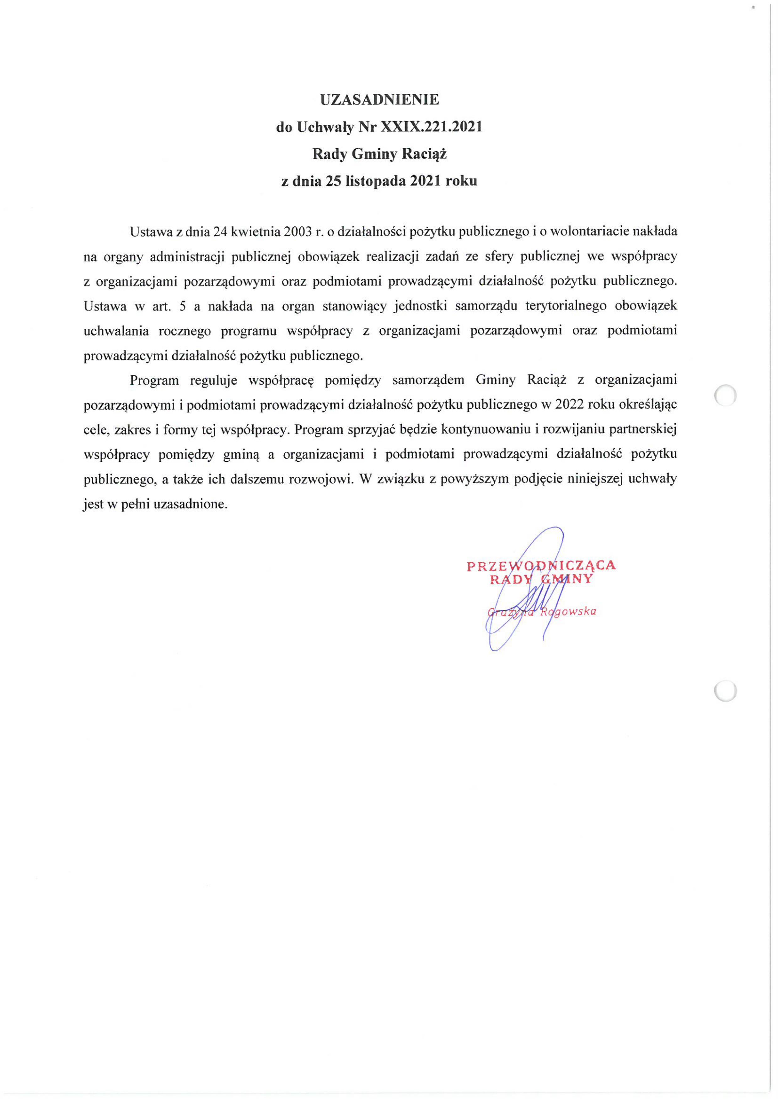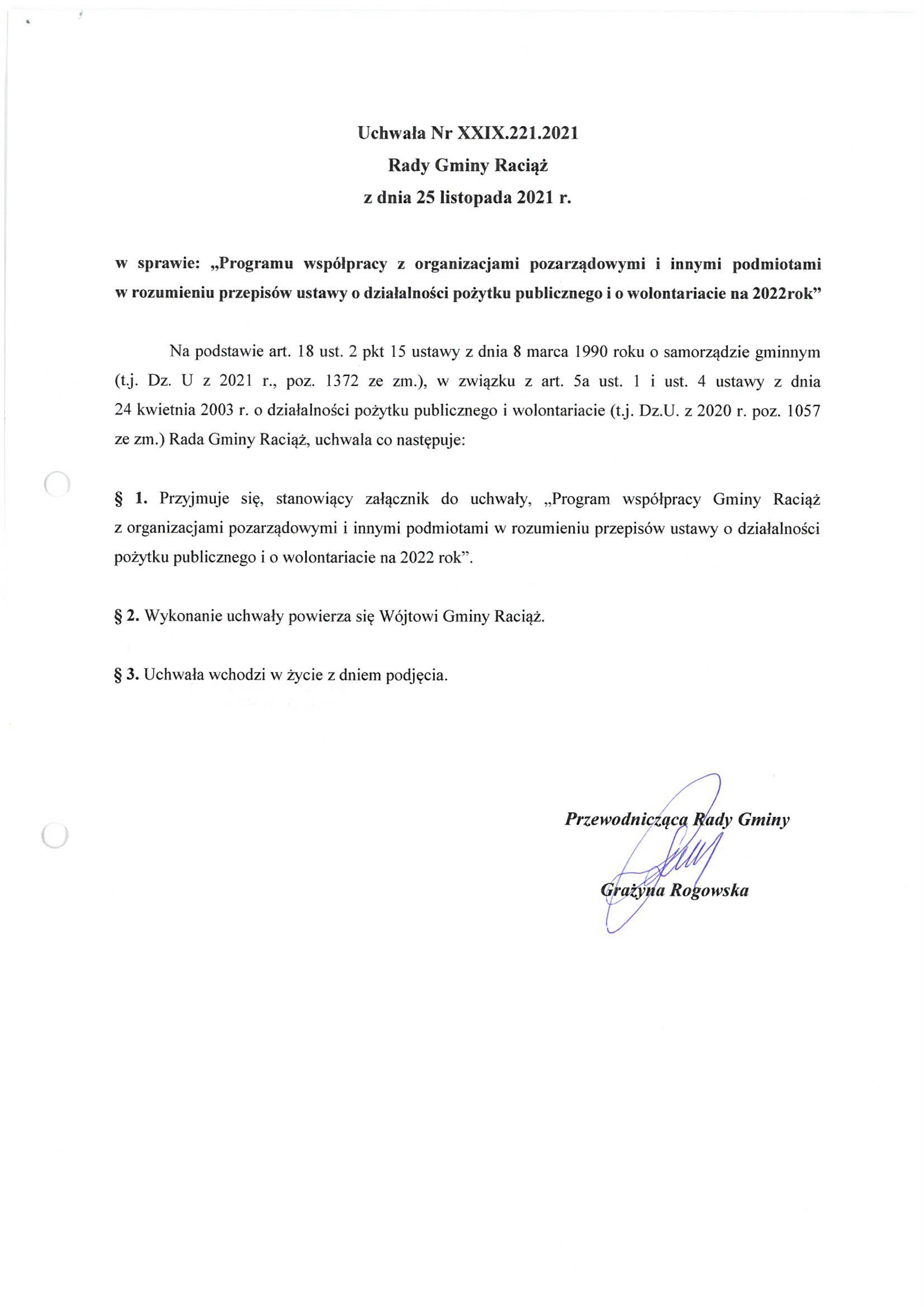 UCHWAŁA Nr XXIX.221.2021 RADY GMINY RACIĄŻ z dnia 25 listopada 2021 roku