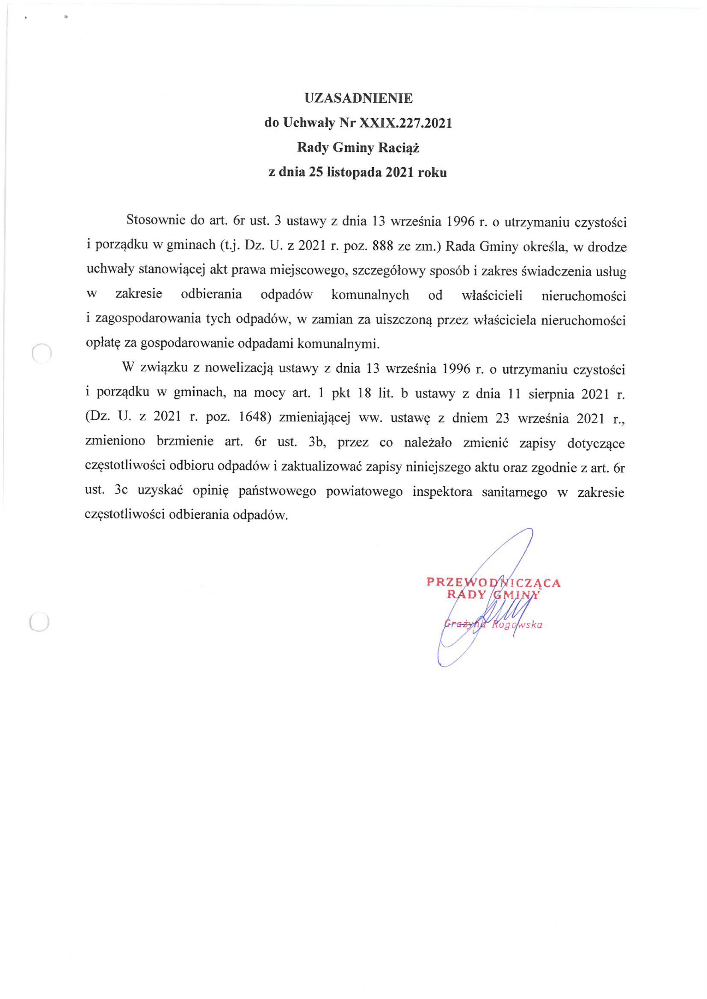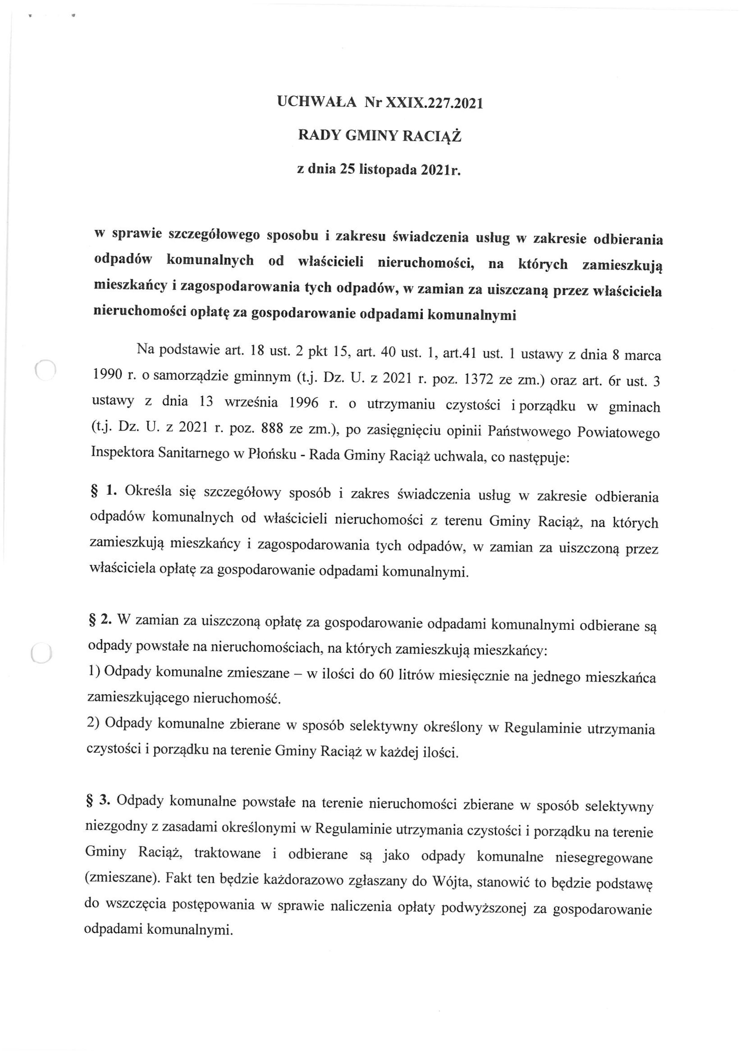 UCHWAŁA Nr XXIX.227.2021 RADY GMINY RACIĄŻ z dnia 25 listopada 2021 roku